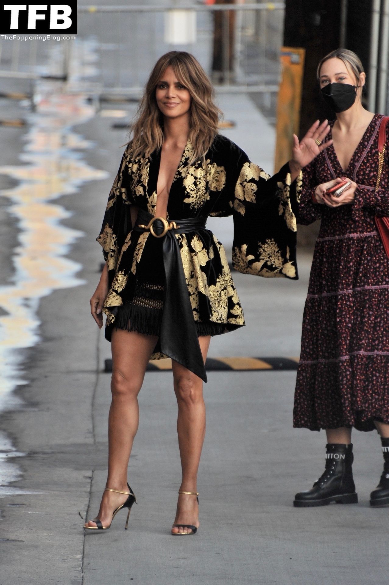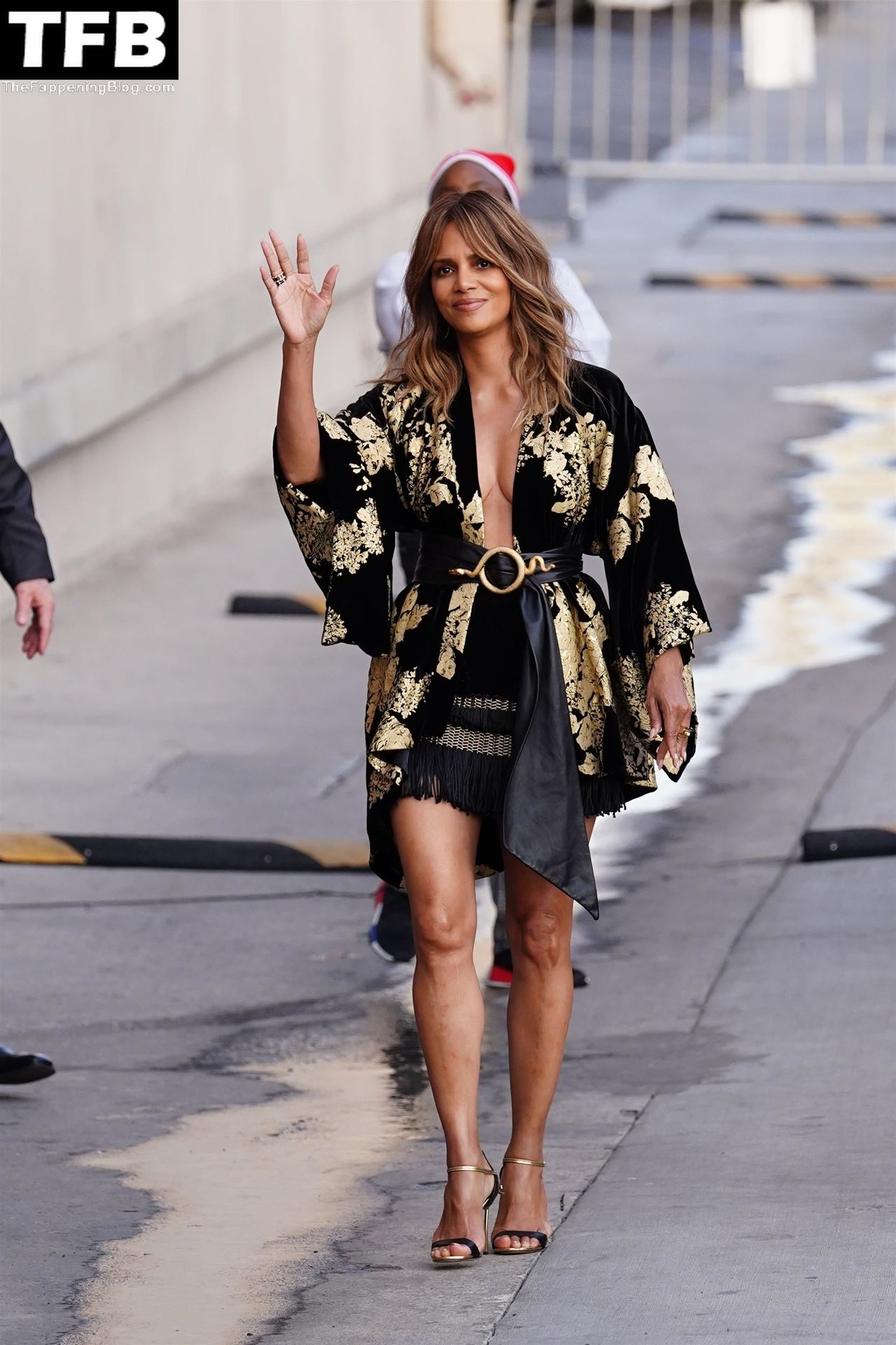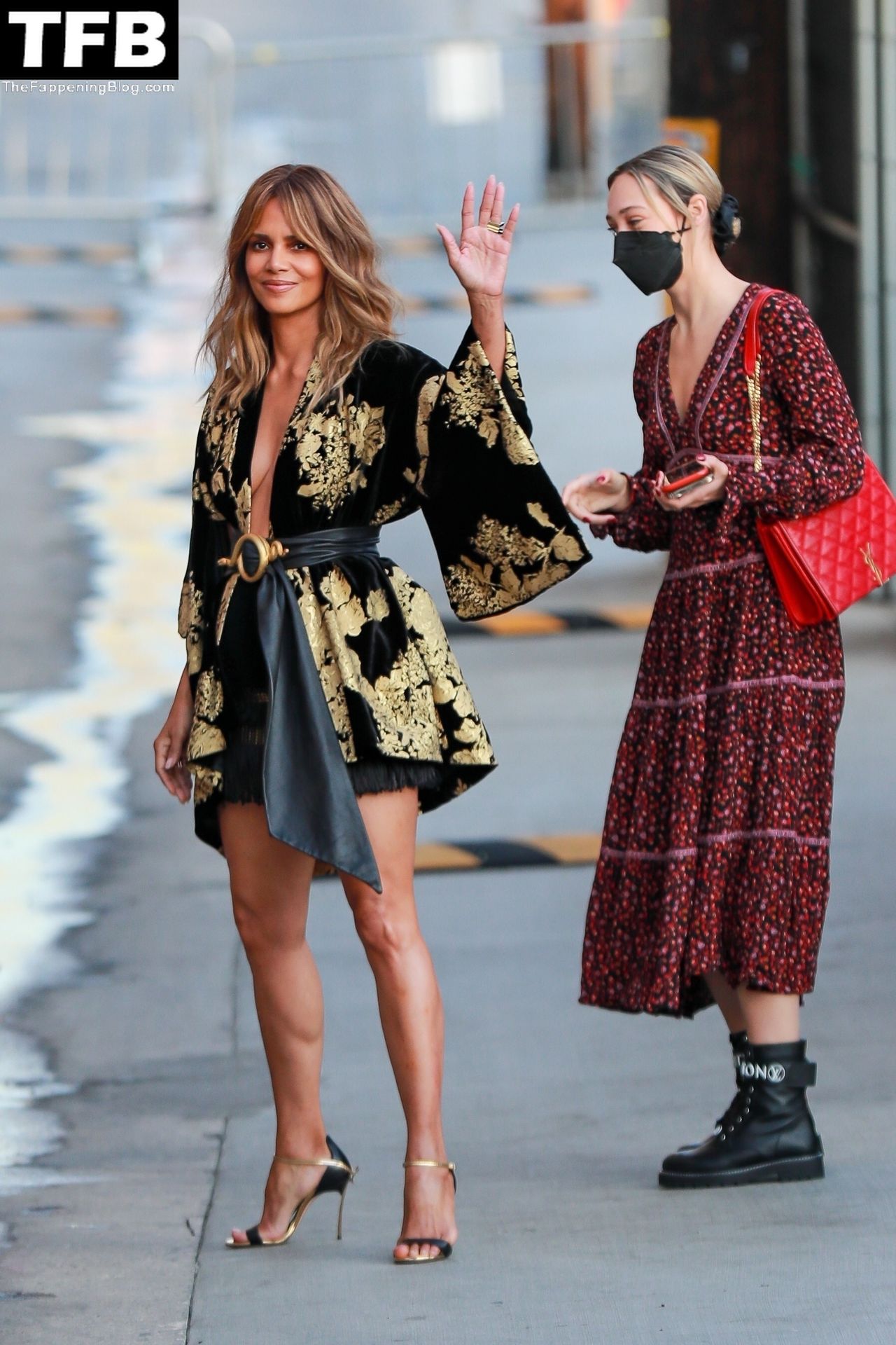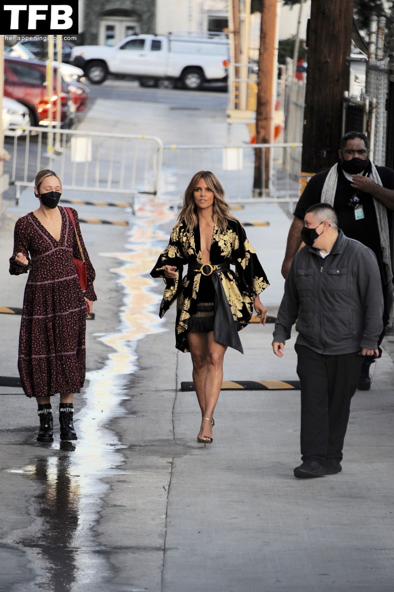 L’attrice Halle Berry attira tutti gli sguardi mentre arriva agli studi di Jimmy Kimmel Live! a Hollywood, 15/11/2021.