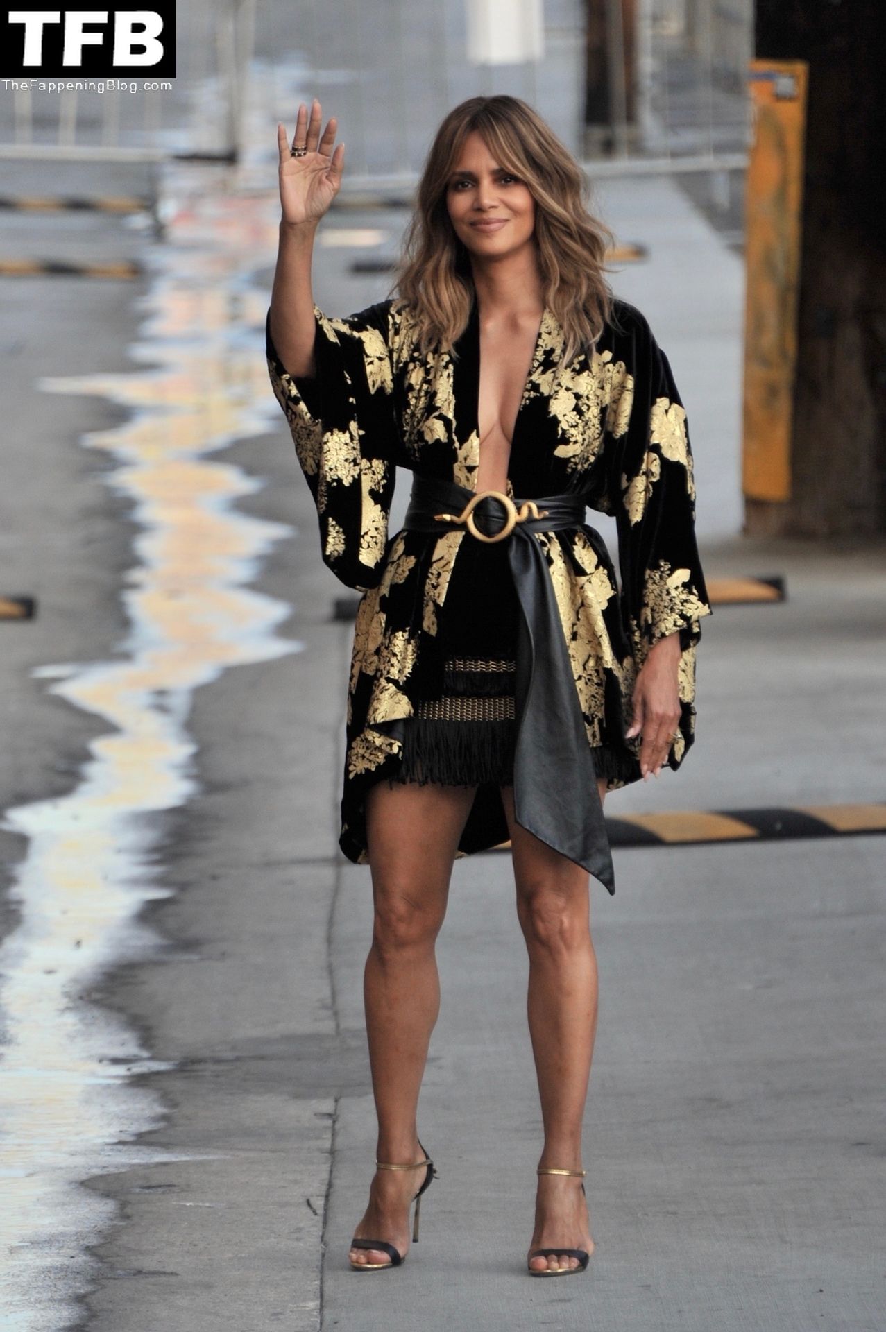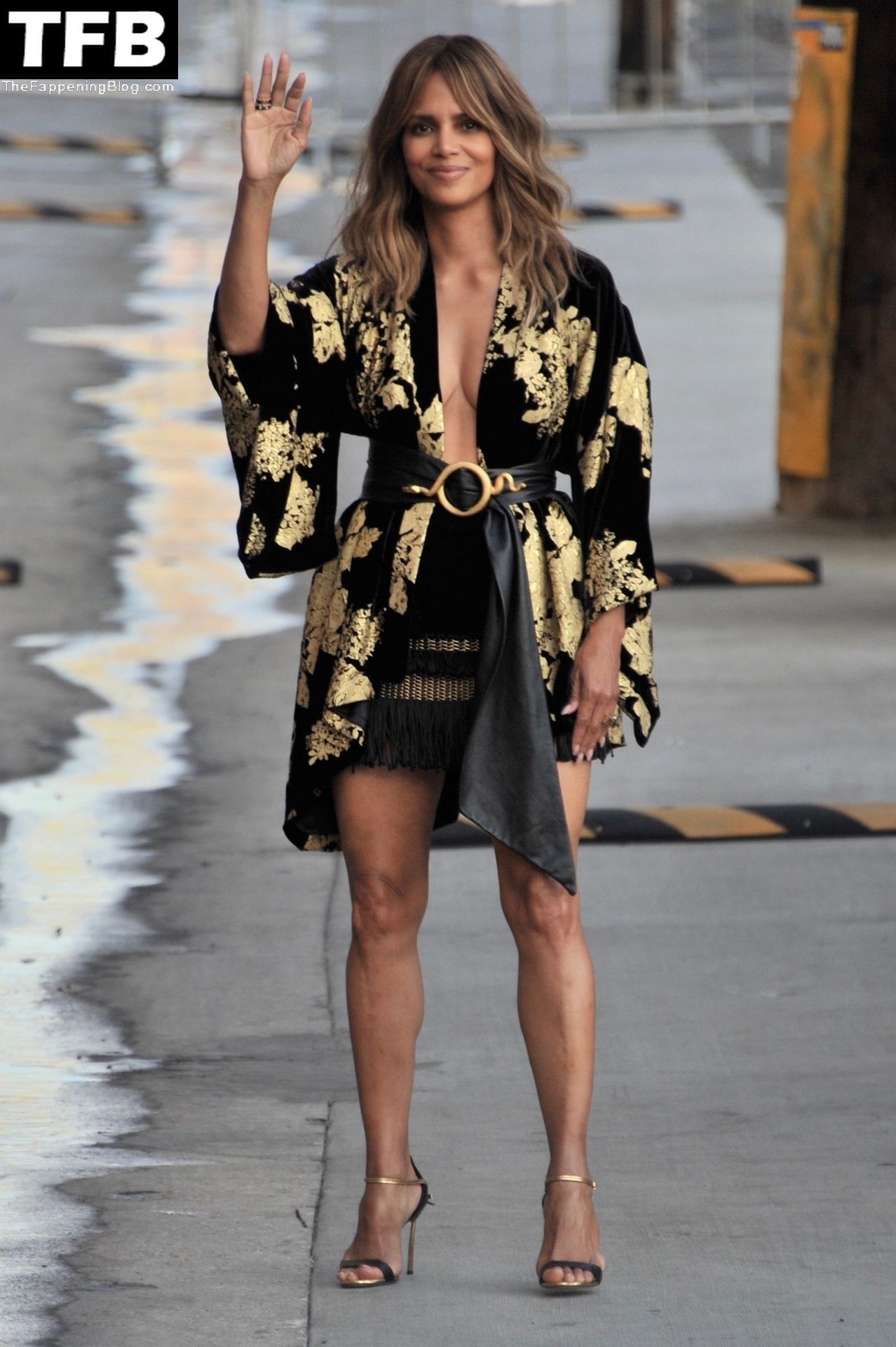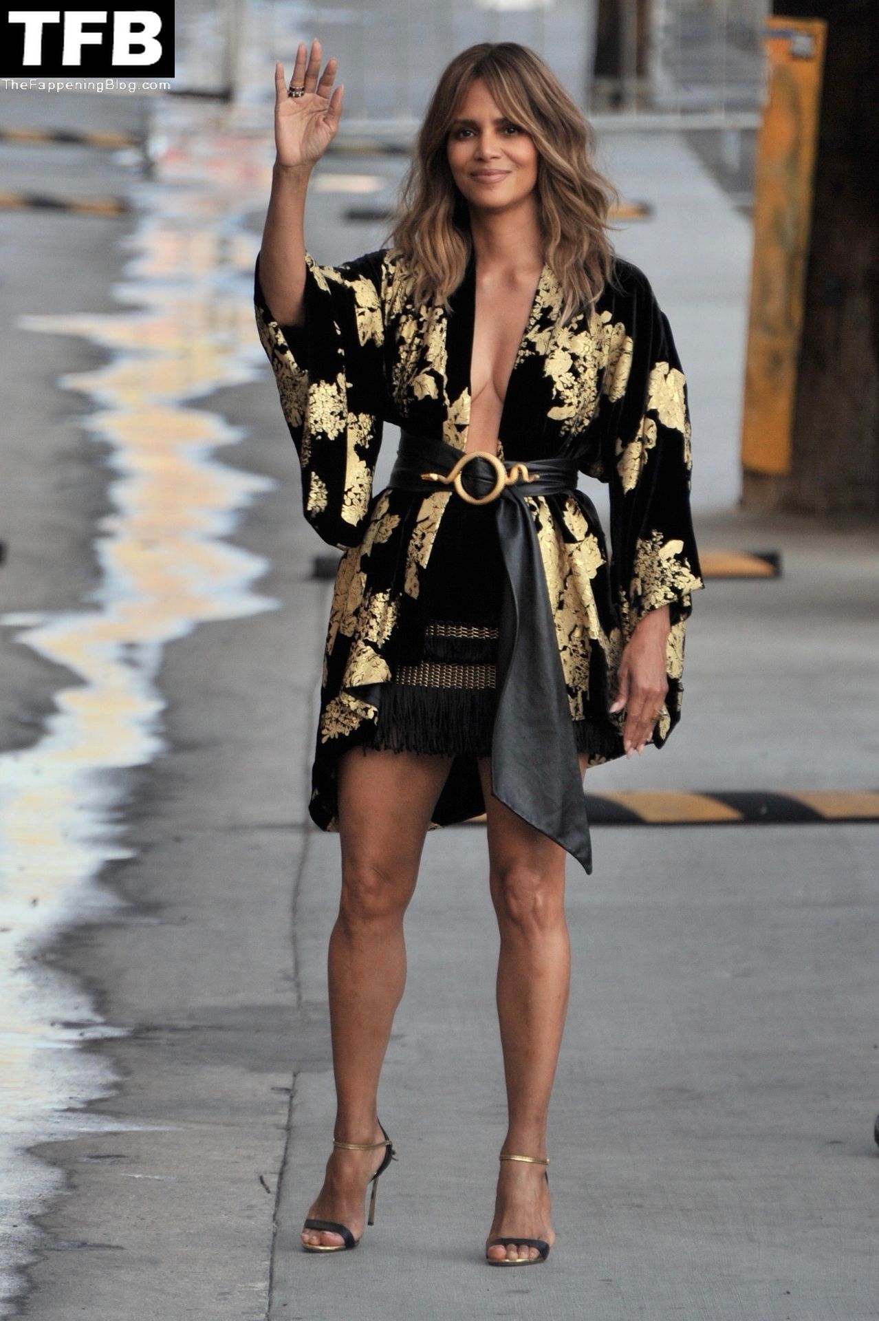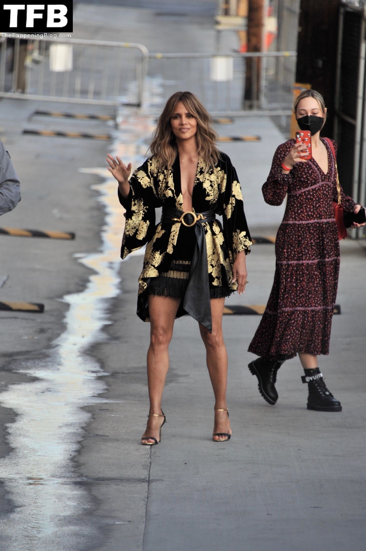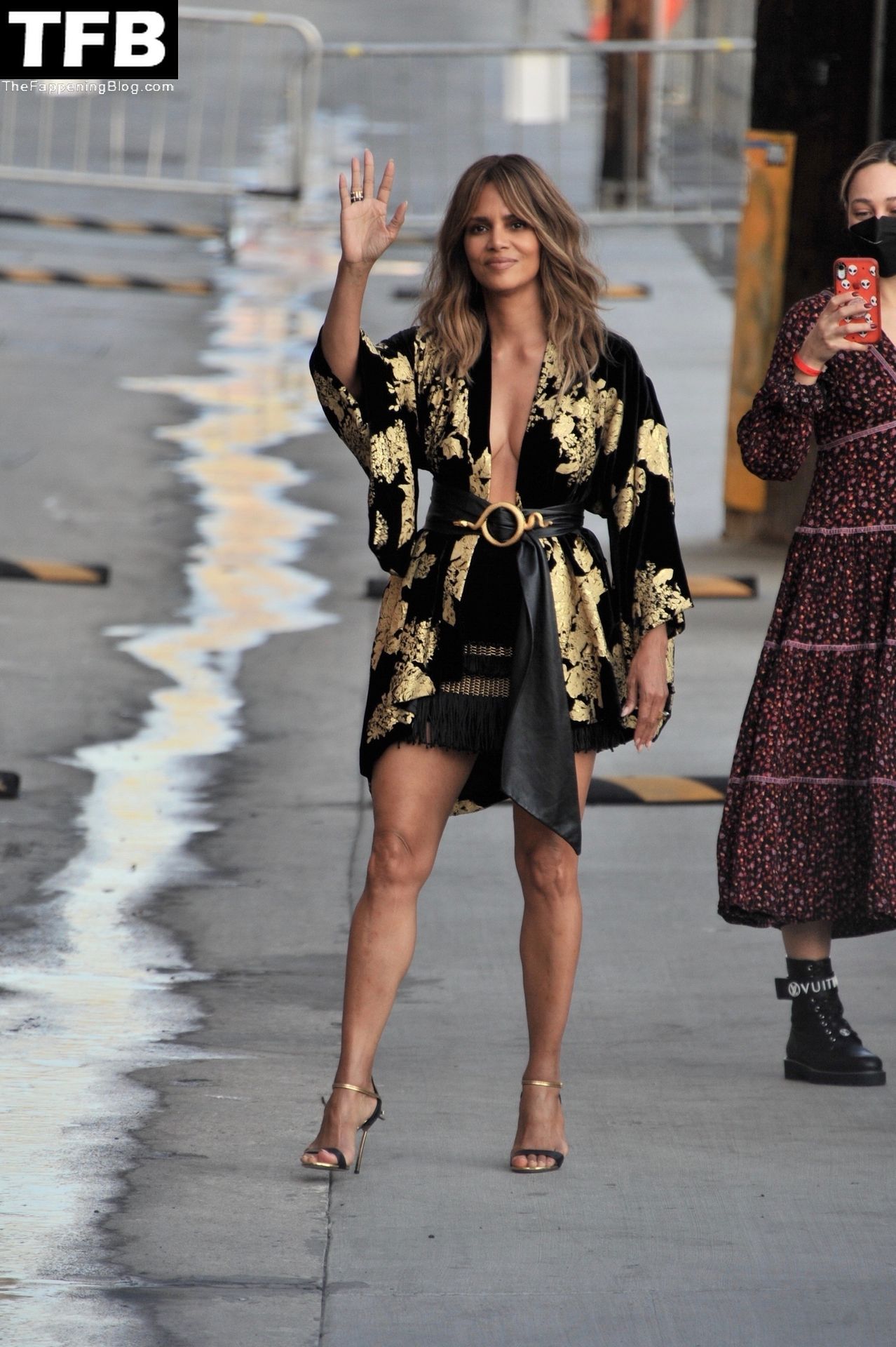 L’attrice Halle Berry attira tutti gli sguardi mentre arriva agli studi di Jimmy Kimmel Live! a Hollywood, 15/11/2021.