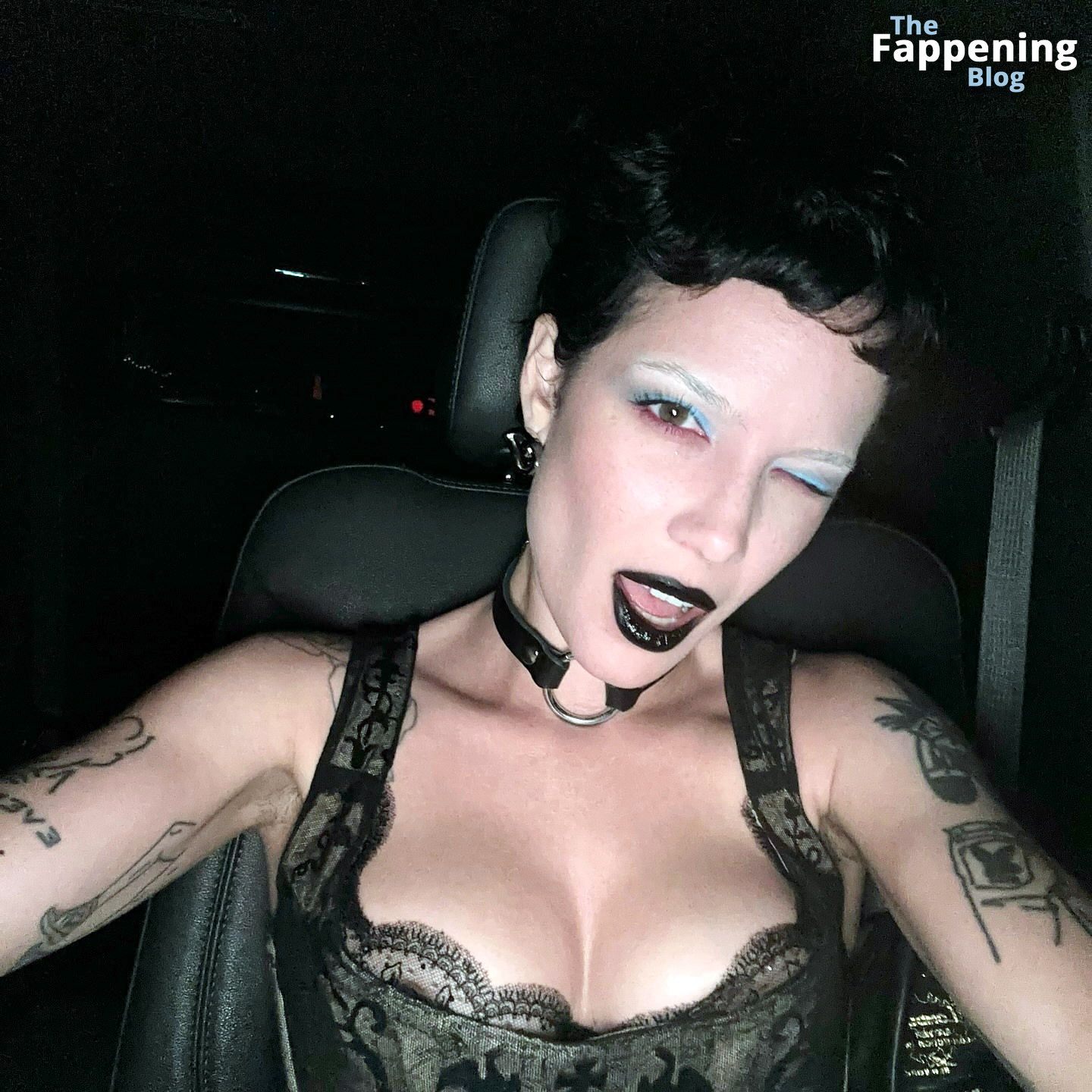 Halsey è davvero sexy mentre mostra una scollatura mozzafiato in un sensuale abito nero, abbinato a un rossetto nero. Si sta facendo un selfie in macchina, ed è assolutamente stupenda.