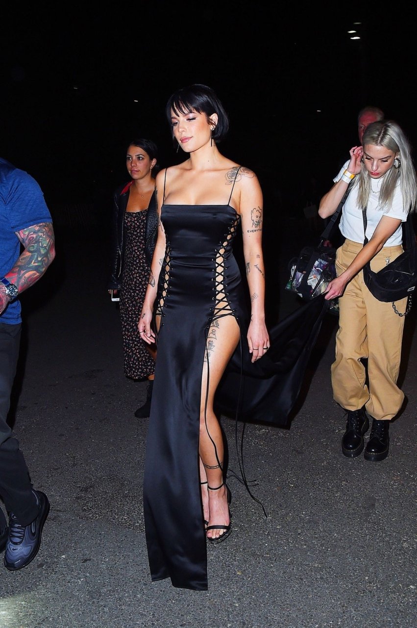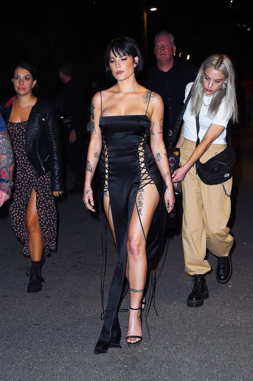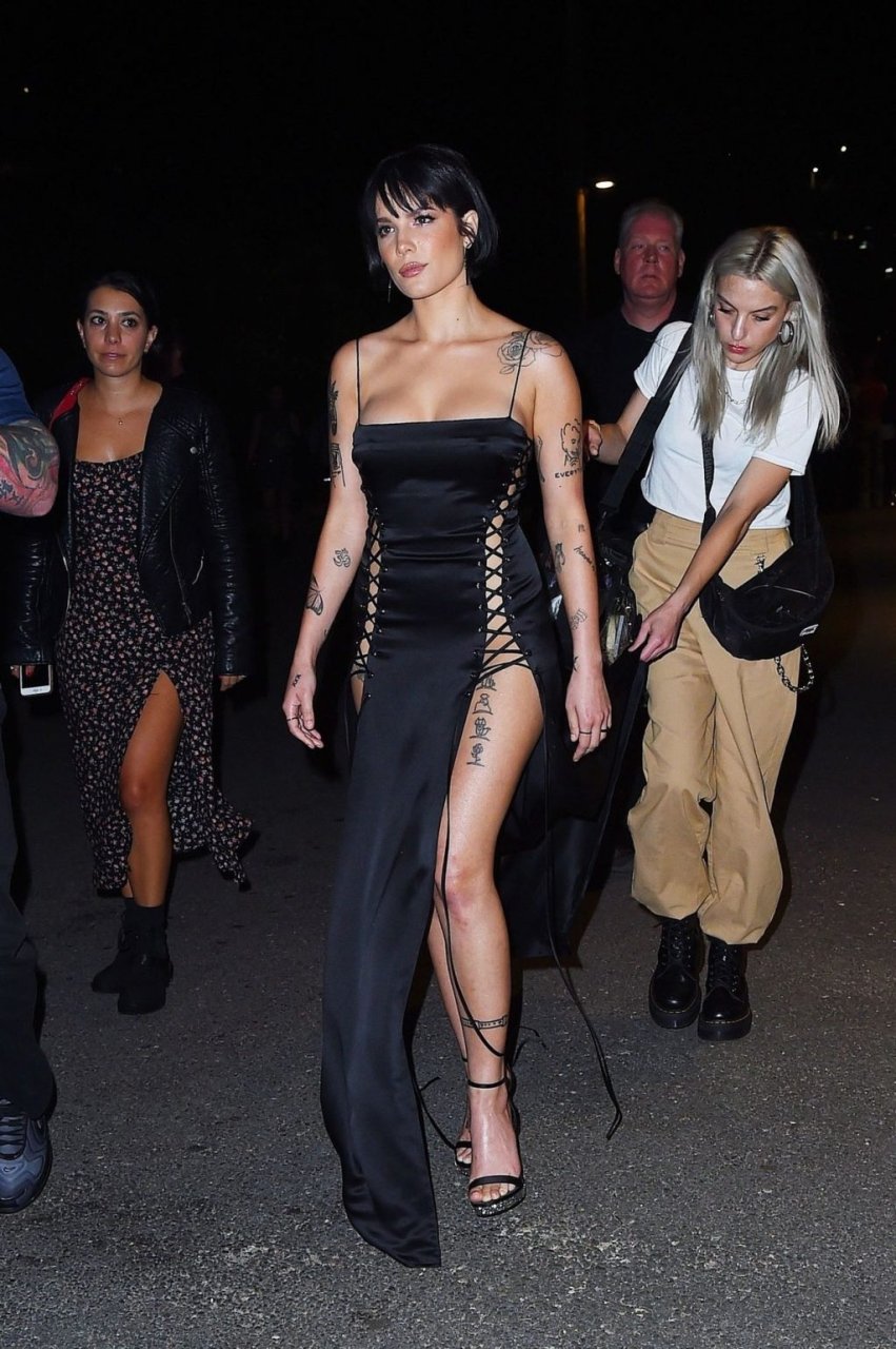 Tutti gli occhi sono puntati sulla popstar Halsey mentre la cantante arriva a una sfilata di moda DKNY durante la New York Fashion Week indossando un sexy vestito in pizzo senza biancheria intima, 09/09/2019. Il vestito con spacco infinito mette in piena mostra le gambe e le curve della cantante!