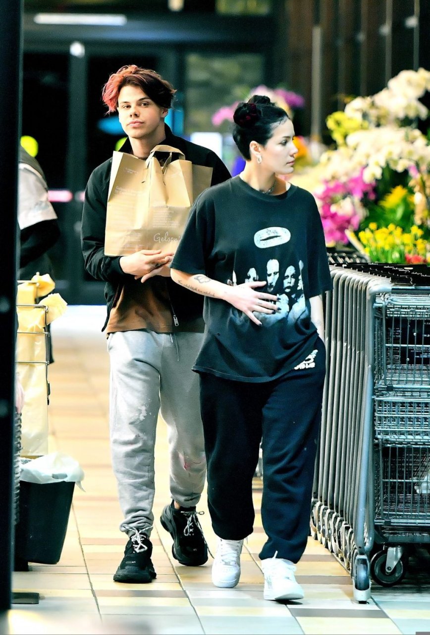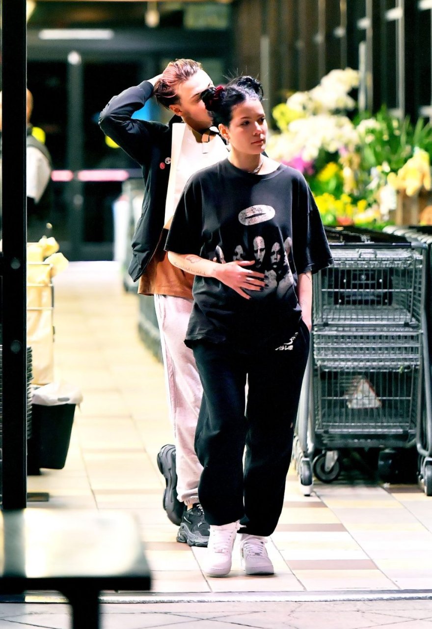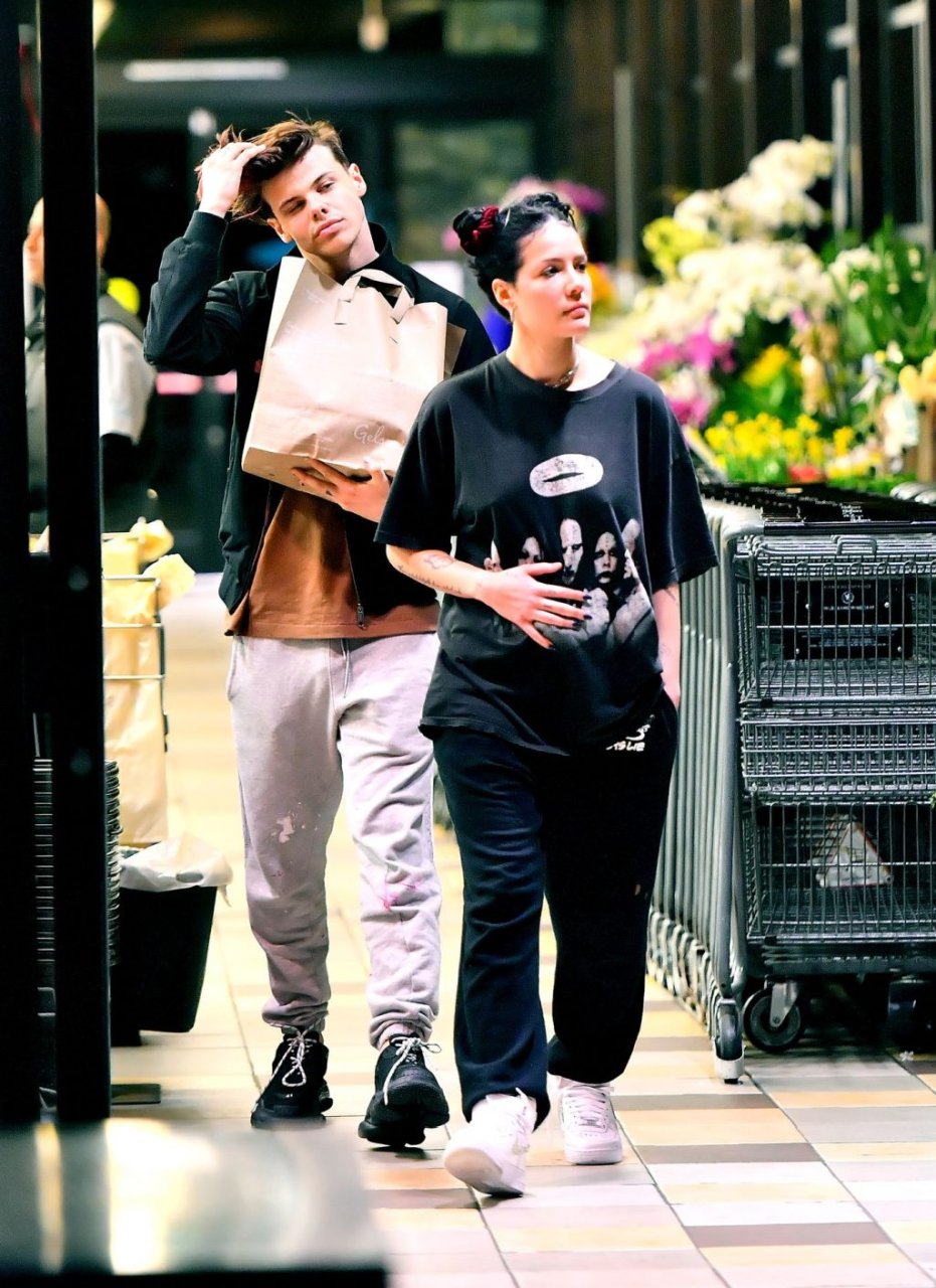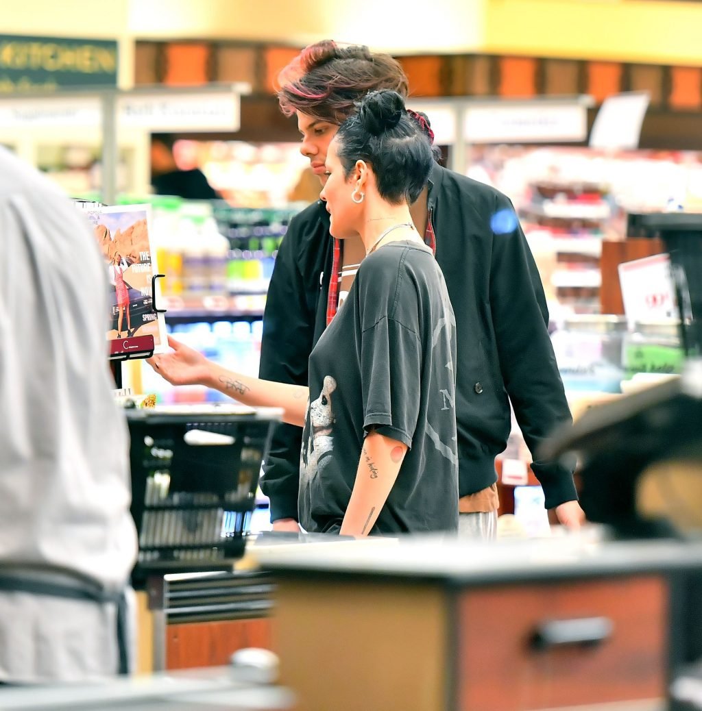 Halsey si teneva la pancia mentre lei e il fidanzato Yungblud facevano la spesa al Gelson’s Supermarket a Los Angeles, 04/04/2019. La cantante sembrava forse nascondere un pancione sotto una maglietta larga. I due innamorati sono stati visti mentre mostravano molta PDA e sfogliavano alcune riviste in attesa di pagare i loro acquisti.