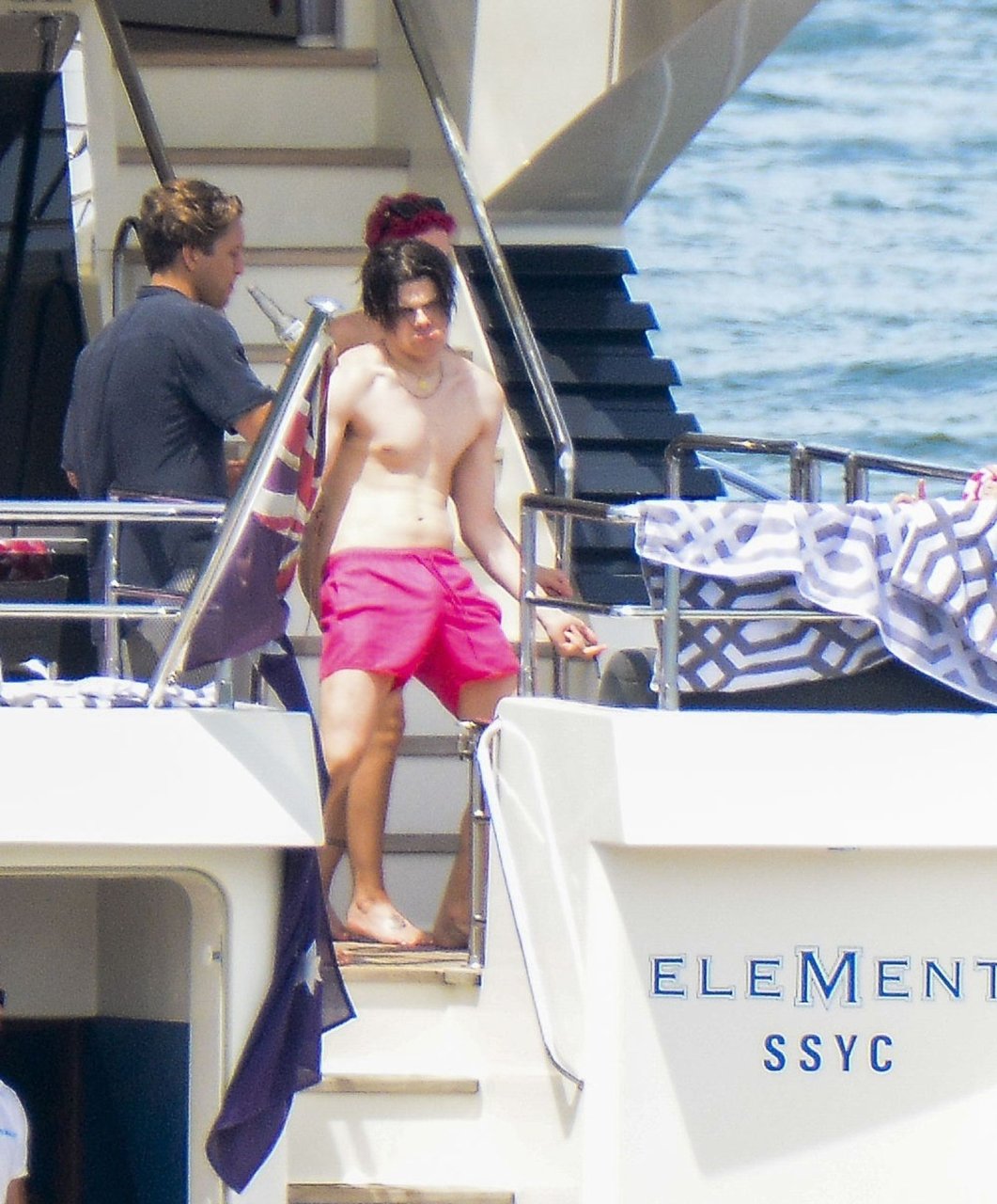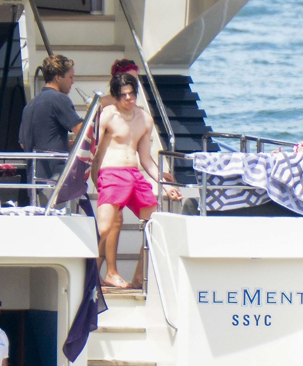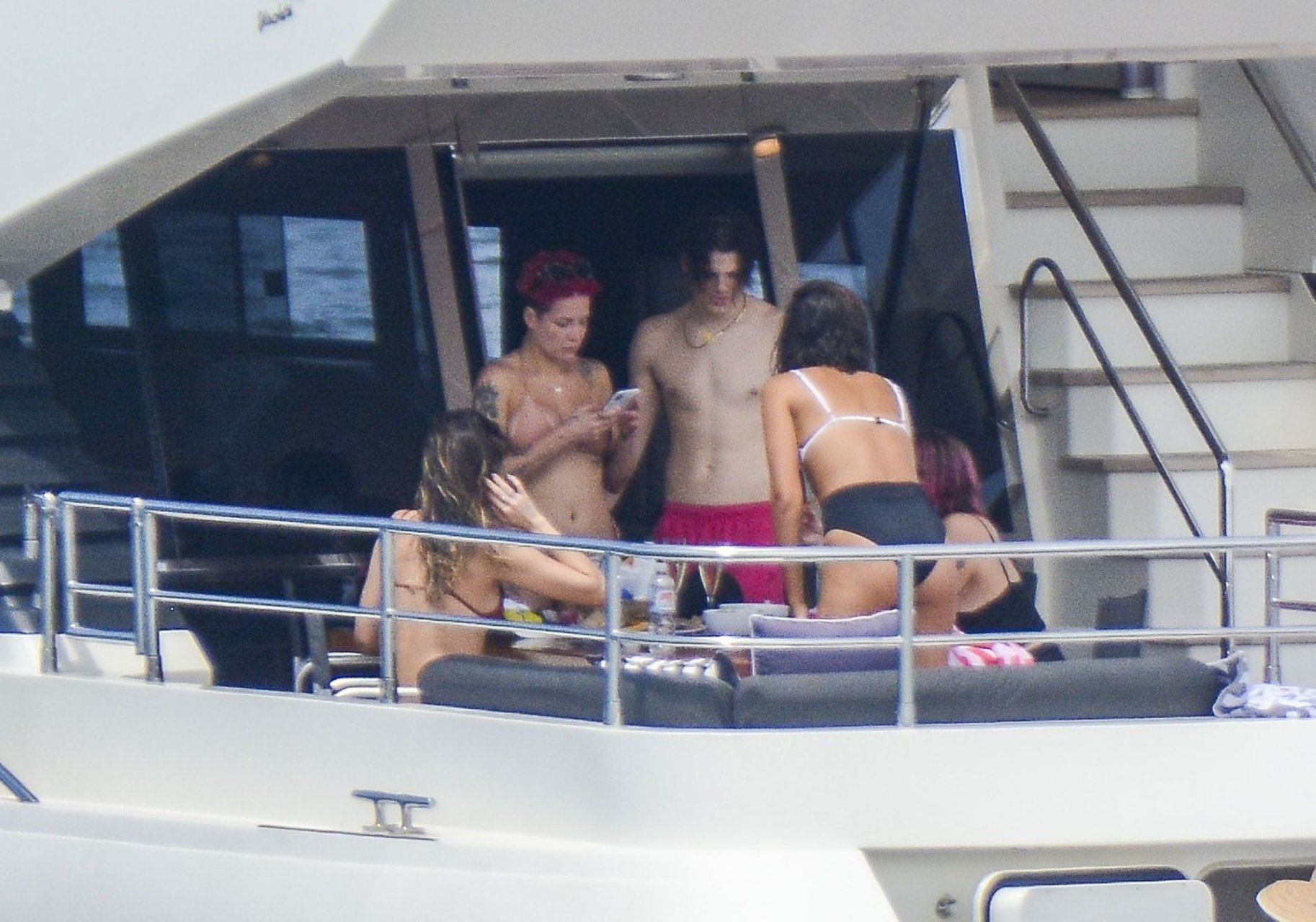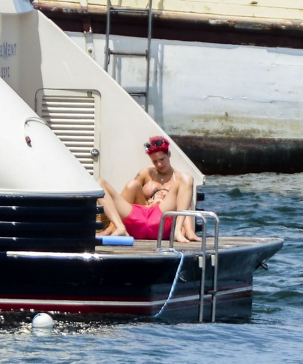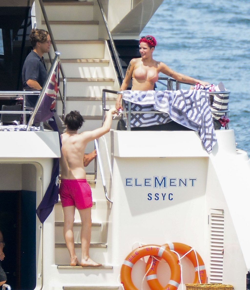 Halsey indossava un bikini color nudo mentre i due mostravano affetto condividendo un momento privato sul ponte posteriore di quello yacht.