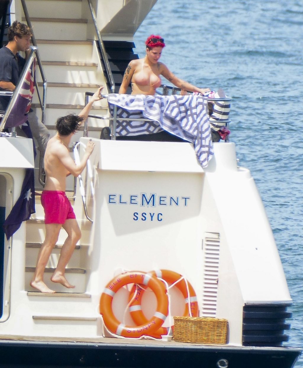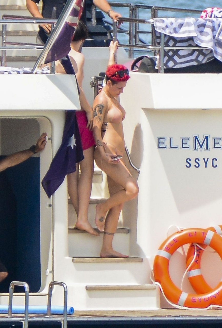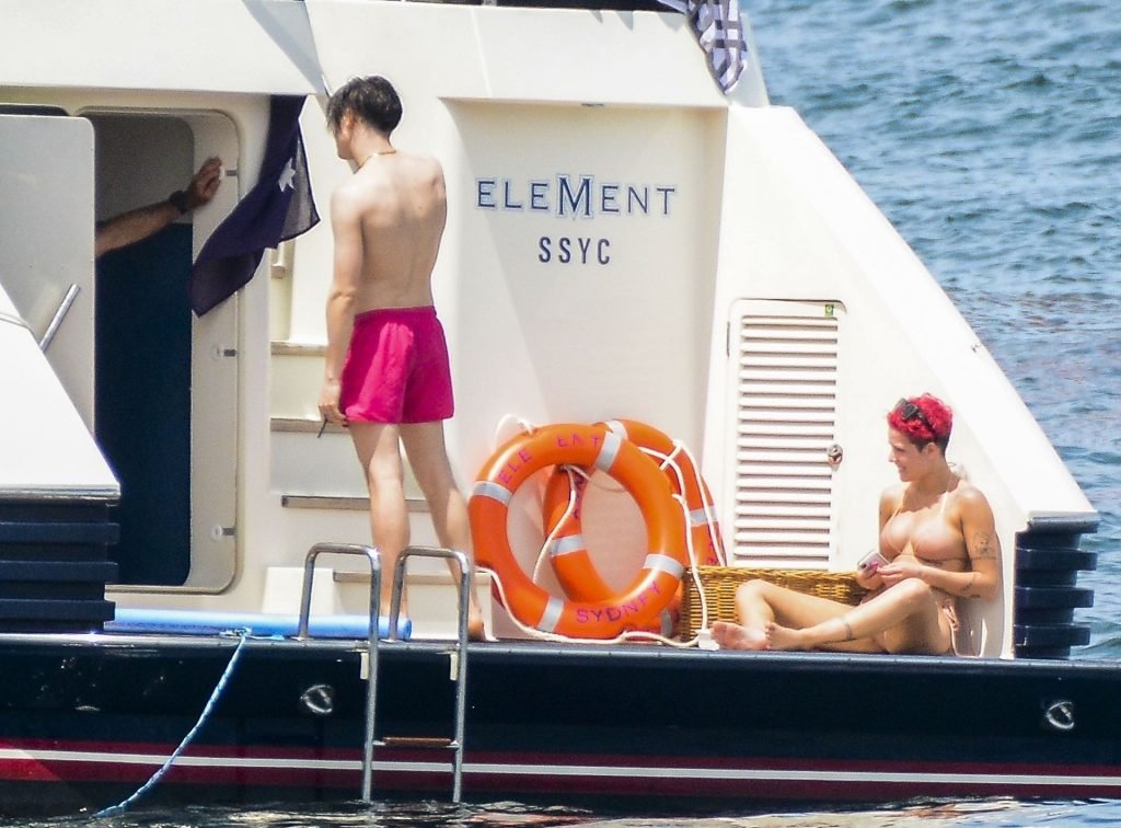 Sta vivendo la vita da sogno! Halsey e il suo presunto fidanzato Yungblud sono stati avvistati insieme, rilassandosi su uno yacht di lusso nel porto di Sydney con amici, 17/02/2019.
