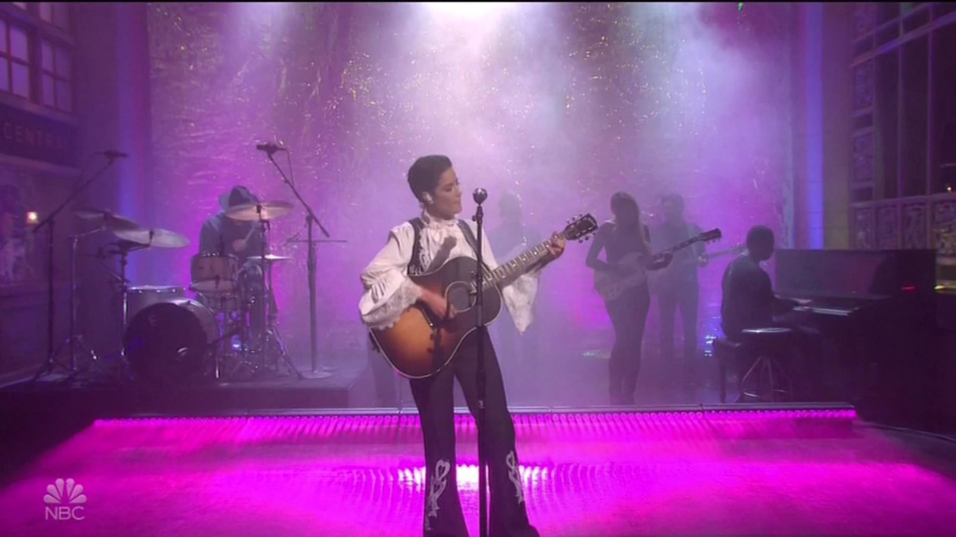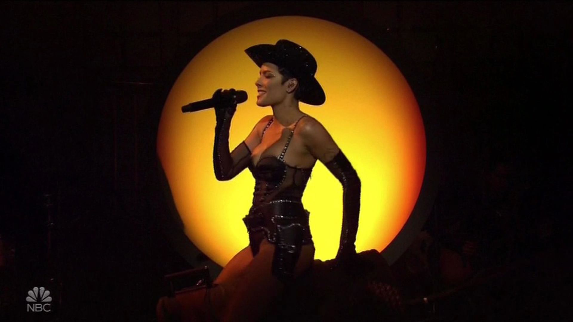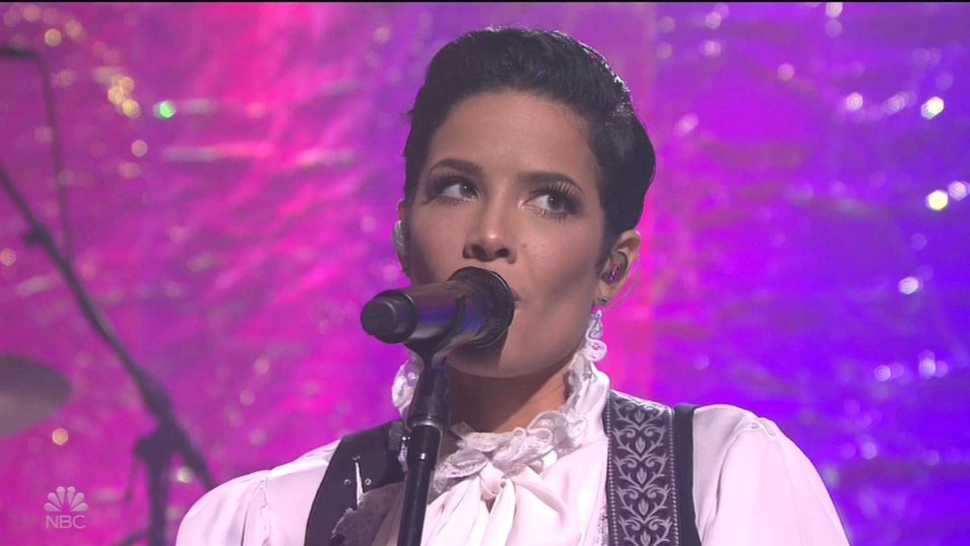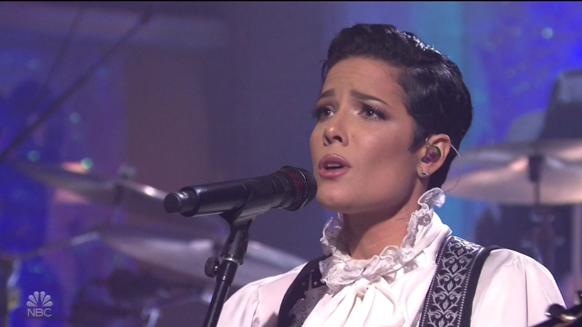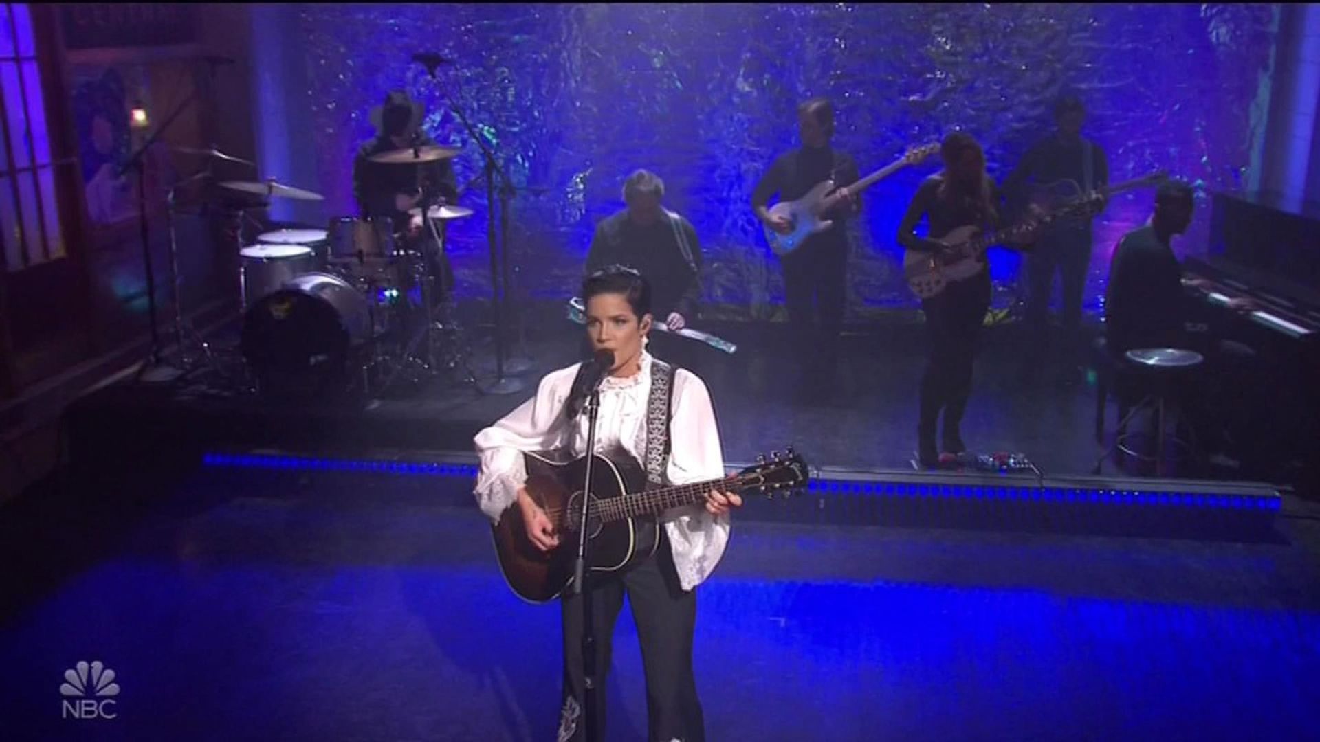 Halsey incendia lo schermo mentre si esibisce su Saturday Night Live e si spoglia fino alla biancheria intima per uno sketch digitale.