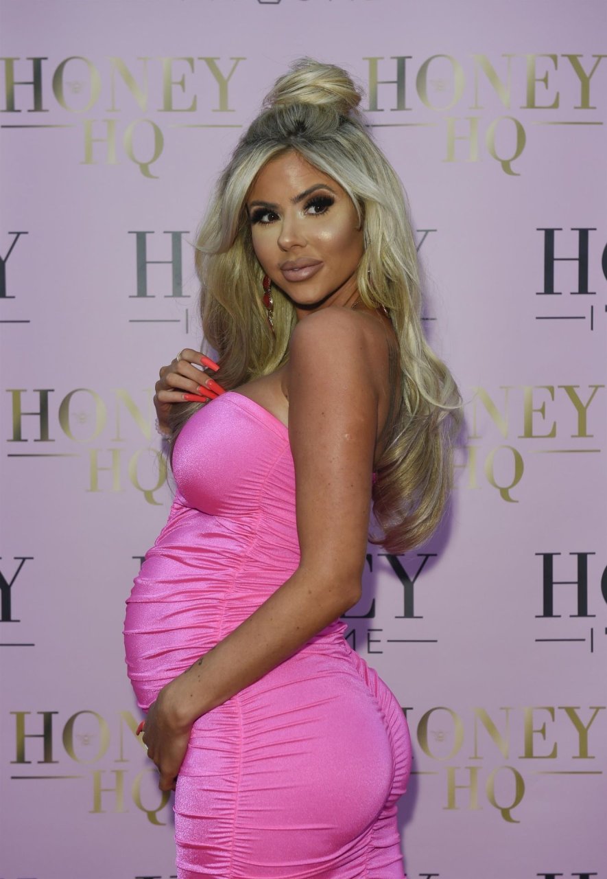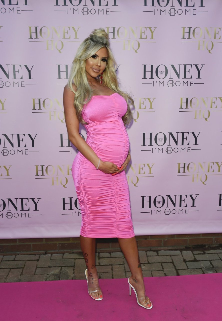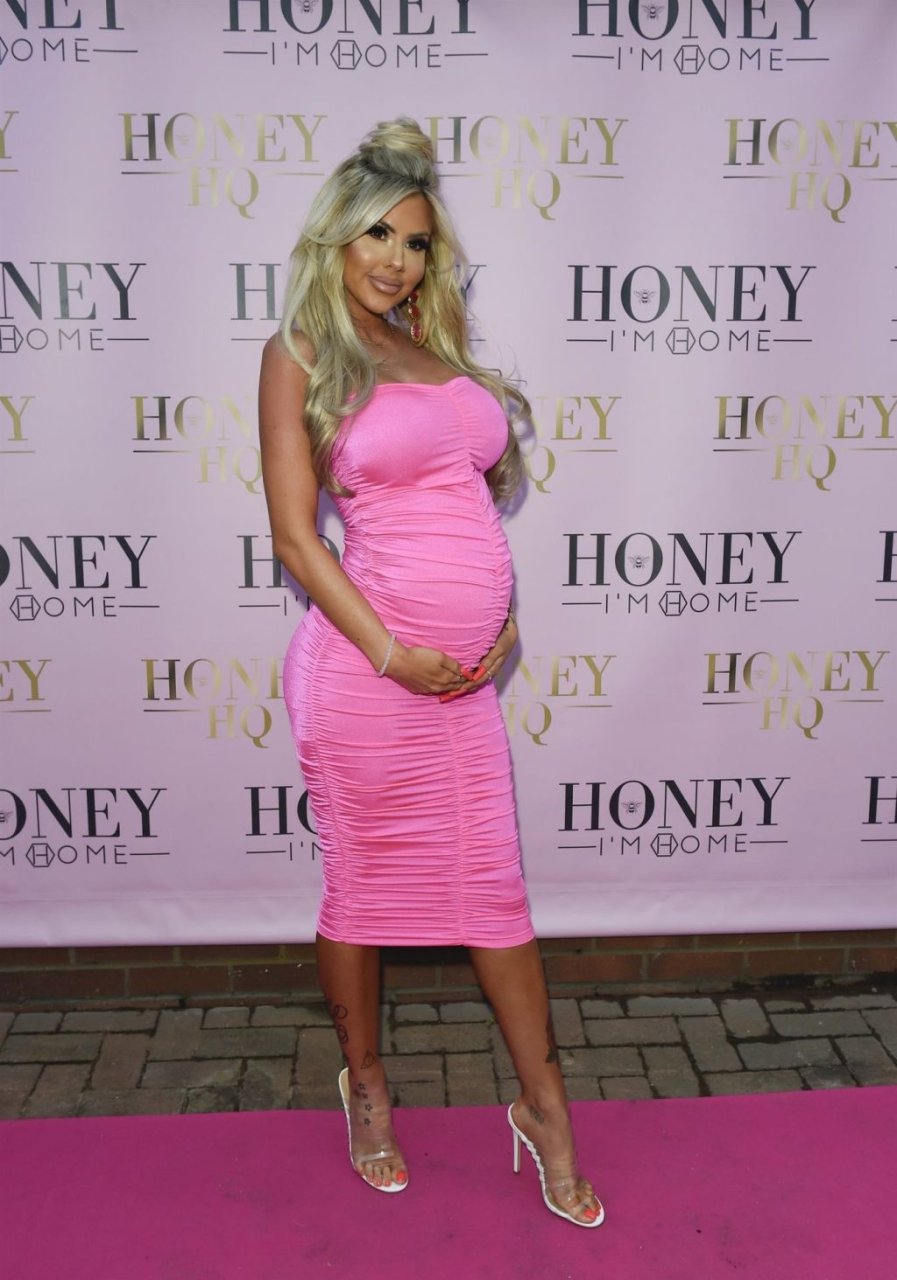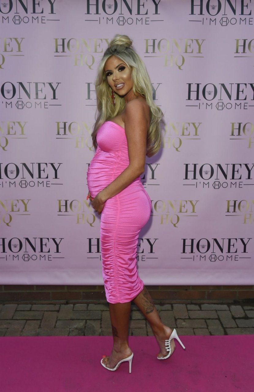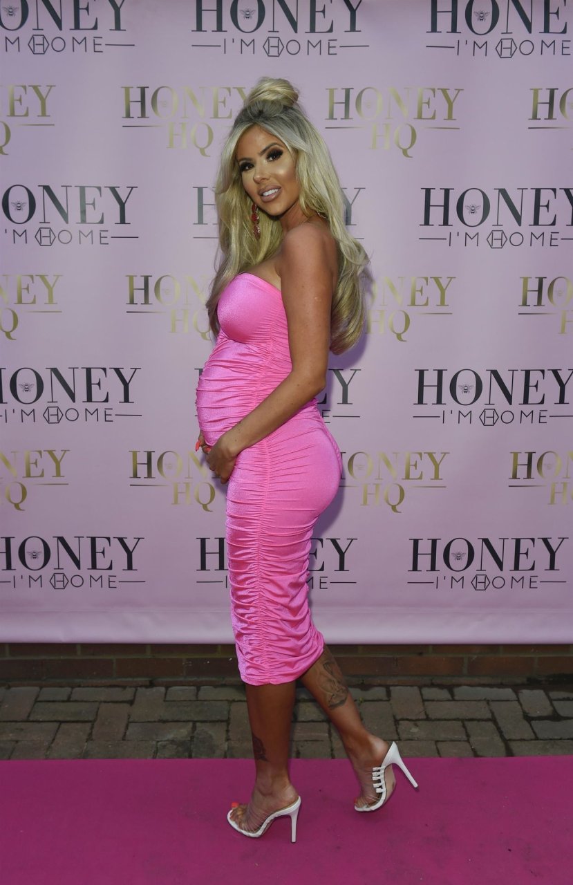 Hannah Elizabeth incinta è stata fotografata con un vestito rosa aderente al lancio del negozio di mobili The Honey I’m Home a Leigh, 08/03/2019.