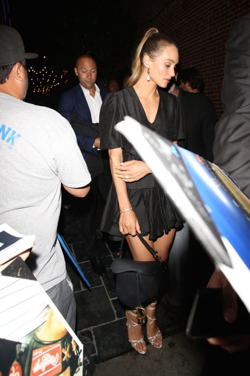 Derek Jeter e sua moglie, la modella di Sports Illustrated Swimsuit, Hannah Jeter, sono stati avvistati a una festa pre-premiazione degli ESPYs a Hollywood, il 09/07/2019. I due sono stati visti uscire dal Dream Hollywood la sera prima della premiazione. La moglie di Jeter ha sorriso e salutato i fan mentre Jeter firmava memorabilia.