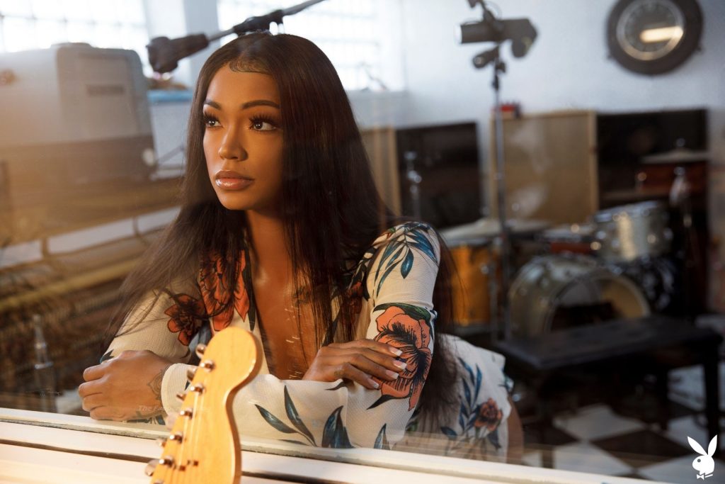 Attrice porno e modella Harley Dean si spoglia in un nuovo servizio fotografico per Playboy Plus (2021). È molto sexy, posando completamente nuda, mostrando i suoi seni finti neri, il sedere e la vagina con piercing nello studio di registrazione.