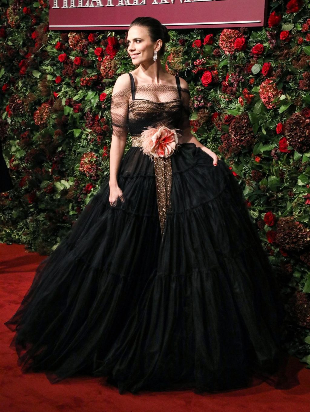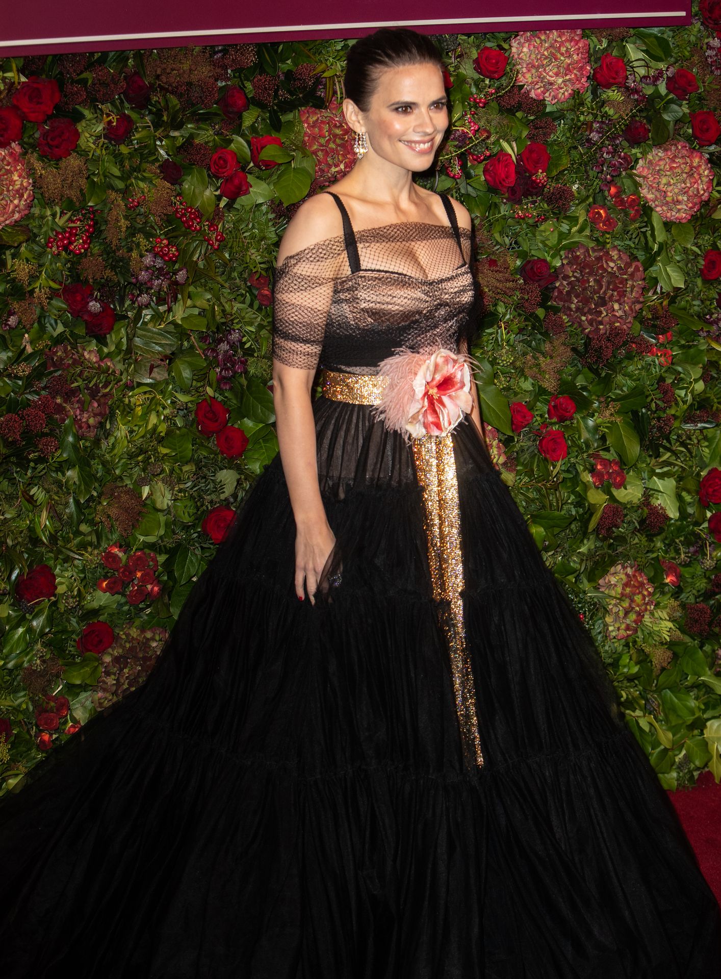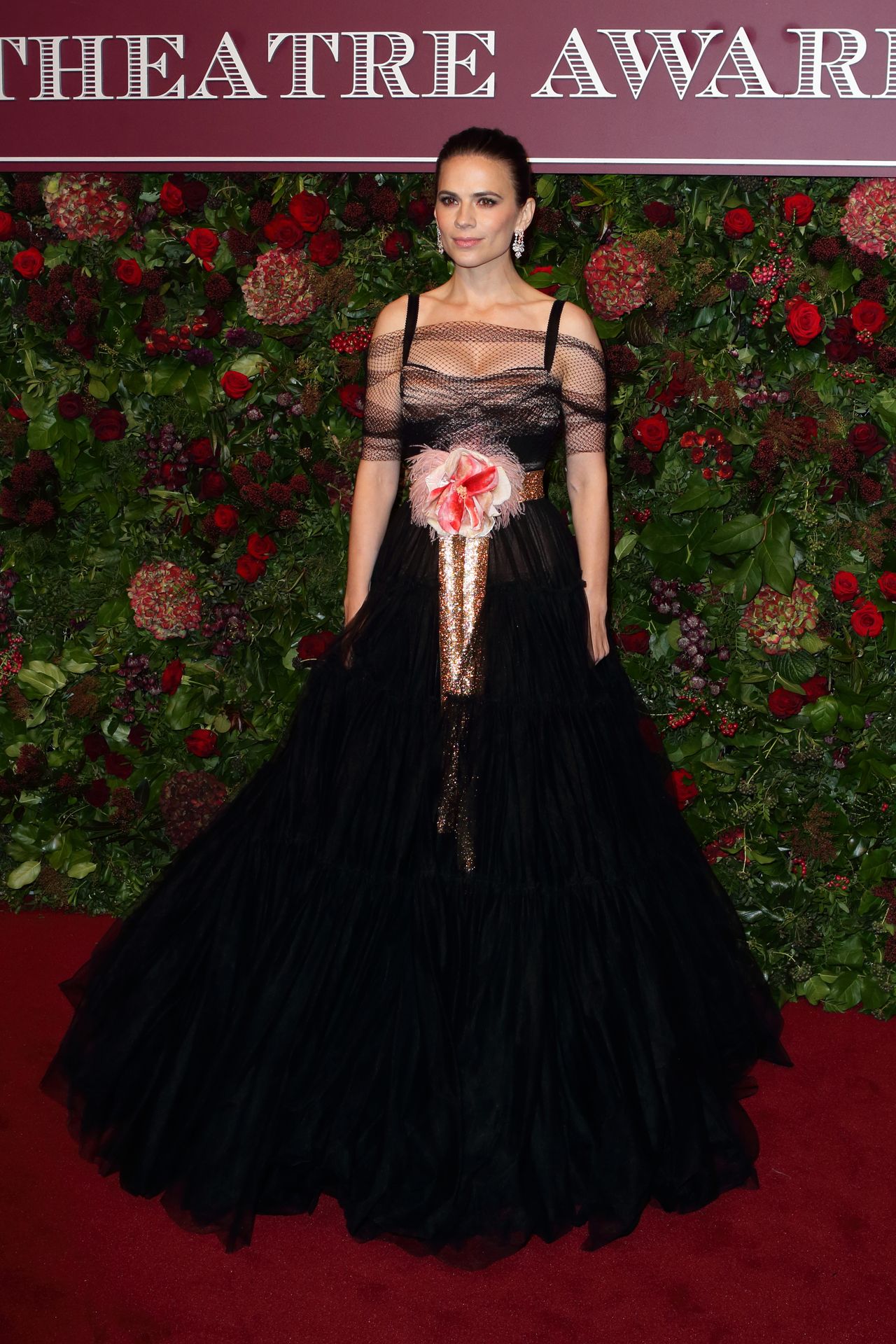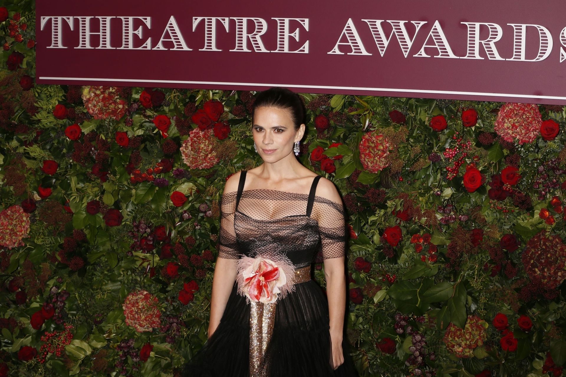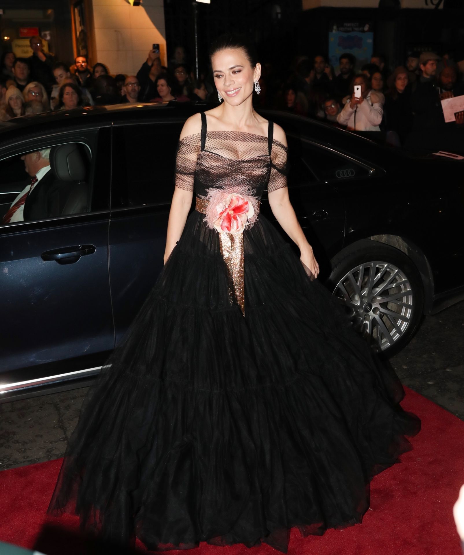 Attrice e star di The Fappening Hayley Atwell mostra la pelle con un vestito a rete mentre arriva fuori dagli arrivi degli Evening Standard Film Awards a Londra, 24/11/2019.
