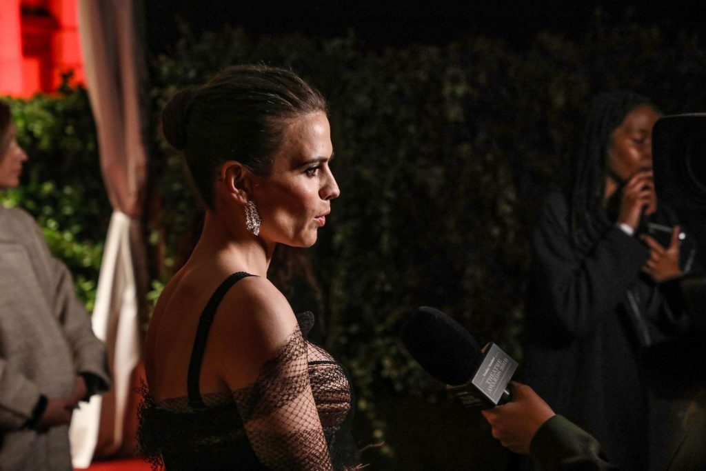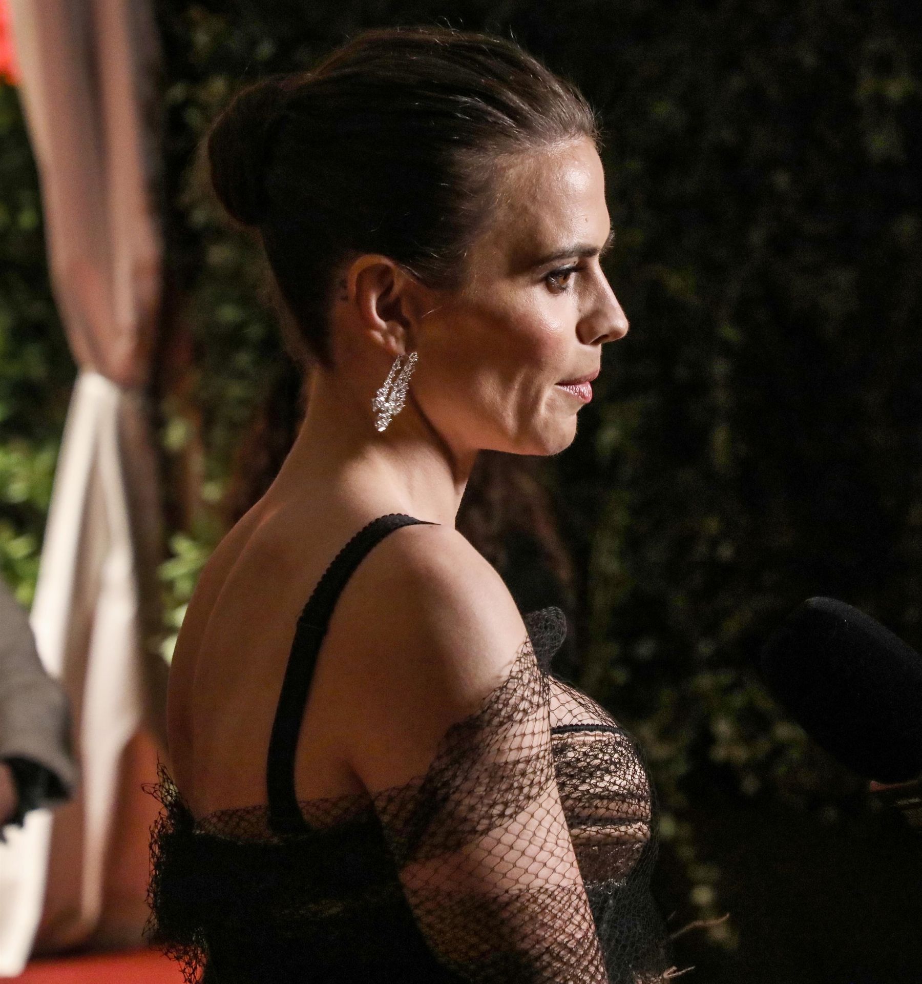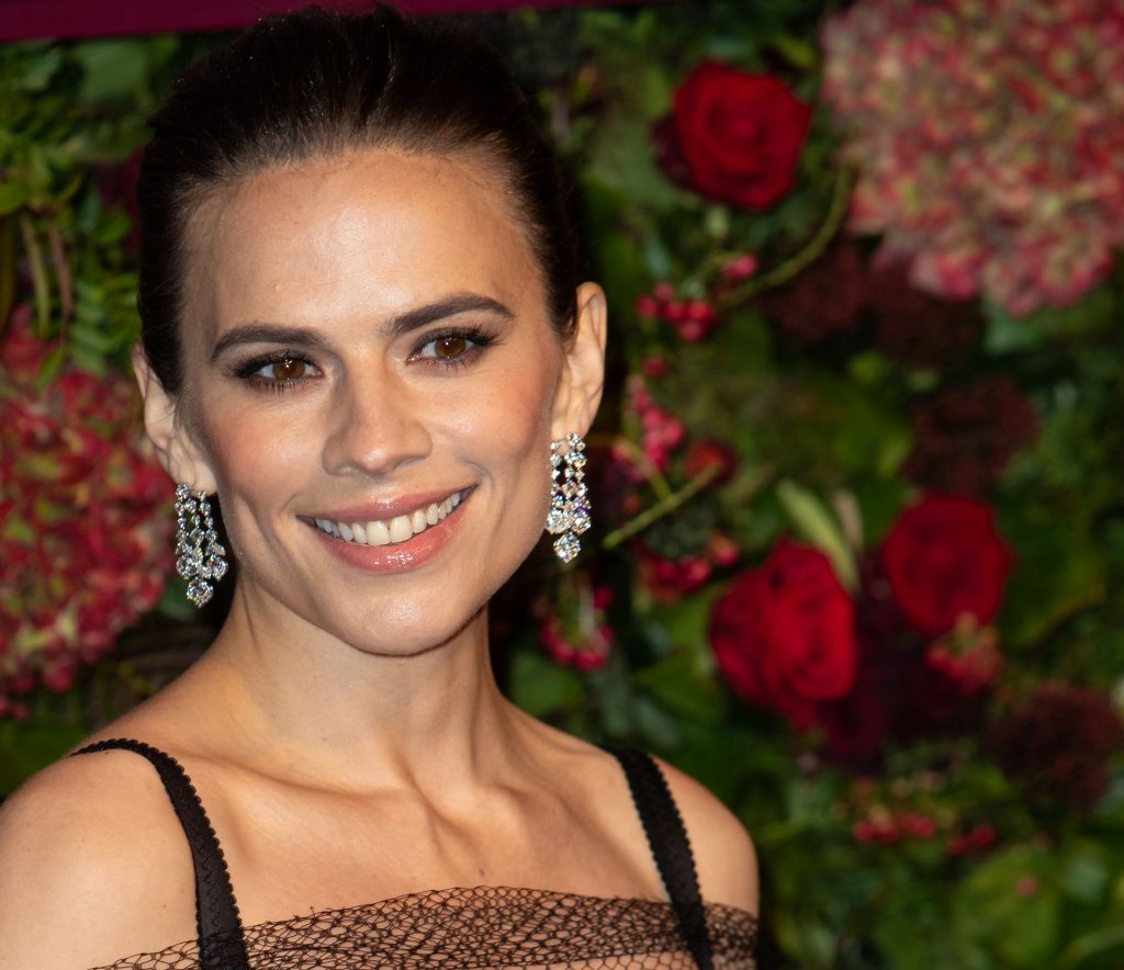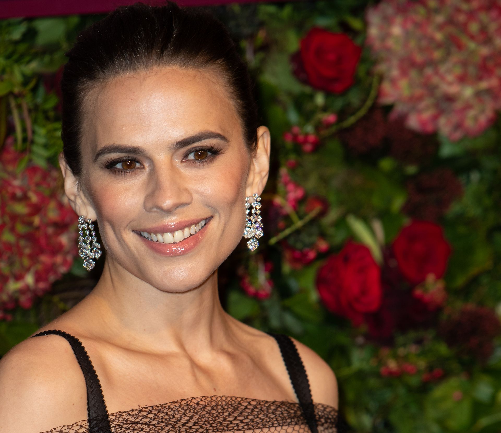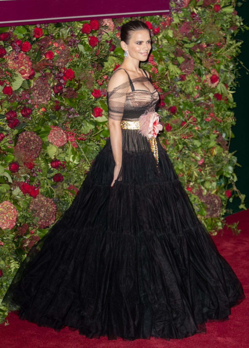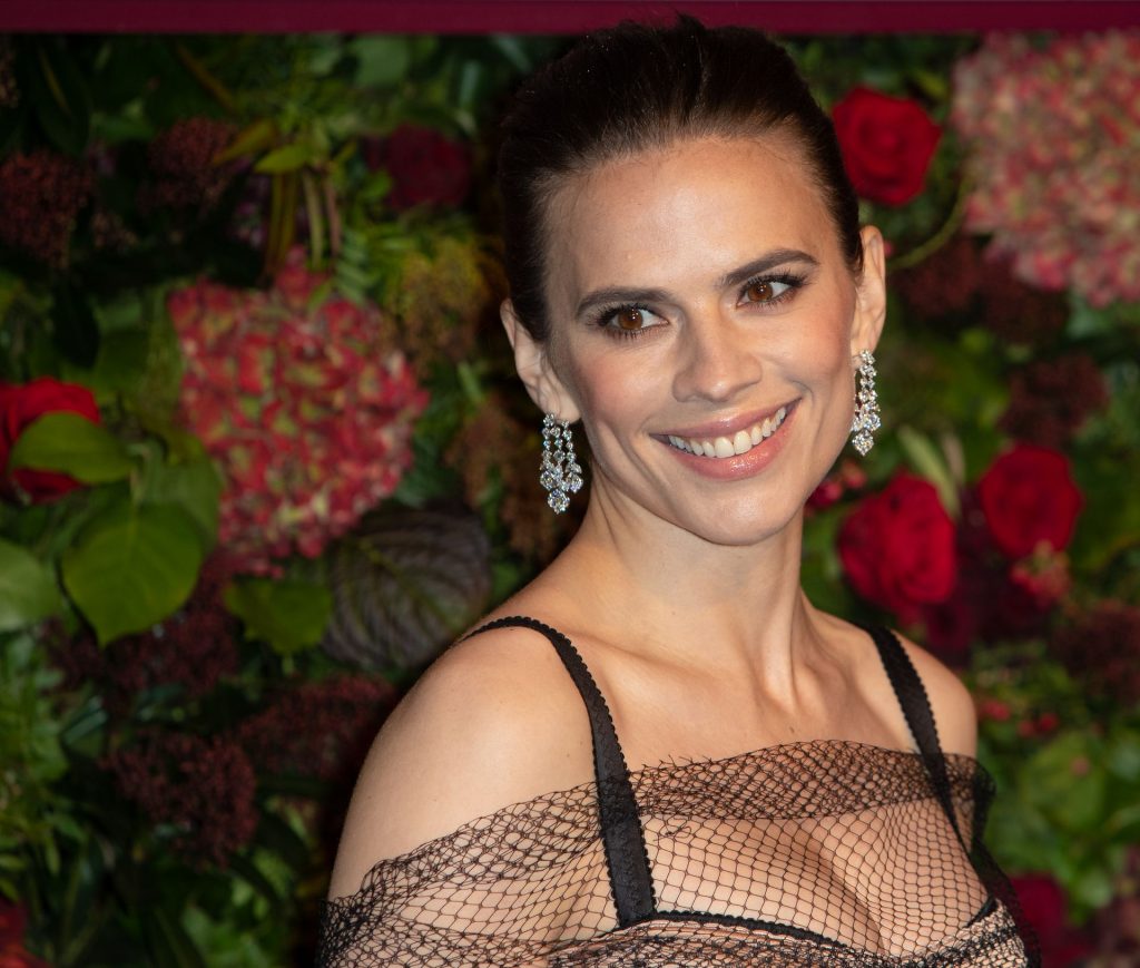 Attrice e star di The Fappening Hayley Atwell mostra la pelle con un vestito a rete mentre arriva fuori dagli arrivi degli Evening Standard Film Awards a Londra, 24/11/2019.