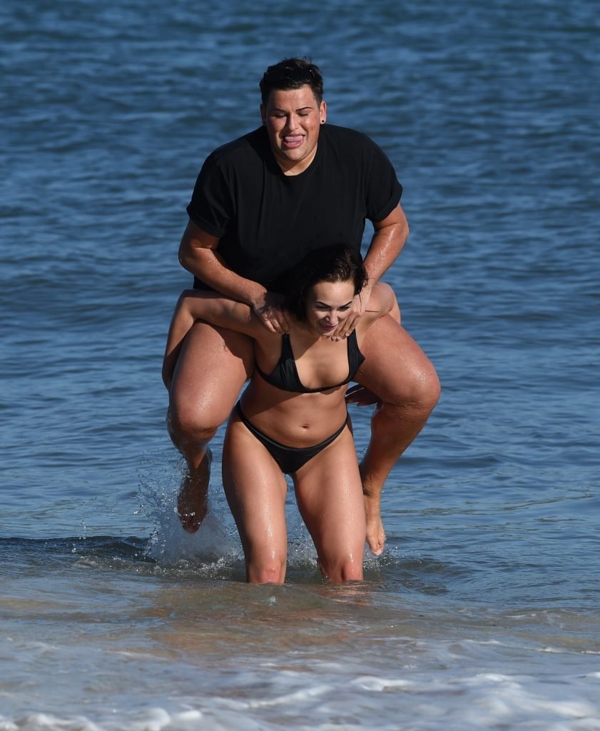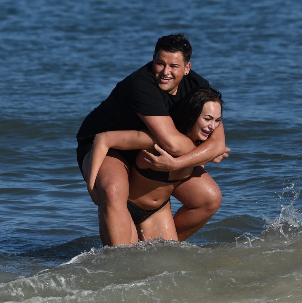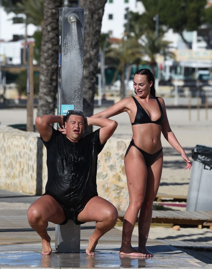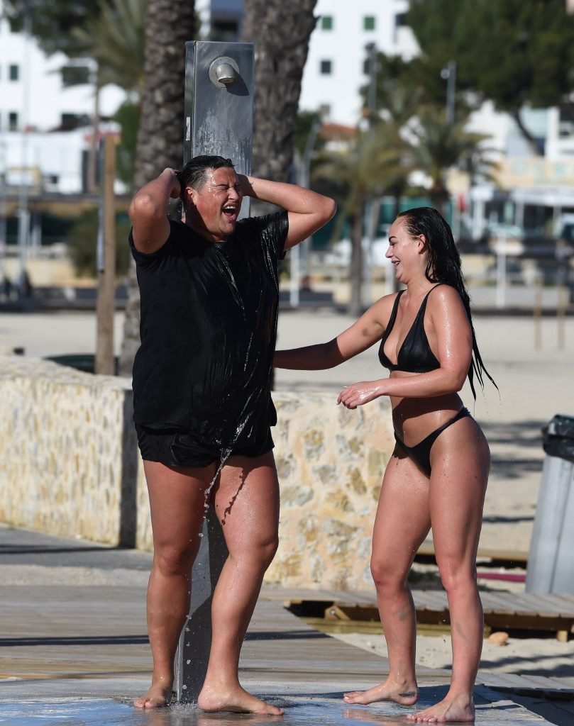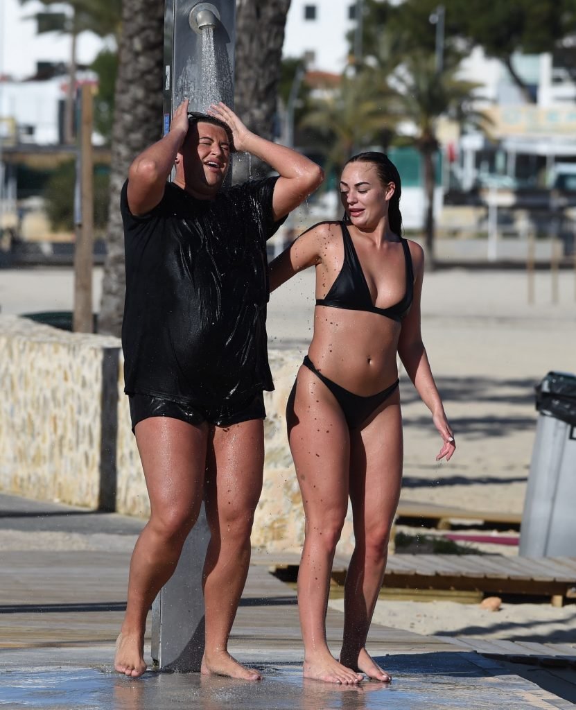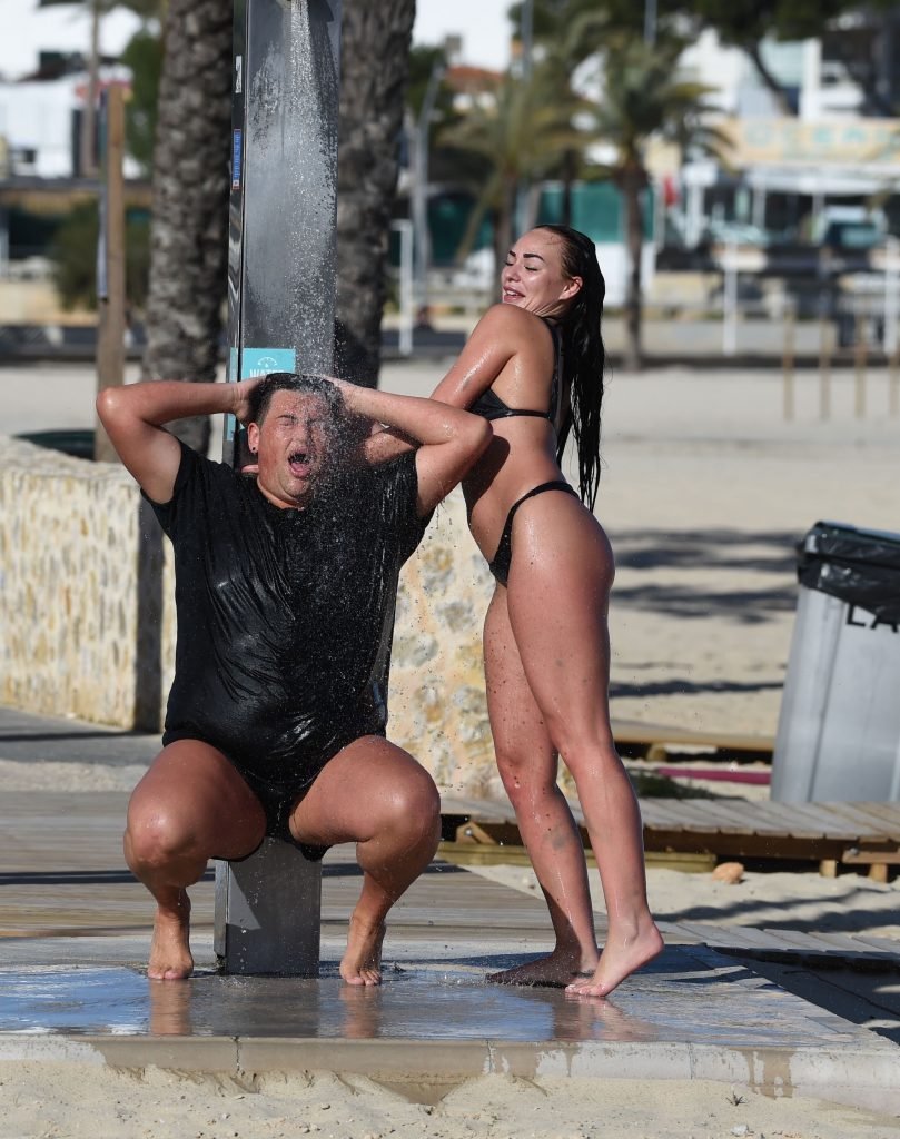 ITV2’s Ibiza Weekender stars David Weekender (David Potts) e Hayley Fanshaw, 20 anni, si divertono sulla spiaggia godendosi il sole a Magaluf, Maiorca, Spagna, 16/04/2018.