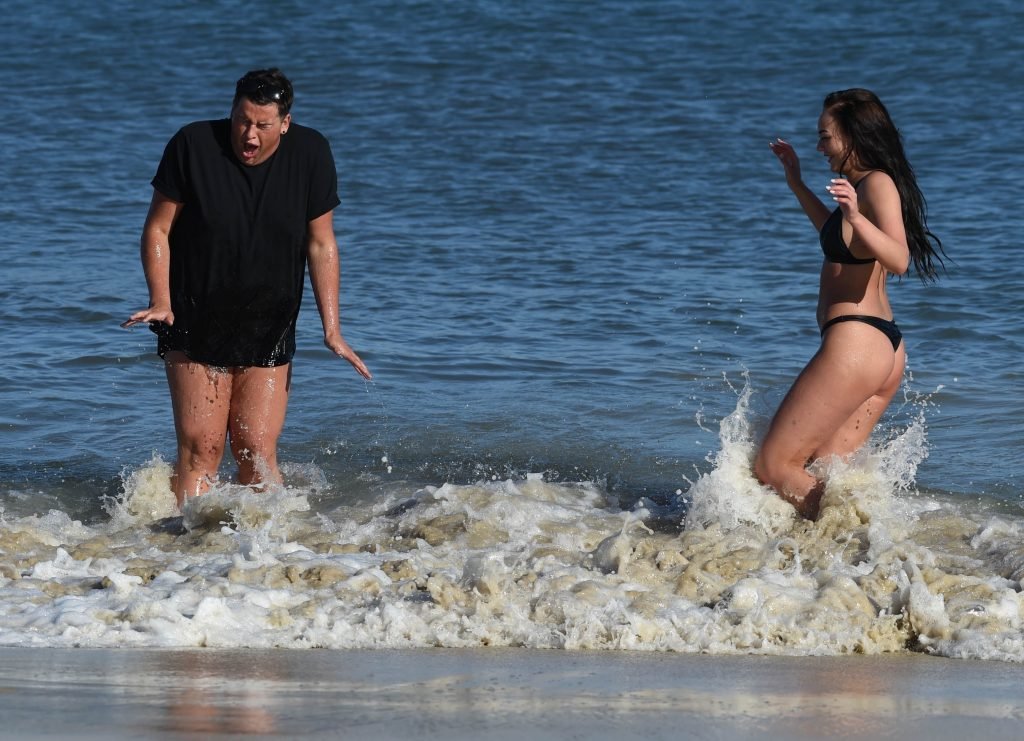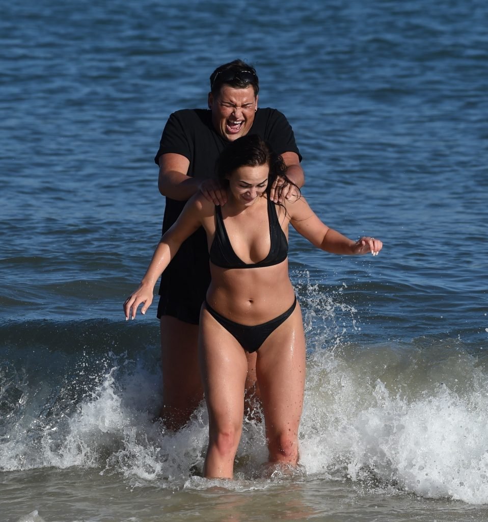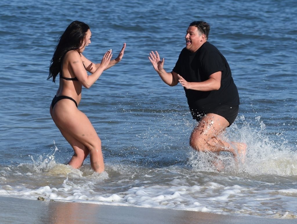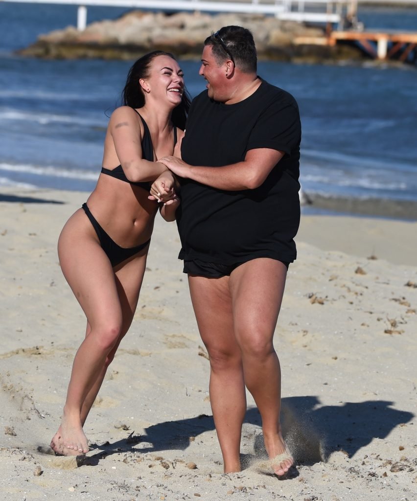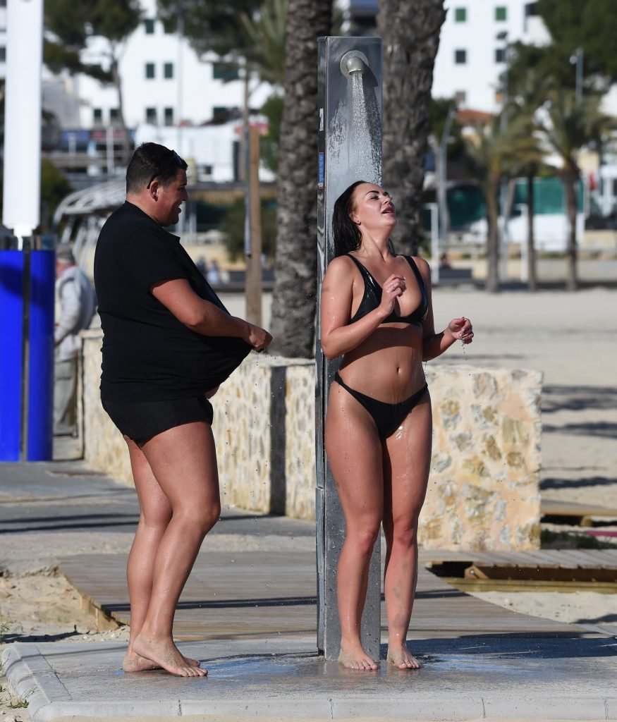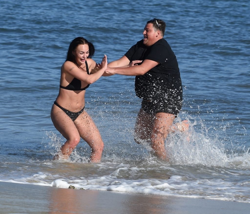 ITV2’s Ibiza Weekender stars David Weekender (David Potts) e Hayley Fanshaw, 20 anni, si divertono sulla spiaggia godendosi il sole a Magaluf, Maiorca, Spagna, 16/04/2018.