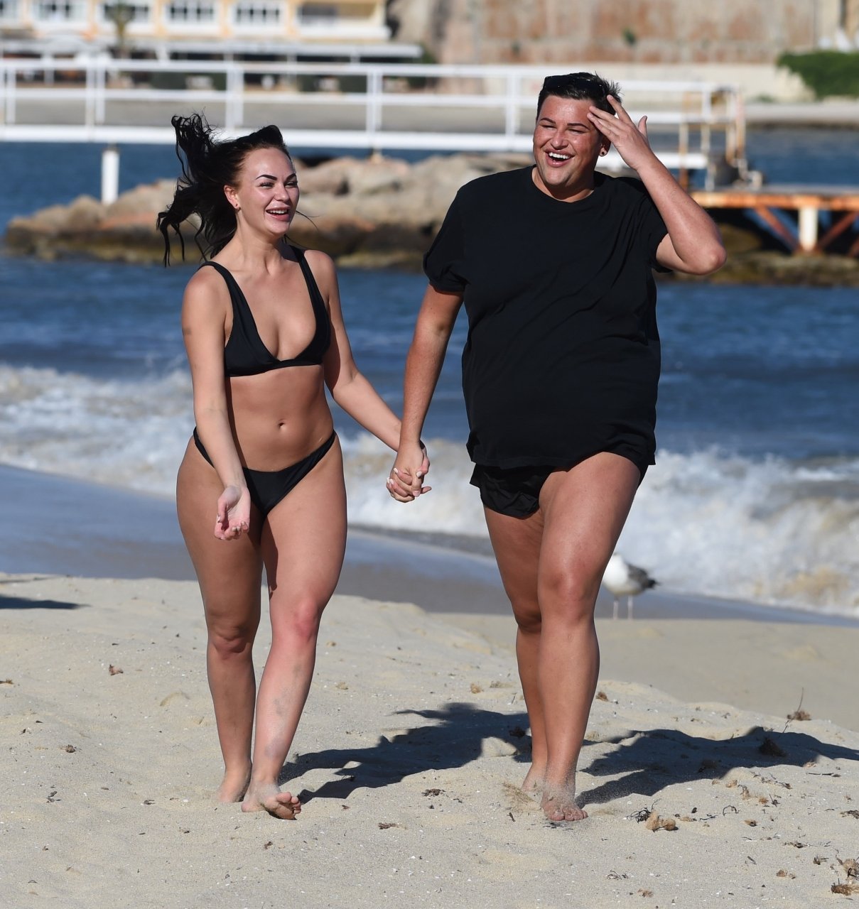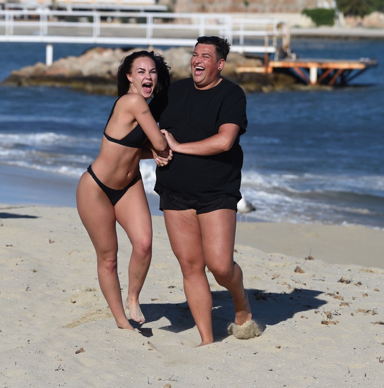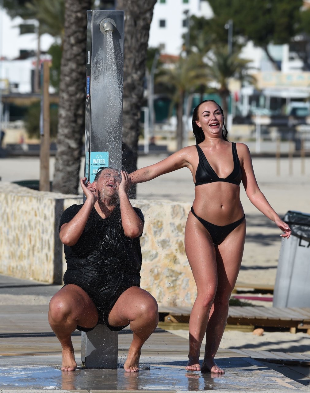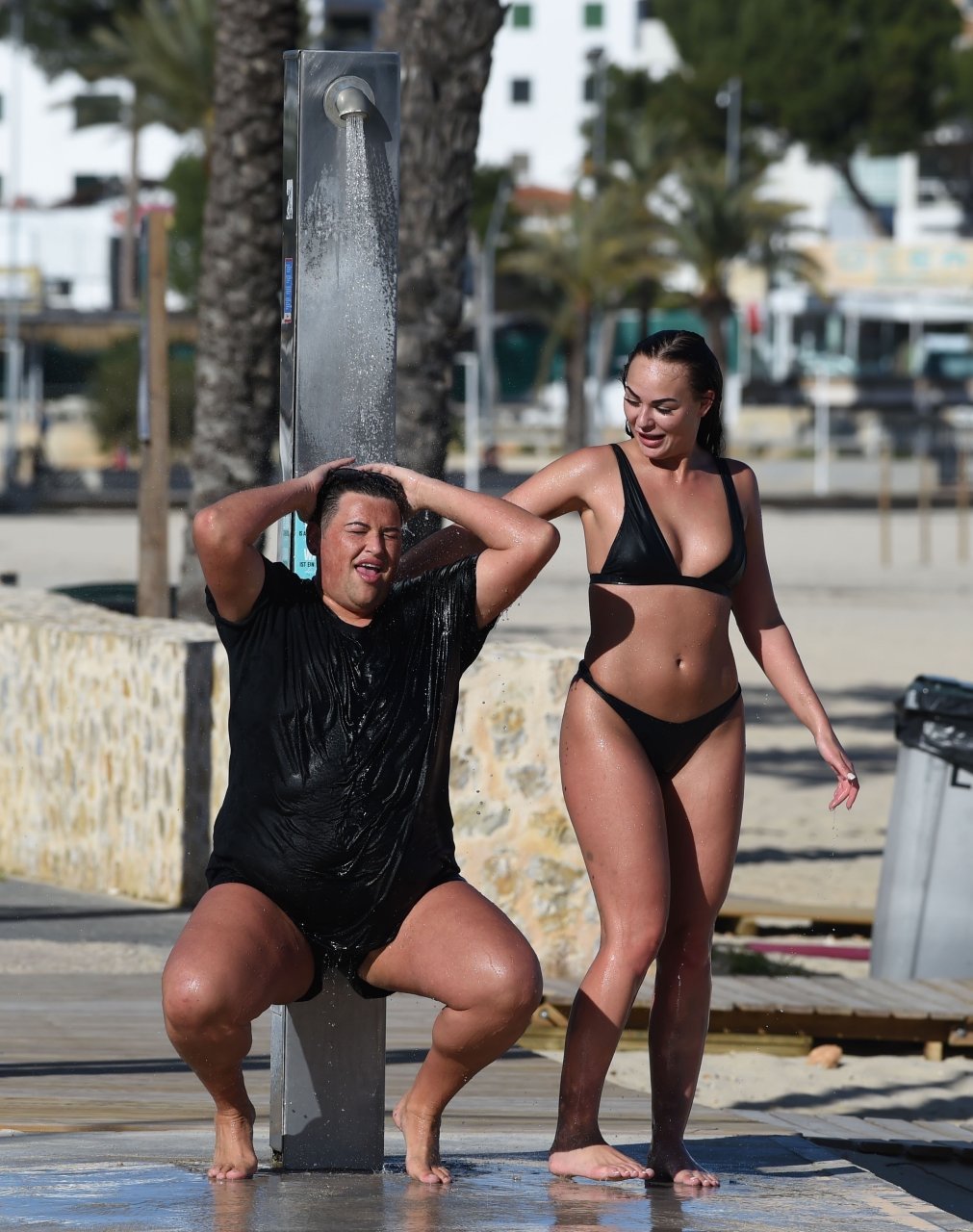 ITV2’s Ibiza Weekender stars David Weekender (David Potts) e Hayley Fanshaw, 20 anni, si divertono sulla spiaggia godendosi il sole a Magaluf, Maiorca, Spagna, 16/04/2018.