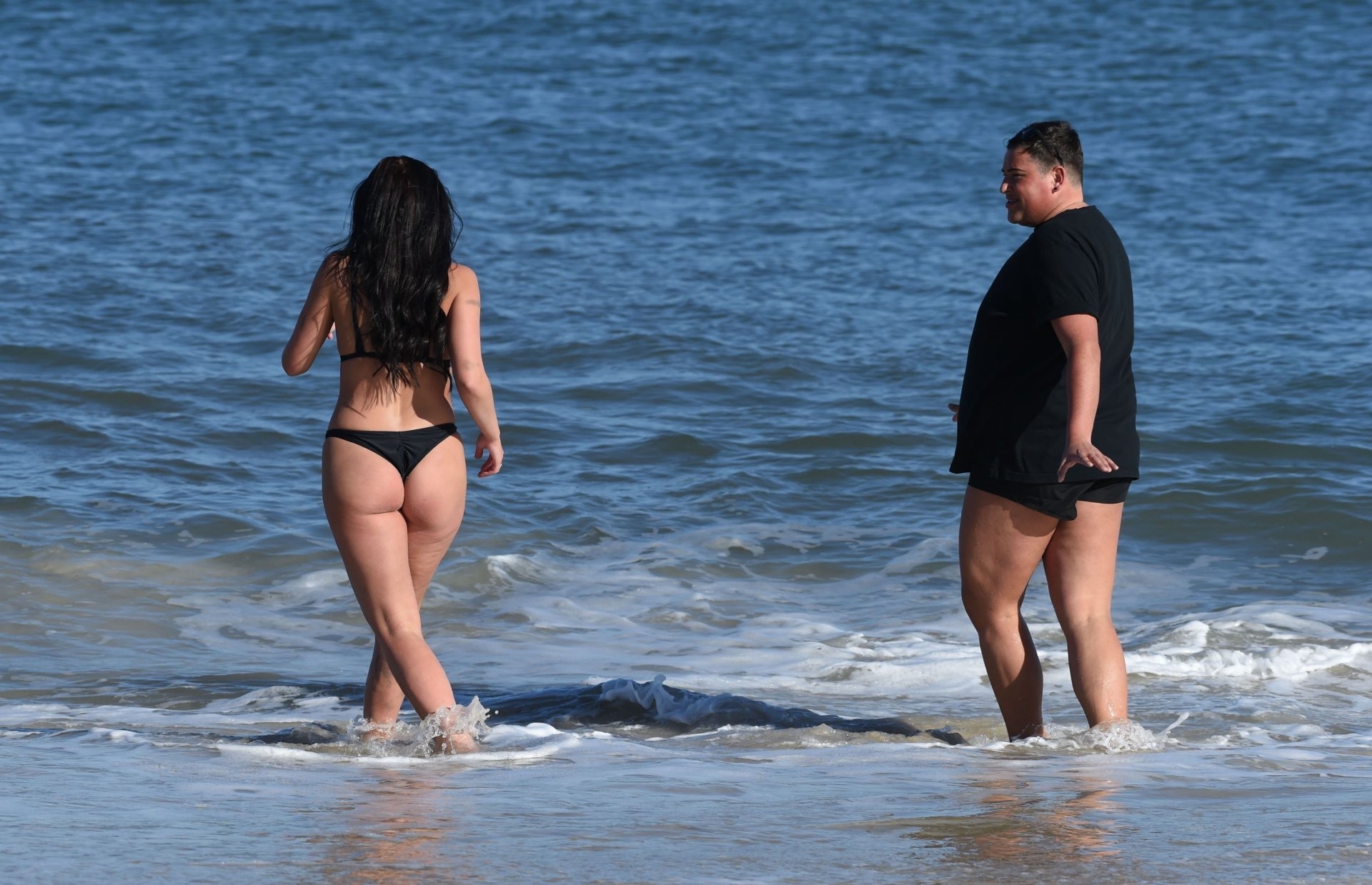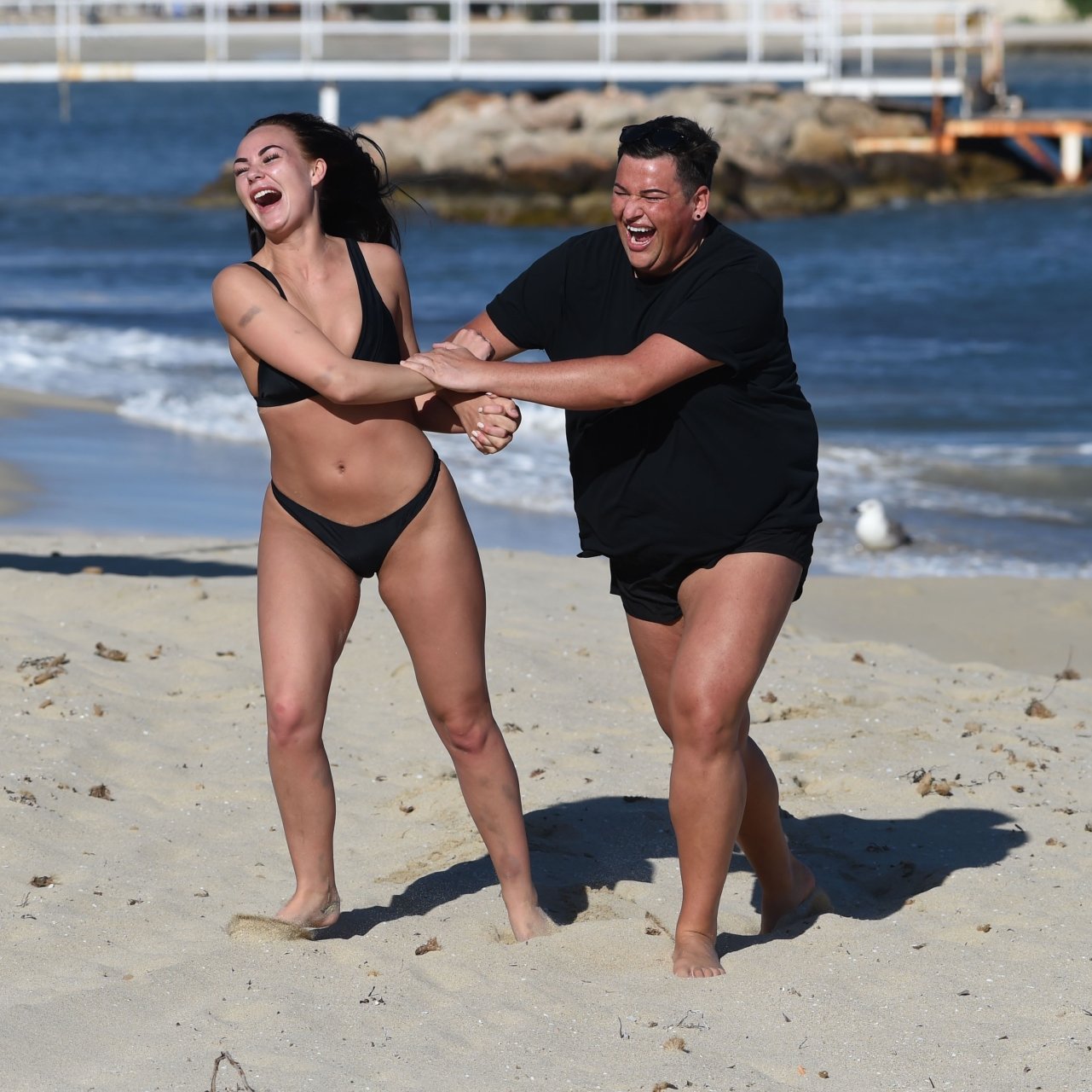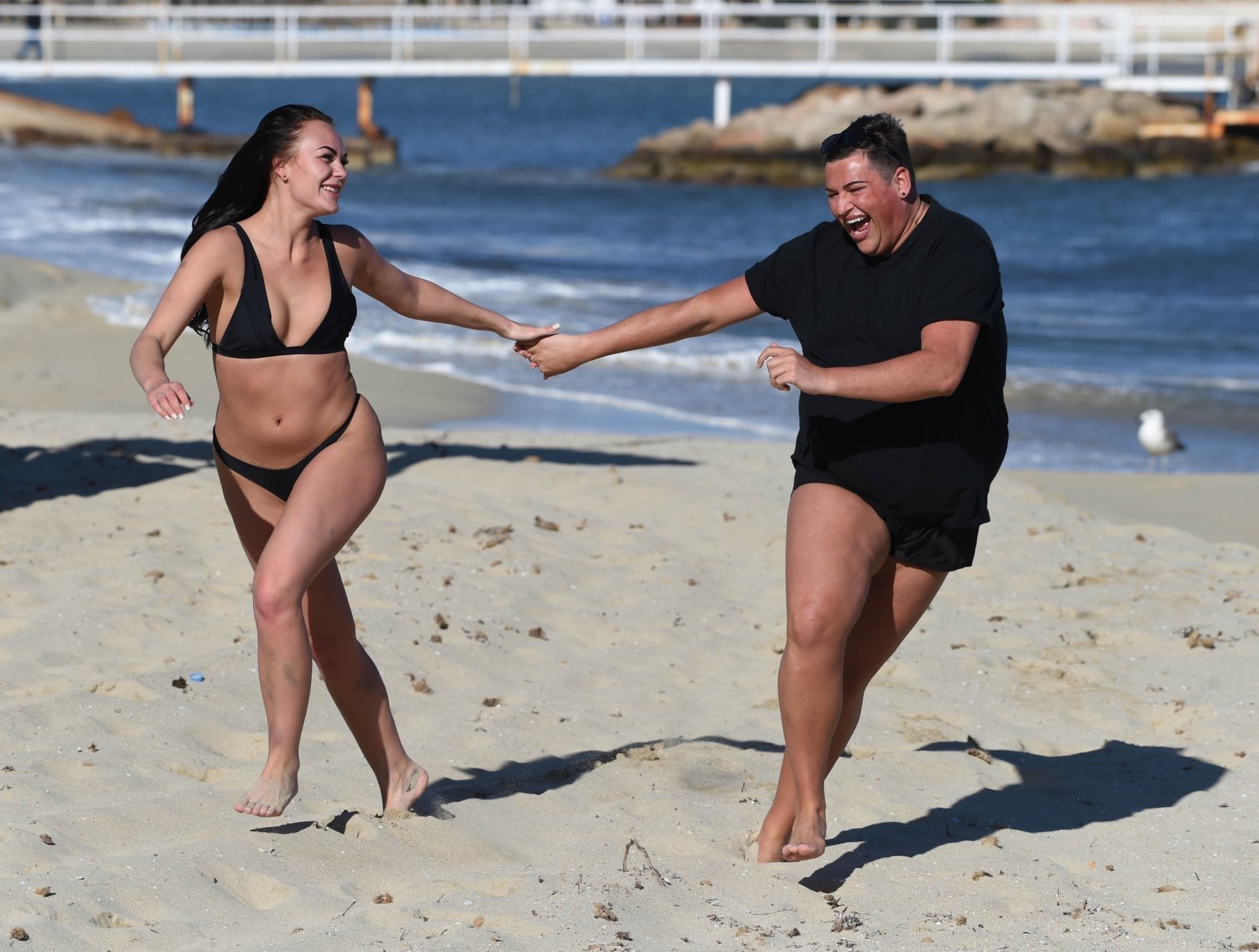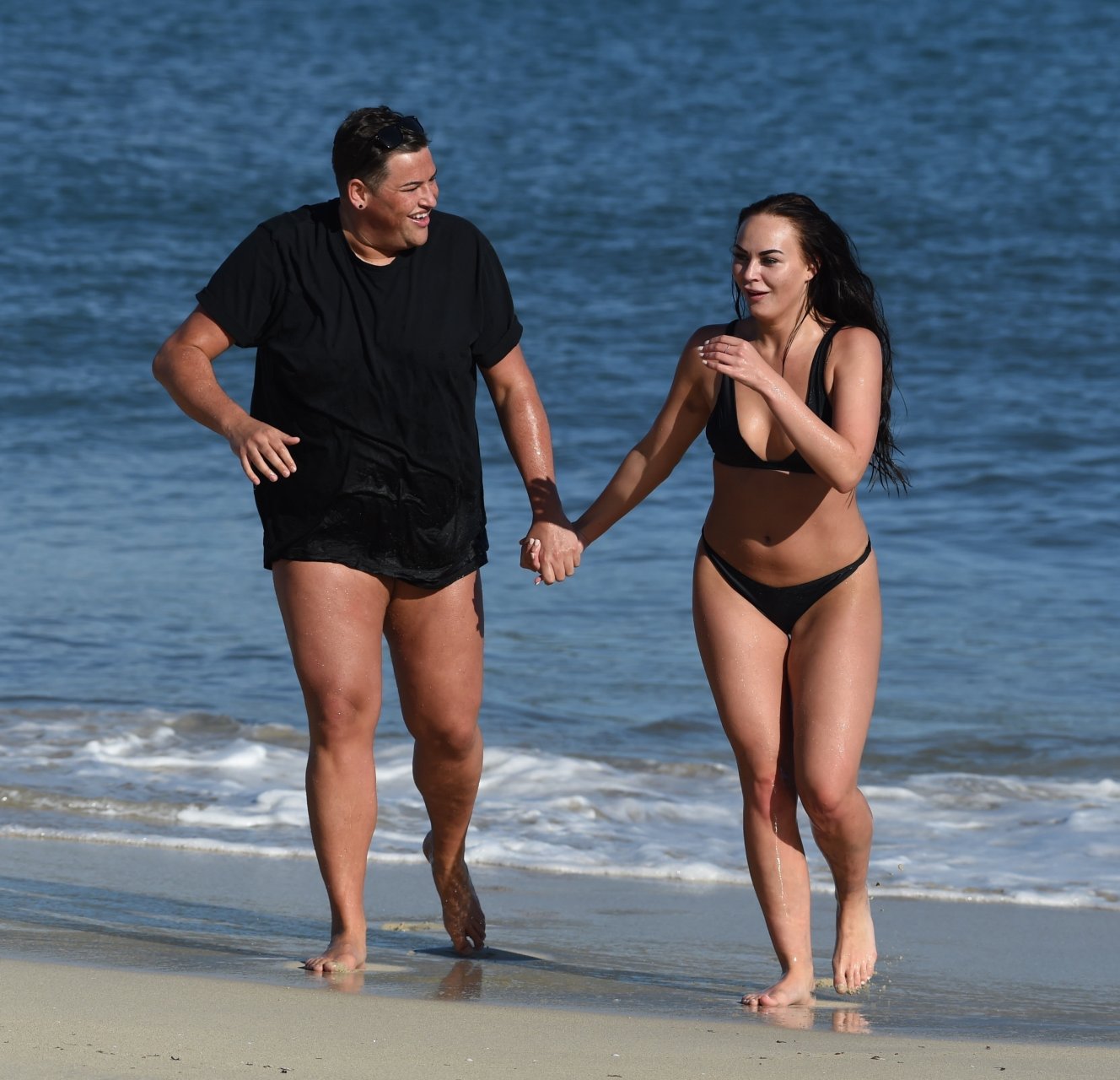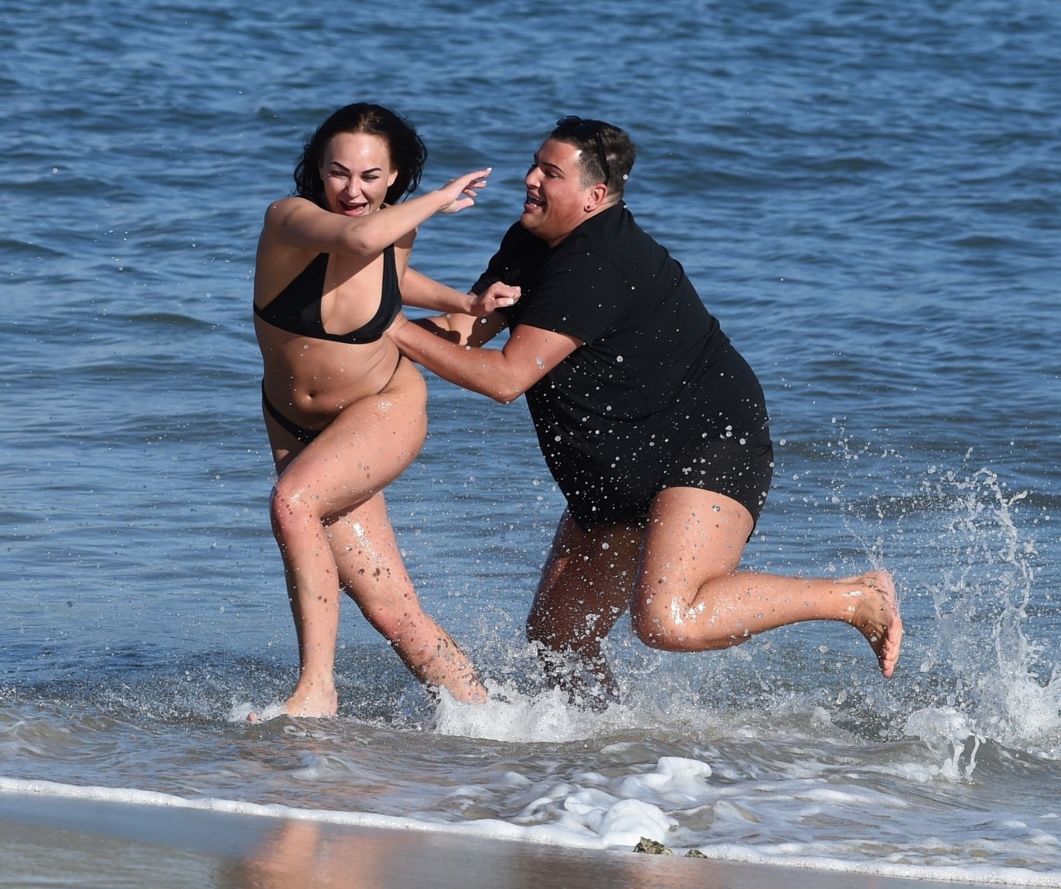 ITV2’s Ibiza Weekender stars David Weekender (David Potts) e Hayley Fanshaw, 20 anni, si divertono sulla spiaggia godendosi il sole a Magaluf, Maiorca, Spagna, 16/04/2018.