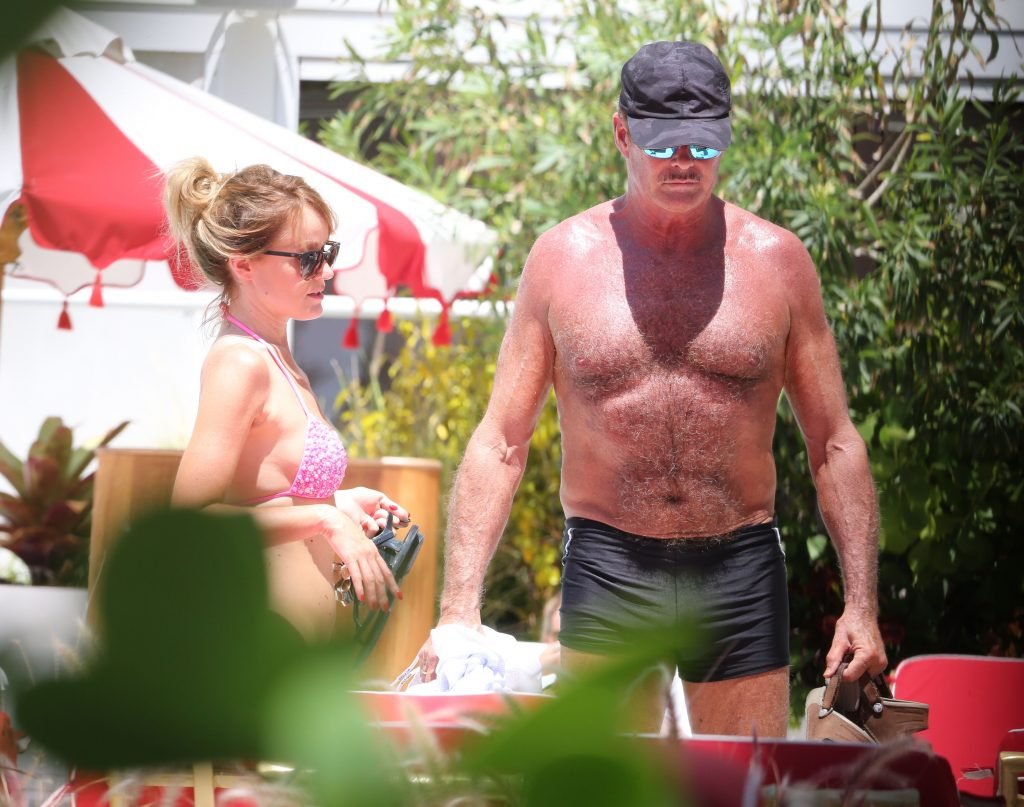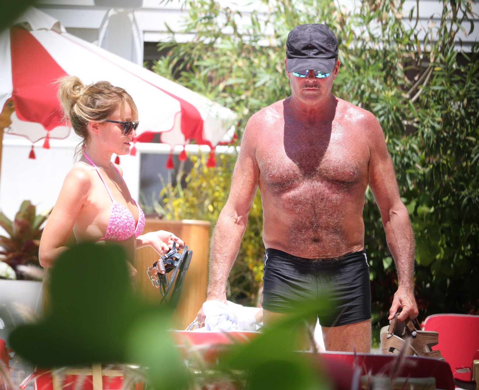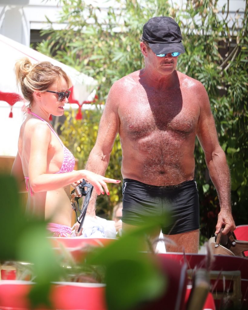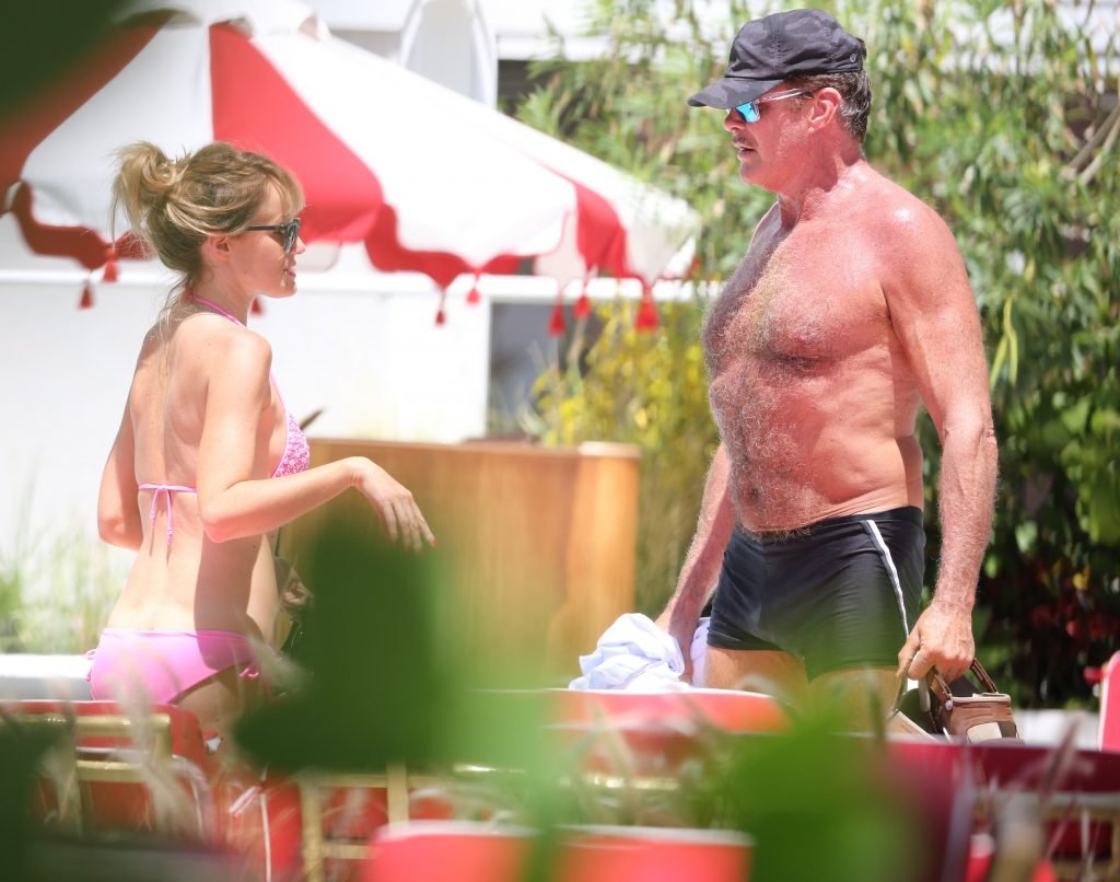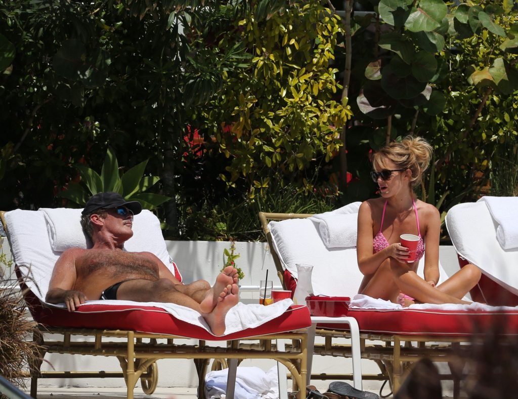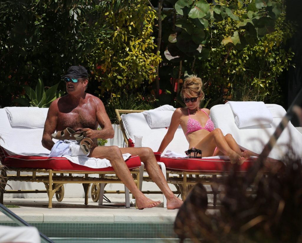 Hayley Roberts e David Hasselhoff trascorrono una giornata sulla spiaggia a Miami, 15/05/2017. Hayley Roberts è una modella americana. Età: 36.