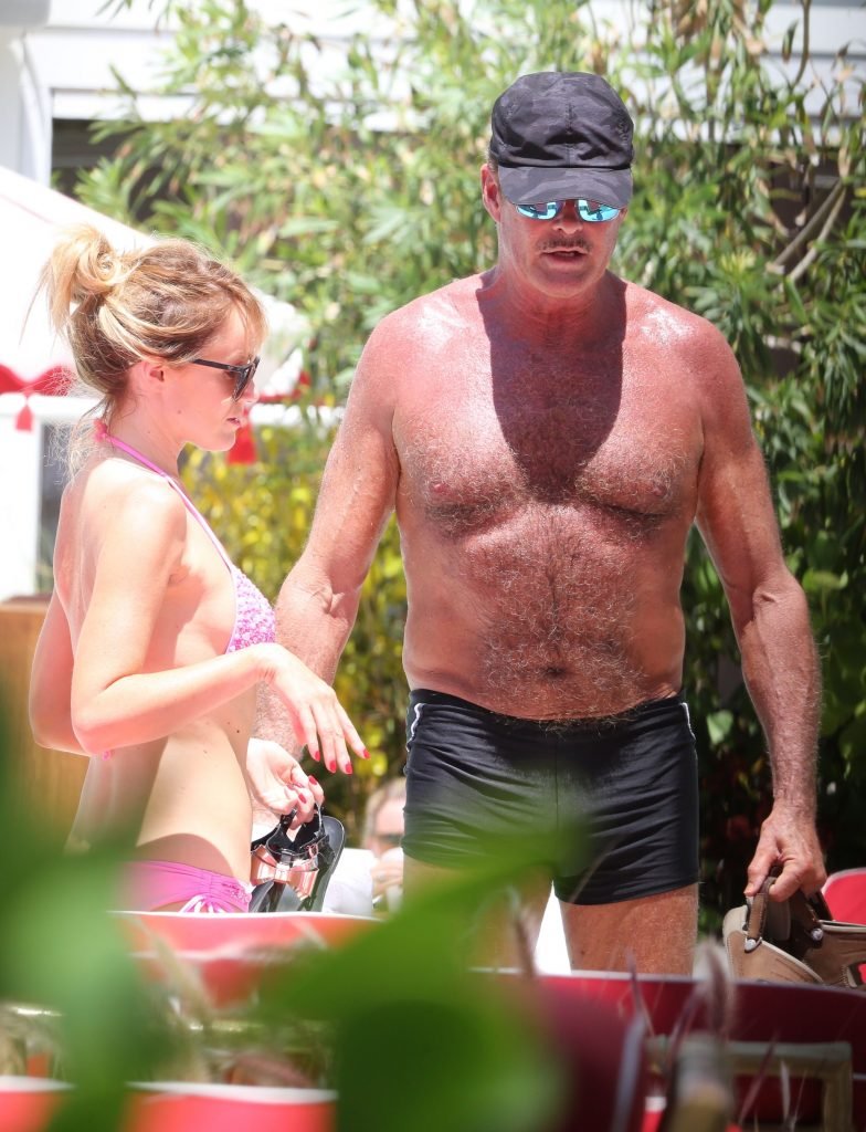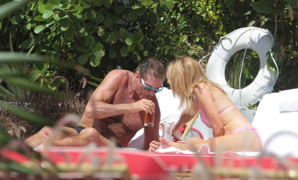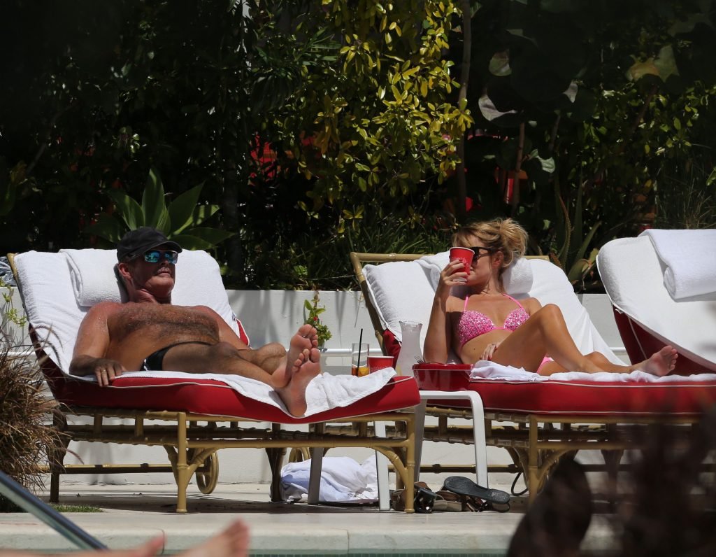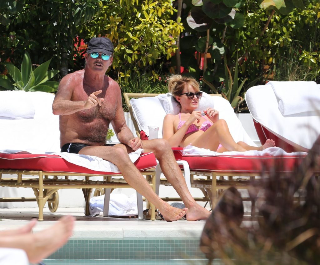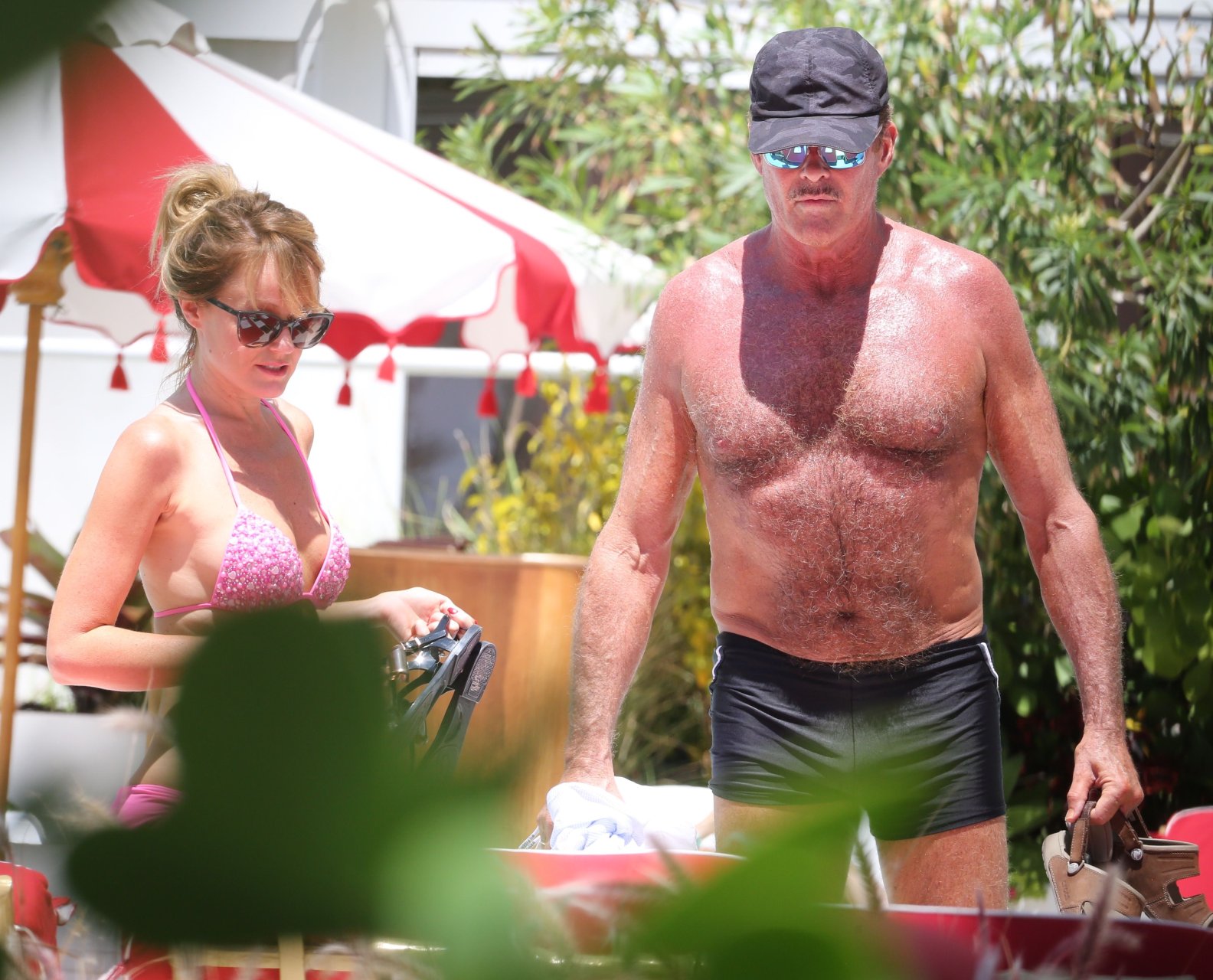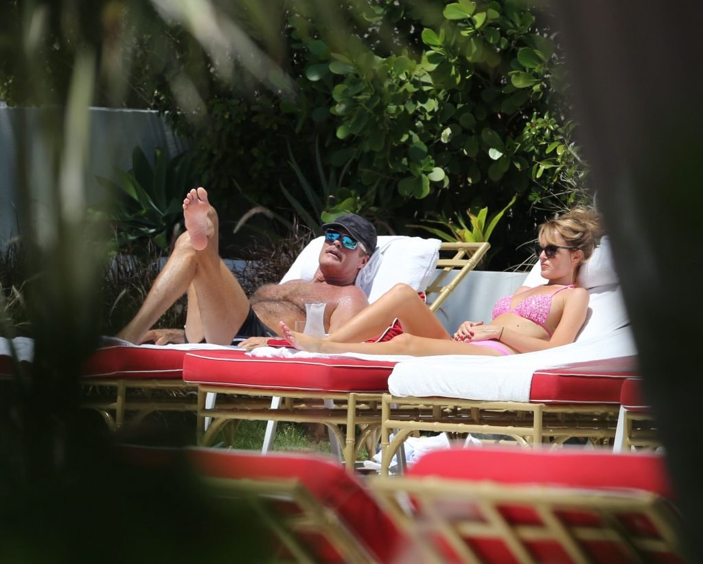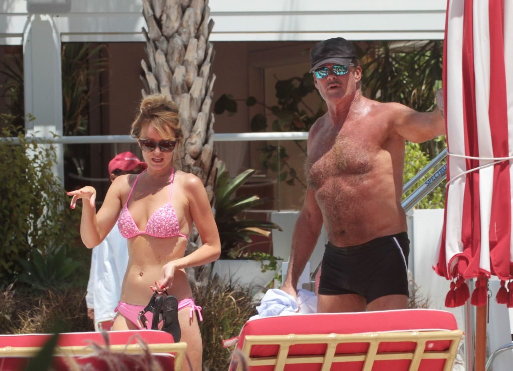 Hayley Roberts e David Hasselhoff trascorrono una giornata sulla spiaggia a Miami, 15/05/2017. Hayley Roberts è una modella americana. Età: 36.