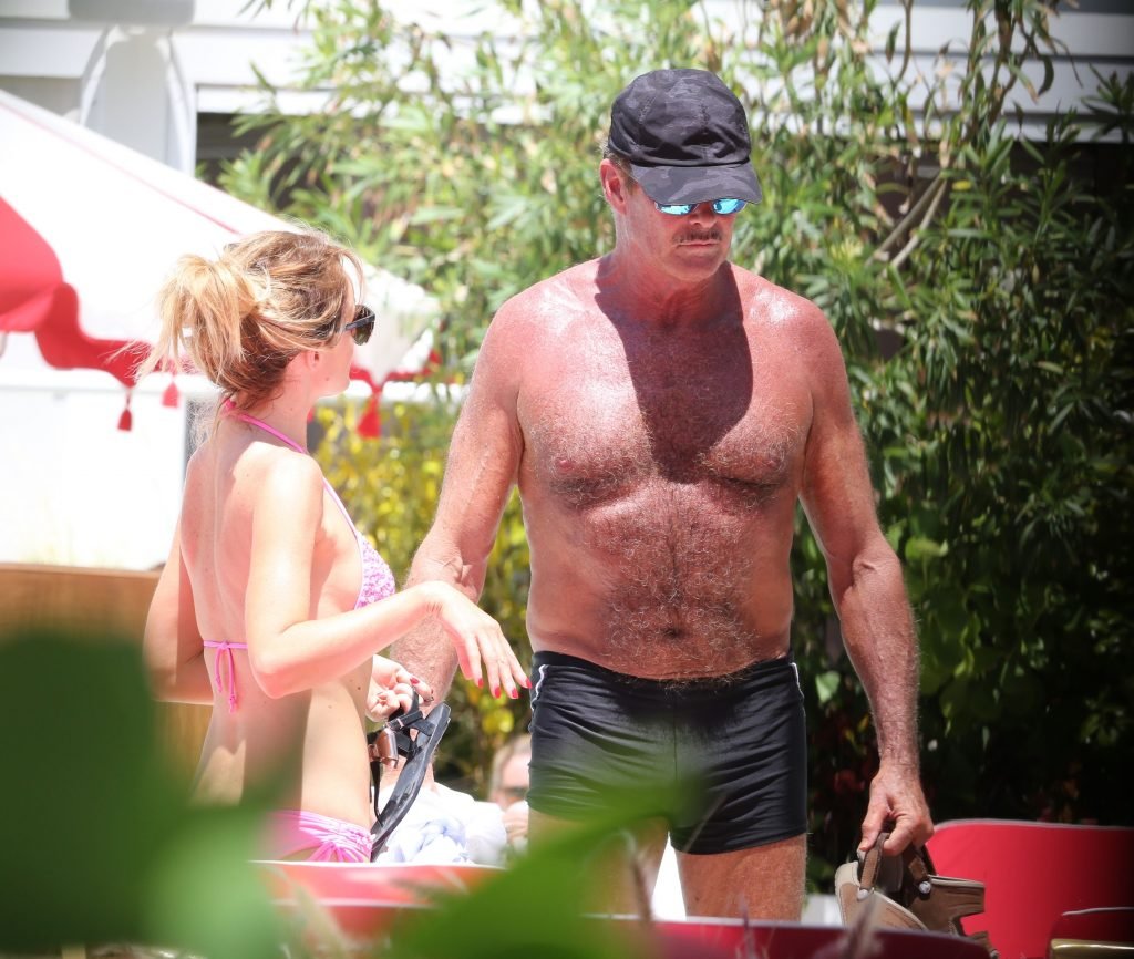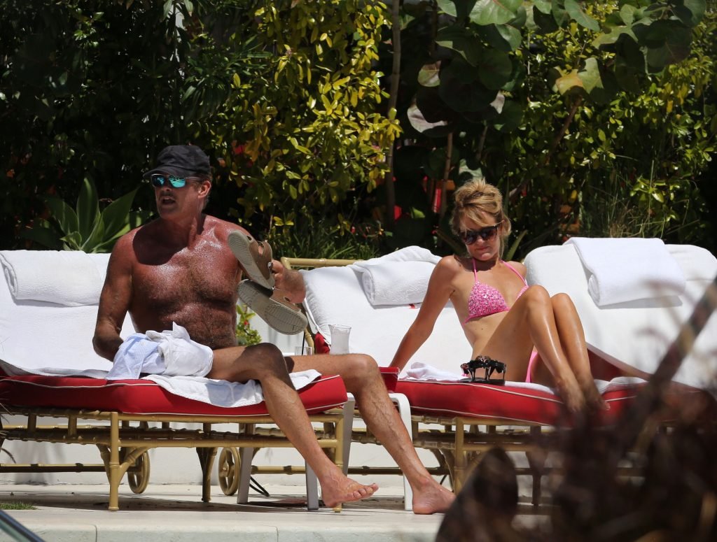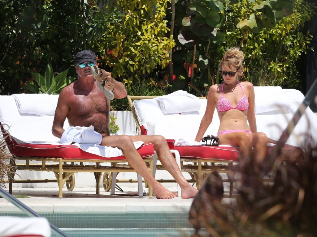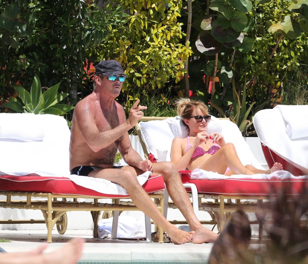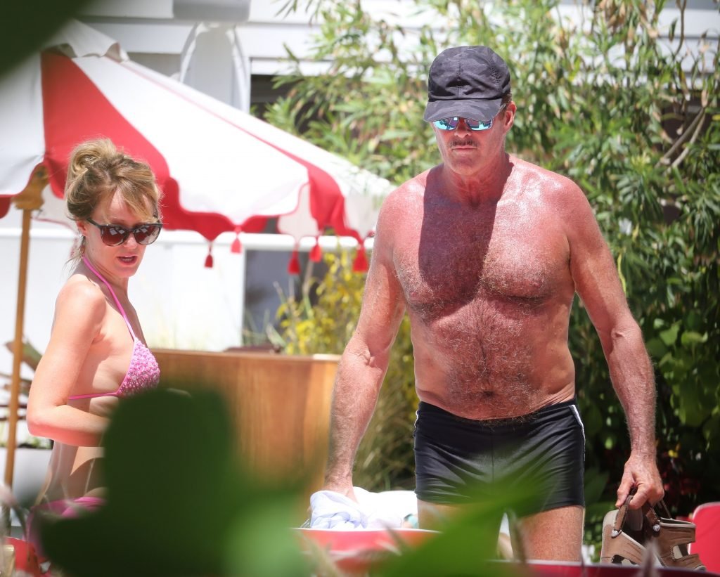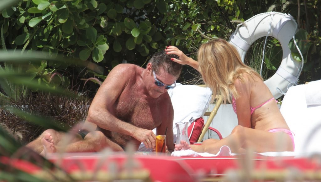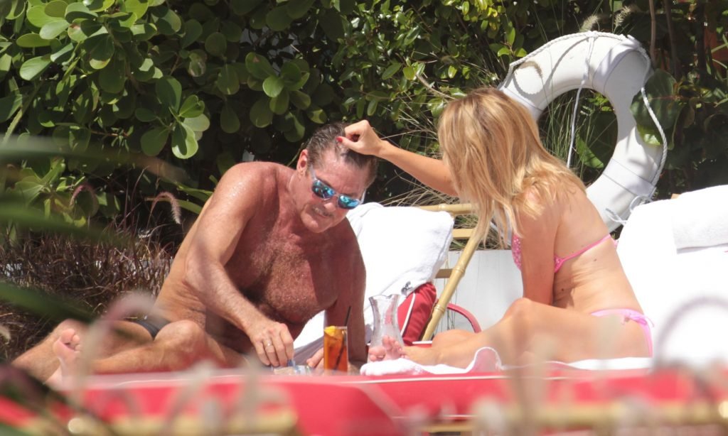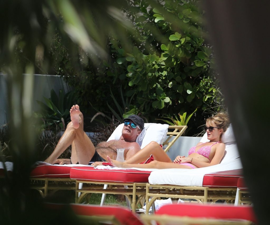 Hayley Roberts e David Hasselhoff trascorrono una giornata sulla spiaggia a Miami, 15/05/2017. Hayley Roberts è una modella americana. Età: 36.