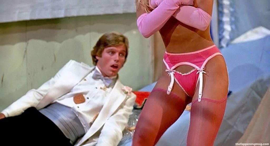 Ecco Heather Thomas in piedi con un vestito rosa da ballo, che guarda con aria compiaciuta un ragazzo. Lui usa la mente per abbassarle il vestito rosa con la telecinesi, mostrandoci un lampo dei suoi seni nudi (controfigura). Poi lei si copre il petto con le braccia. Poi l’uomo usa di nuovo il potere telecinetico per strappare il vestito, rivelando infine le sue mutandine rosa. Infine, lei scappa inseguita da un ragazzo, mentre Felice Schachter e il ragazzo che le ha strappato il vestito guardano.