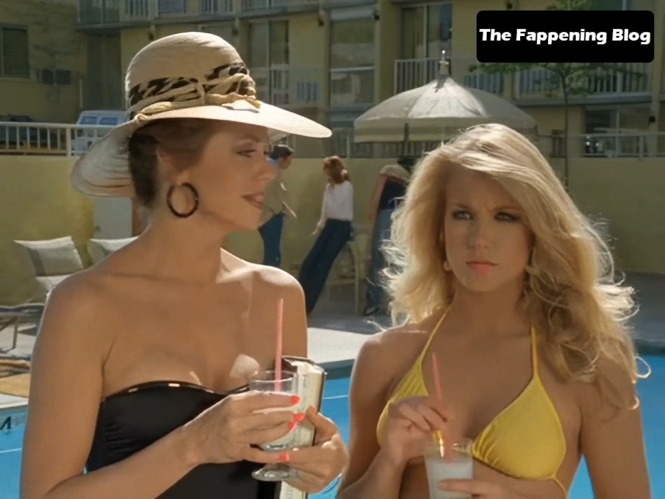Here is the most extensive online collection of Heather Thomas nude, sexy, topless, and bikini pics. The blonde bombshell showed her sideboobs, cleavage, and legs so many times for magazines. And also her pretty feet while posing in the swimming pool! Thomas is one hell of a woman, with all her attributes and the world knows that. She has stalkers, and they made her stop her career. Such a beauty, even in her sixties, so scroll and see what I’m talking about!