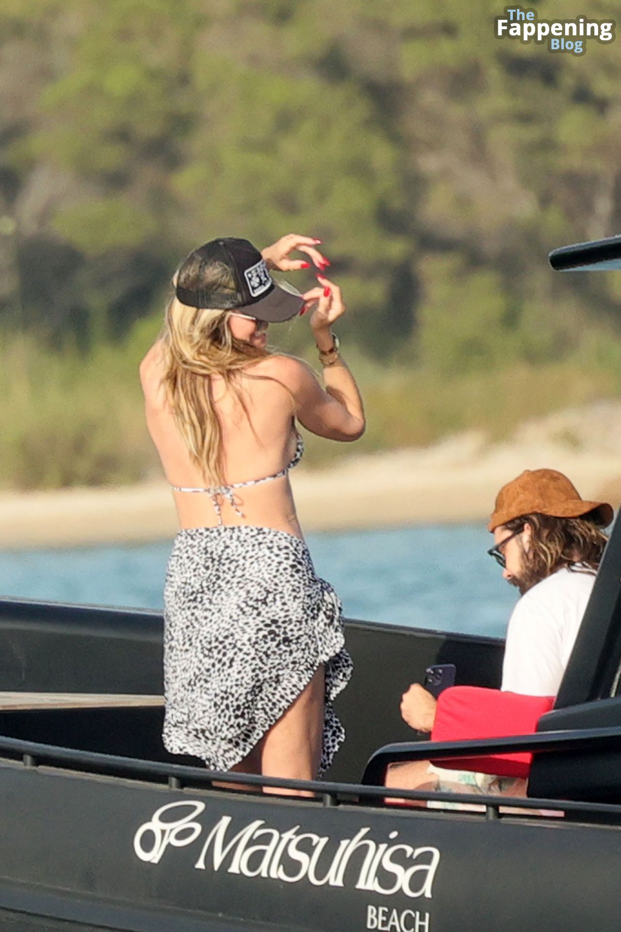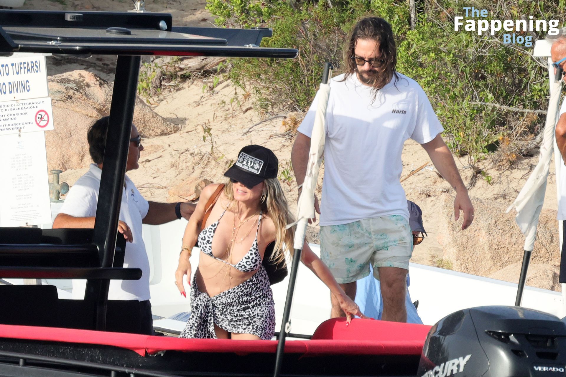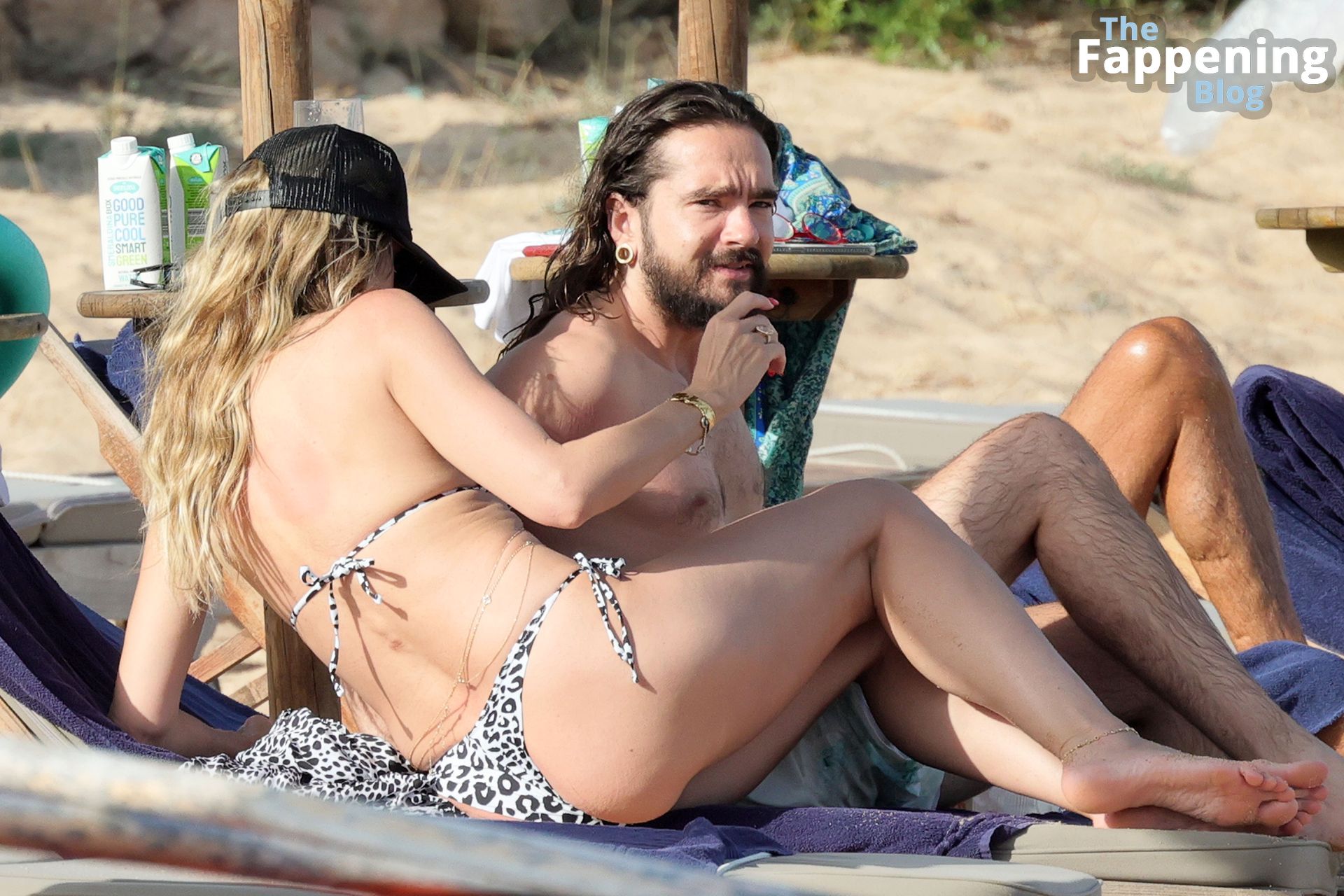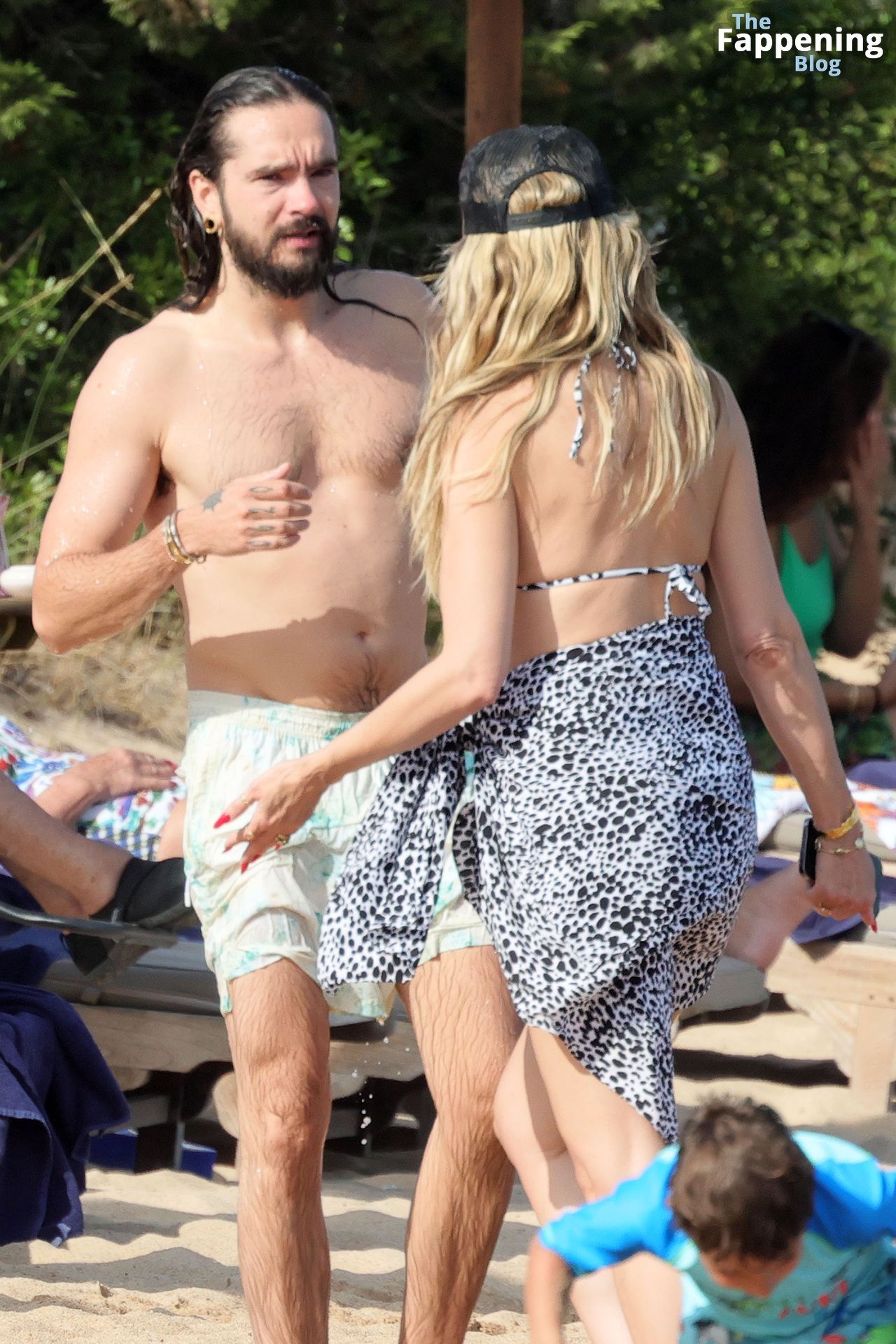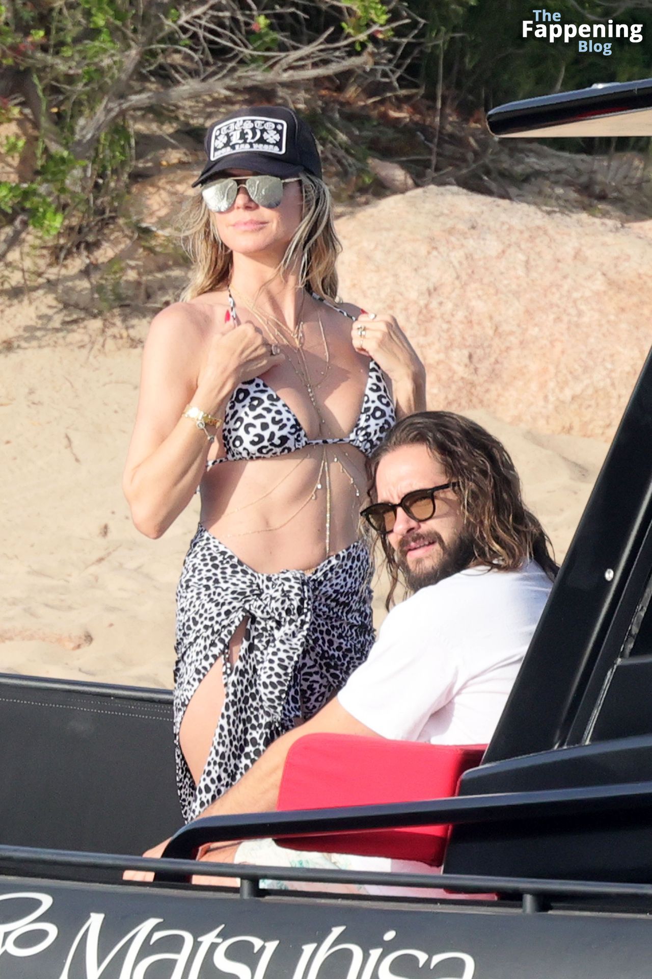 La supermodella tedesca ha mostrato la sua figura impressionante con un bikini leopardato, la coppia affiatata è stata avvistata mentre prendeva il sole sulla spiaggia, prima che Tom si dirigesse verso il mare per una nuotata. Poco dopo la coppia è salita su una barca dove Heidi si è lasciata andare ballando mentre Tom la guardava.