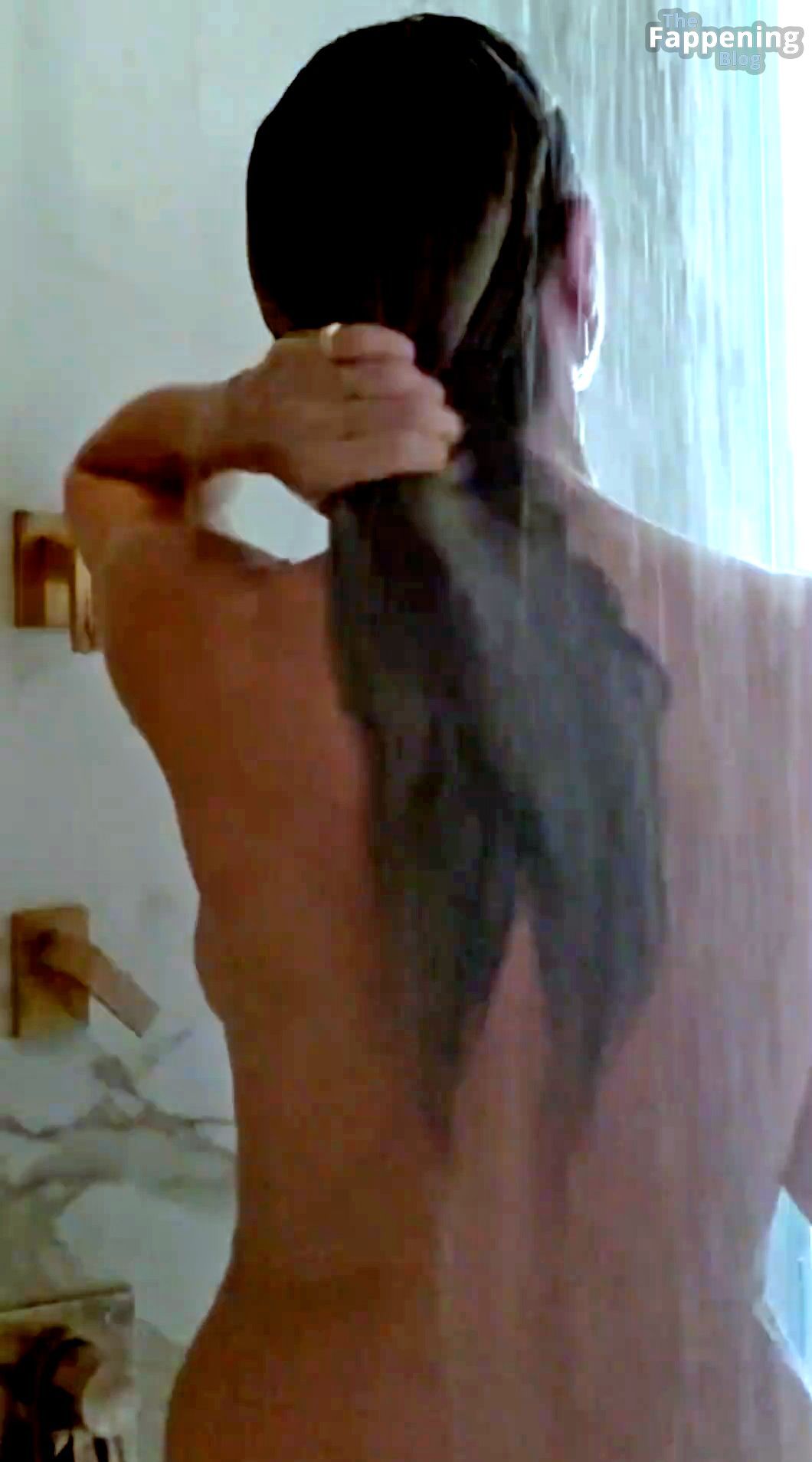 Heidi Klum è stata filmata nella doccia, completamente nuda, mostrando i suoi enormi seni di lato e le gambe da urlo.