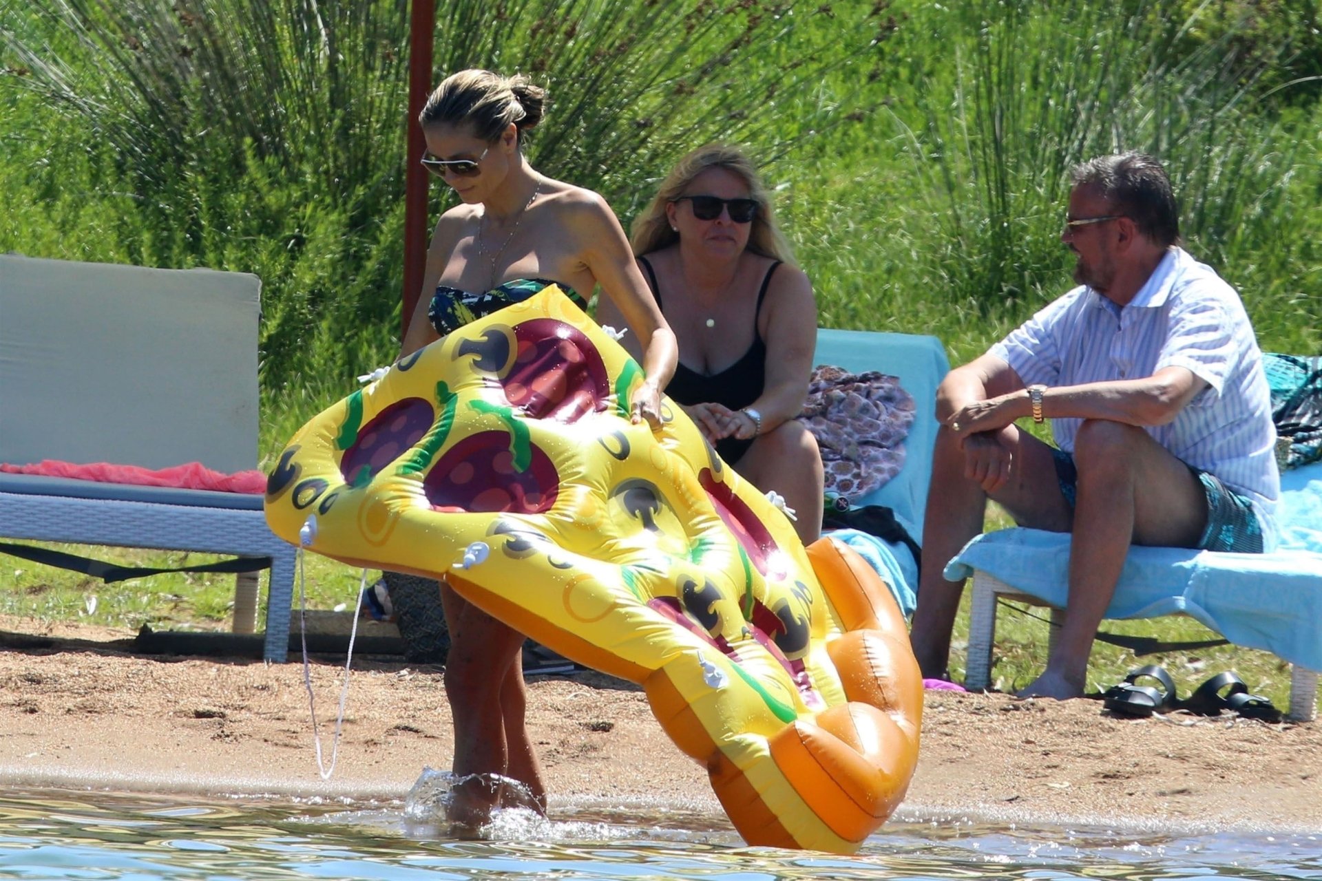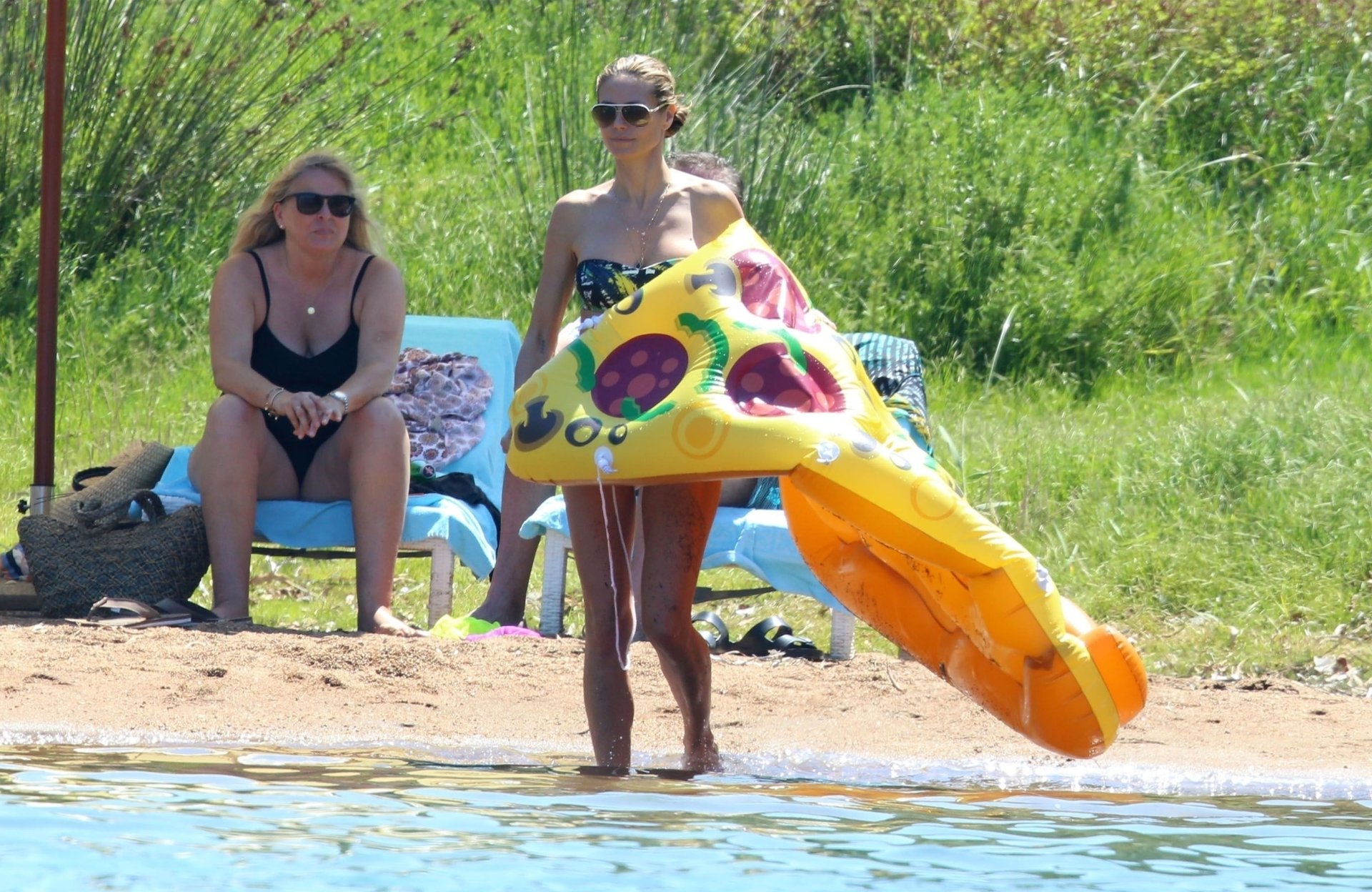 Heidi insieme ai suoi genitori e figli ha trascorso una giornata in spiaggia trascinando un enorme gonfiabile a forma di pizza mentre si rilassava sotto il caldo sole.