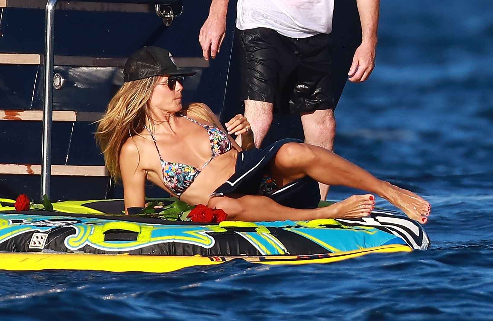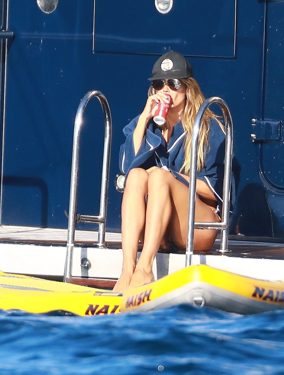 Heidi Klum e Vito Schnabel con i loro amici in crociera lungo la Costa della Riviera, hanno fermato il loro yacht a Cap d’Antibes, Francia, 28/07/2017. Heidi Klum è una modella, star della TV, designer, produttrice, donna d’affari, attrice. Età: 44.
