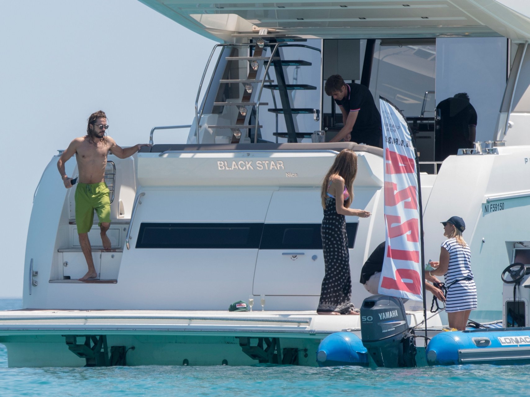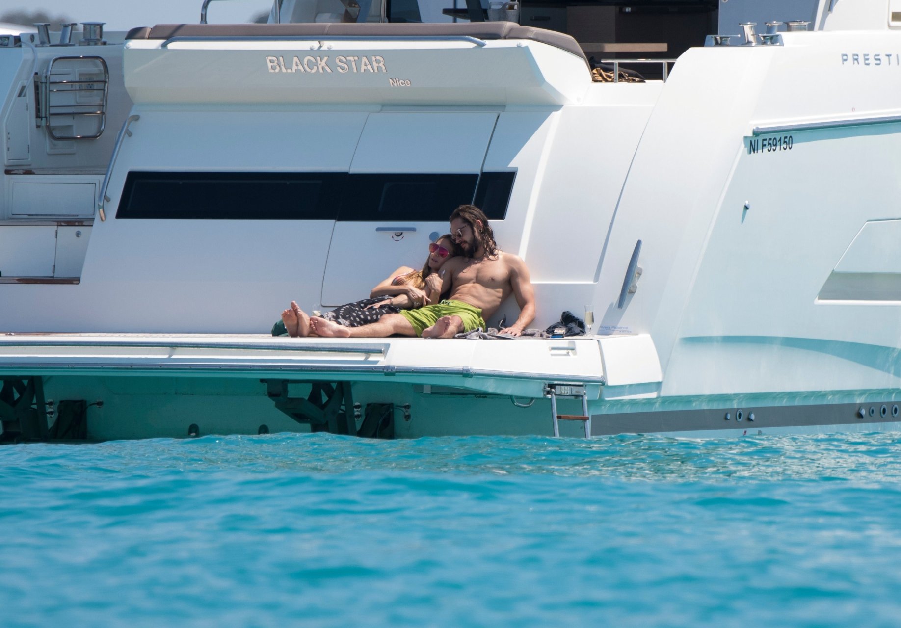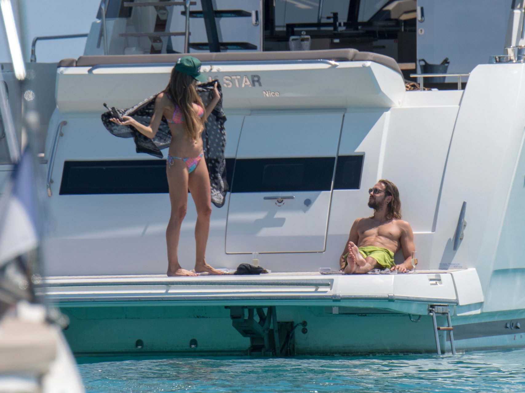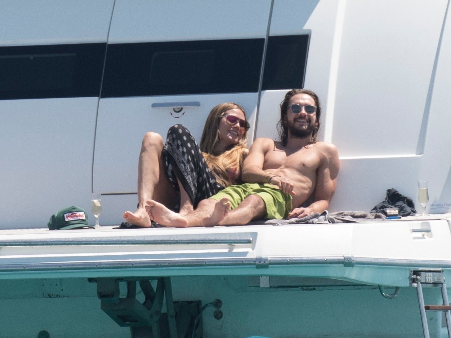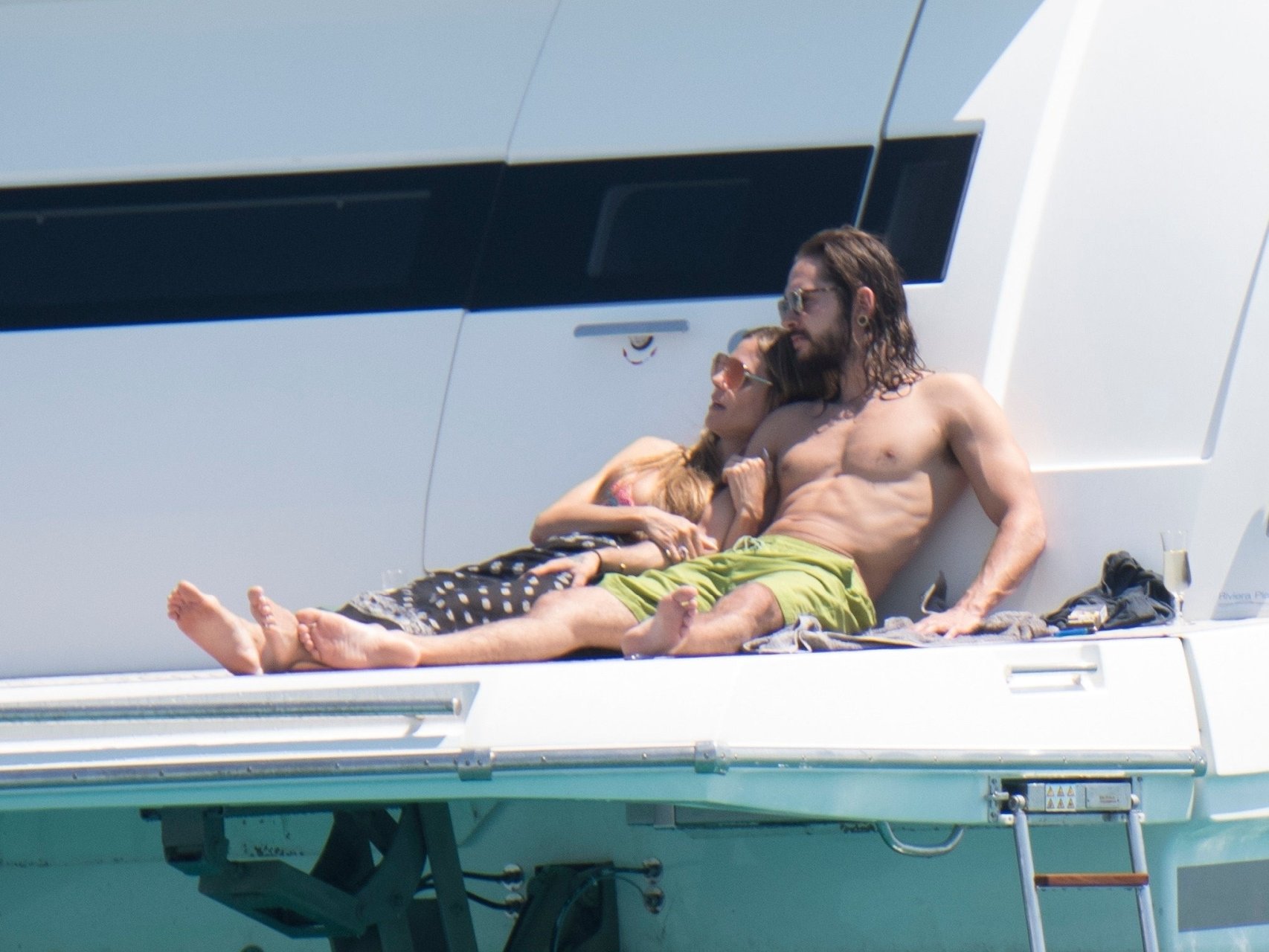 German supermodel, TV presonality Heidi Klum, 44, e il suo nuovo fidanzato Tom Kaulitz ordinano una pizza su una barca a Cannes, 19/05/2018. La coppia innamorata si è baciata mentre si rilassava al sole.