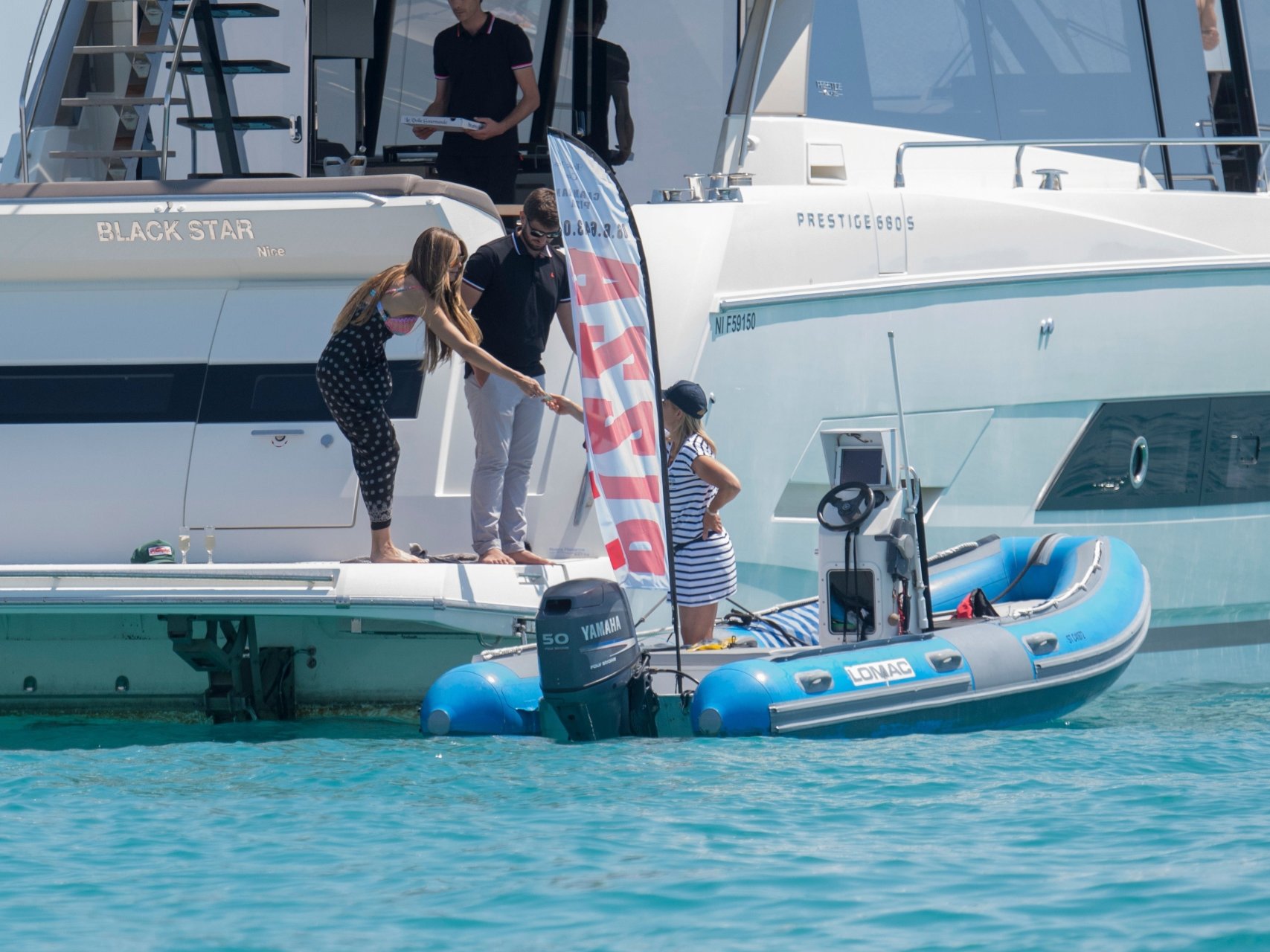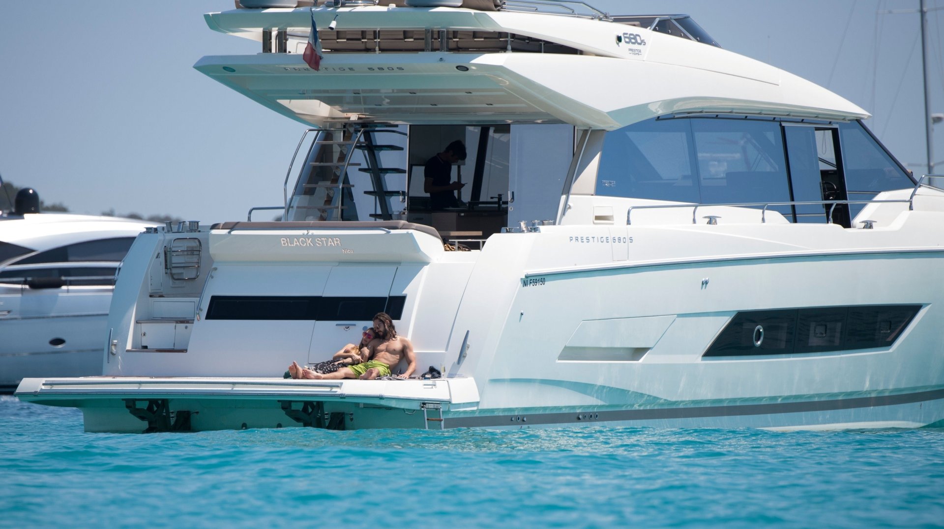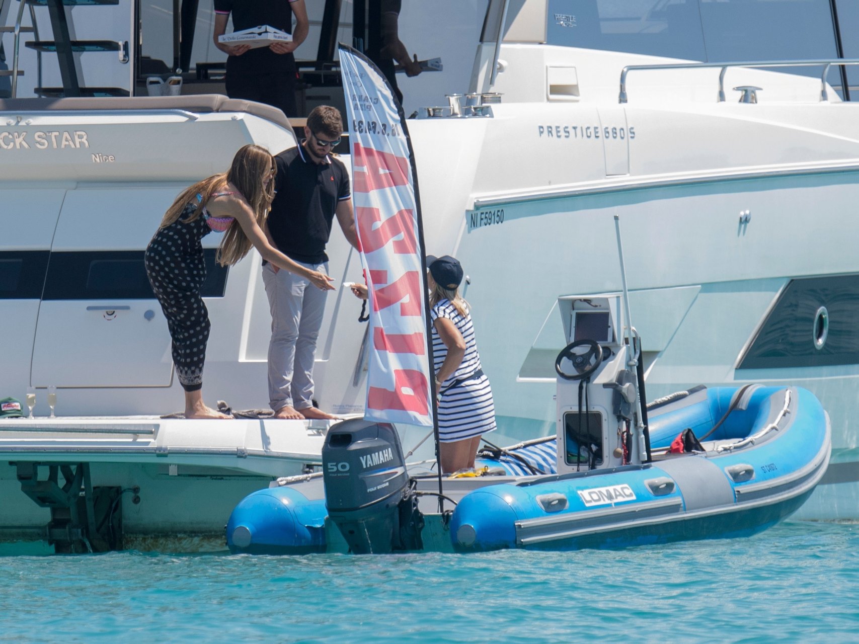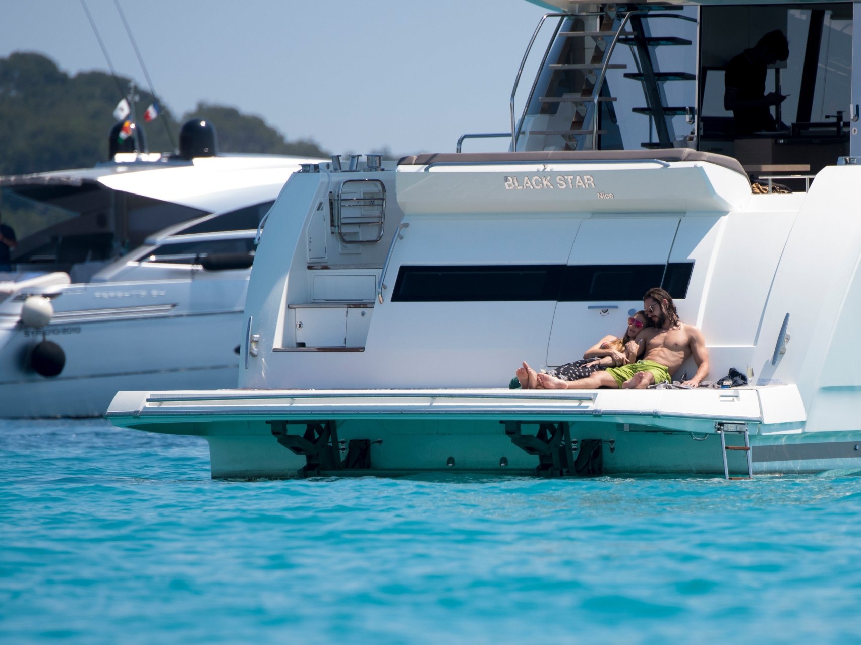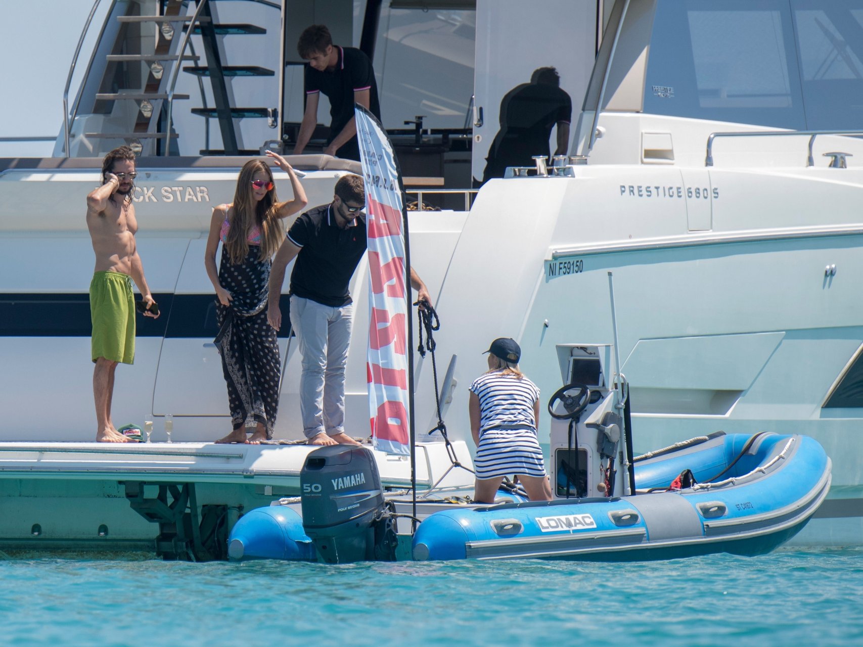German supermodel, TV presonality Heidi Klum, 44, e il suo nuovo fidanzato Tom Kaulitz ordinano una pizza su una barca a Cannes, 19/05/2018. La coppia innamorata si è baciata mentre si rilassava al sole.