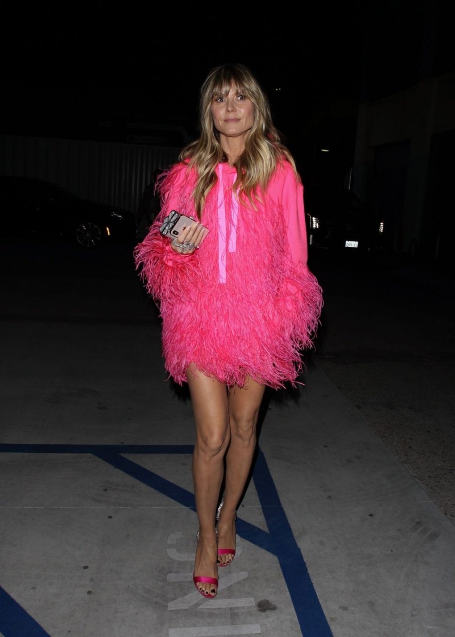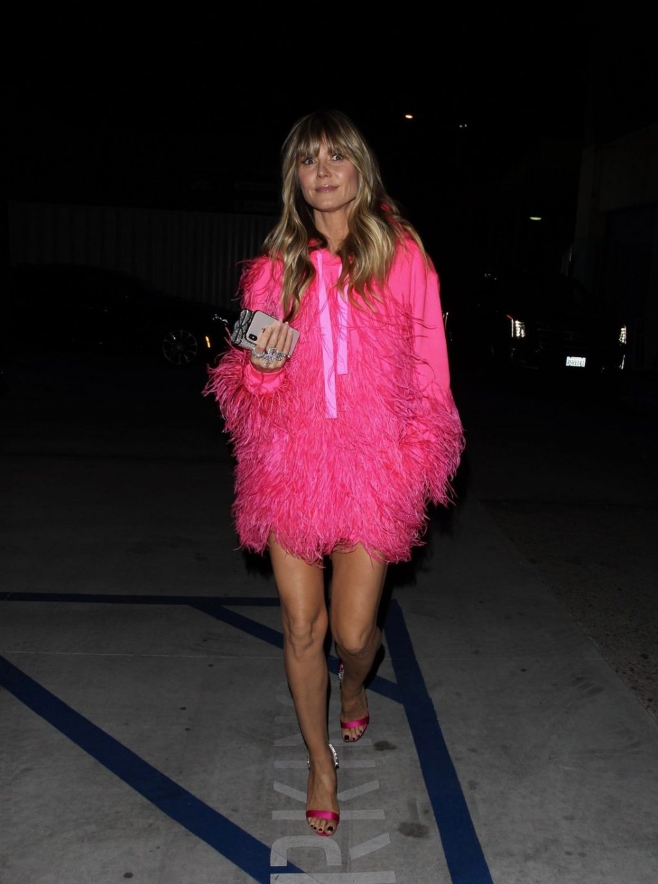 Heidi Klum è stata vista uscire dall’evento “The Power Puff Girls” a DTLA, apparendo carina con una felpa rosa soffice e tacchi.