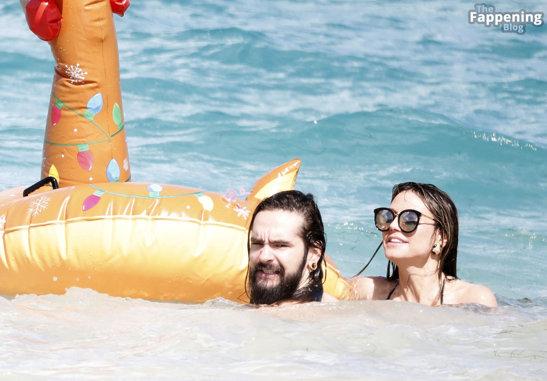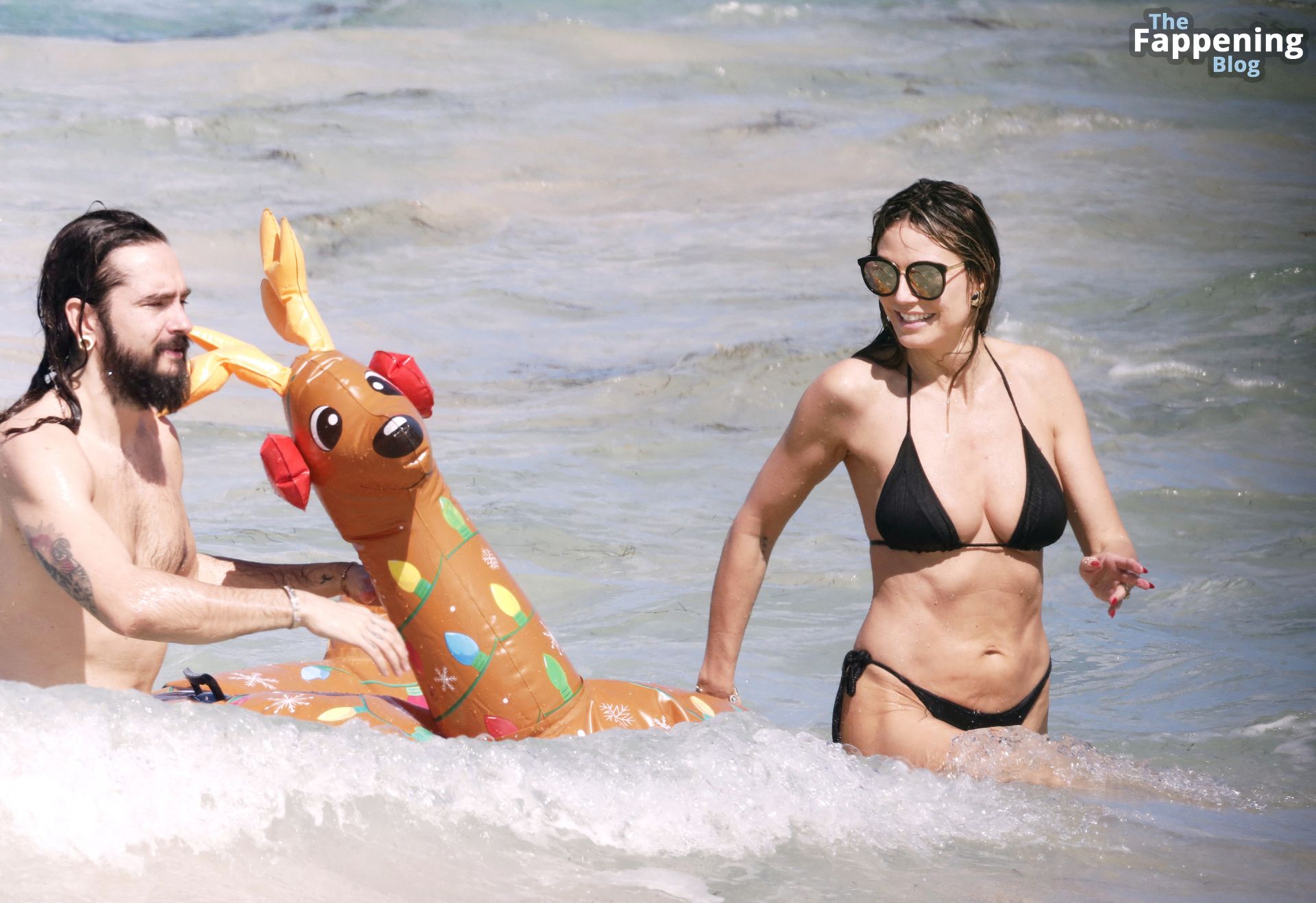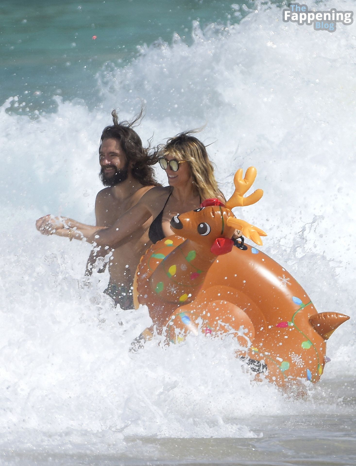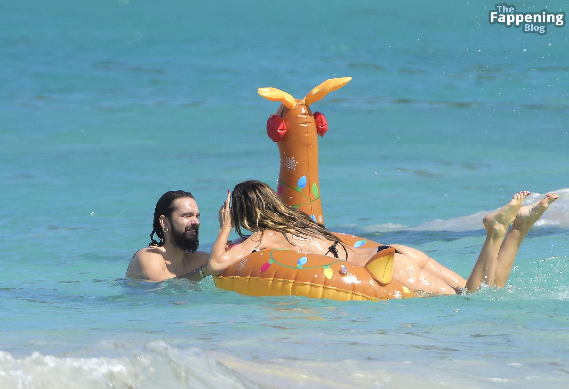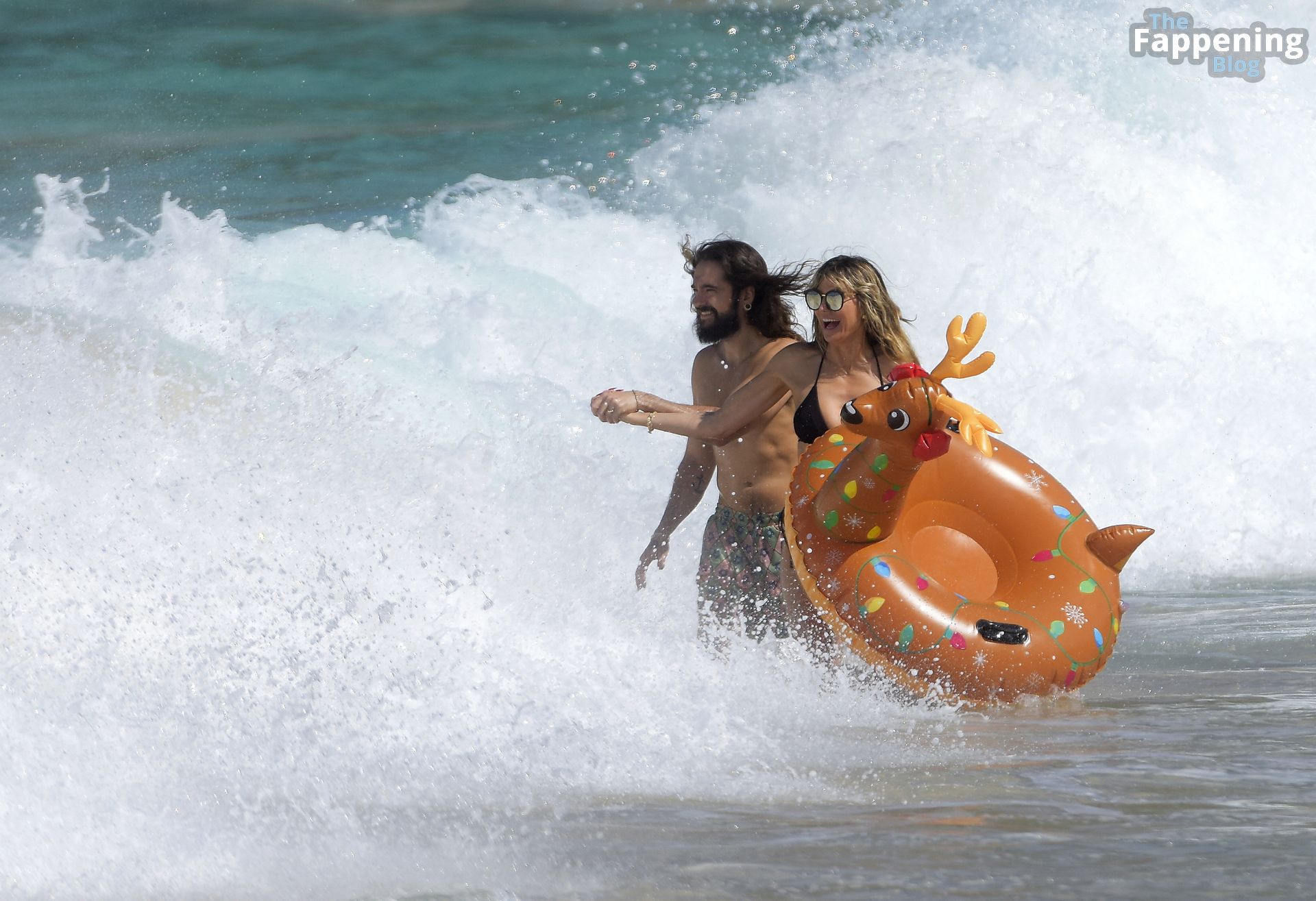La conduttrice di America’s Got Talent ha fatto sognare con un minuscolo bikini nero mentre lei e il rocker dei Tokio Hotel si scambiavano effusioni, baciandosi e tenendosi per mano, durante la loro pausa invernale a St Bart’s. Madre di quattro figli, Heidi si è divertita a spruzzare acqua sulle onde su una renna gonfiabile mentre l’attento Tom la guardava.