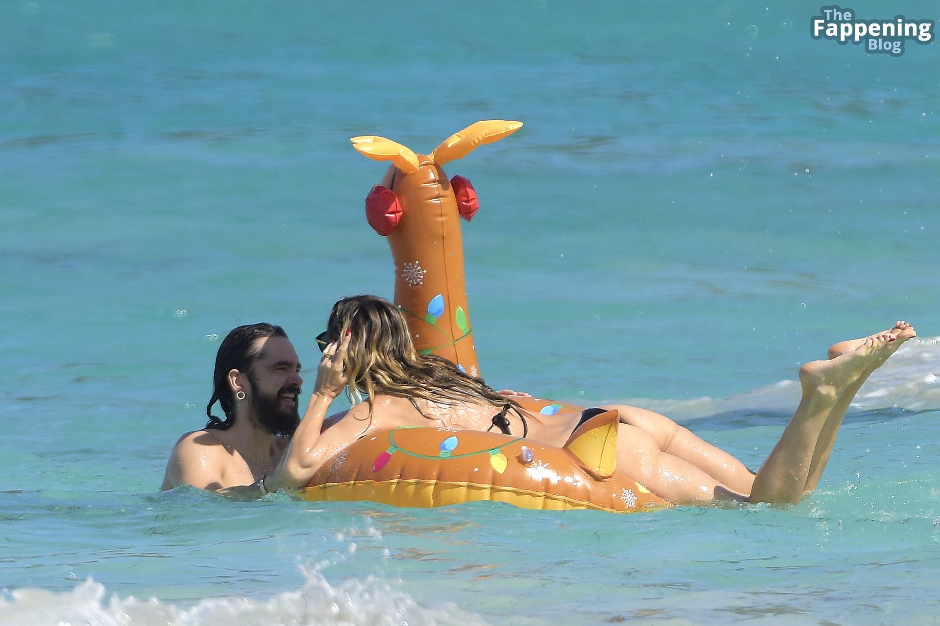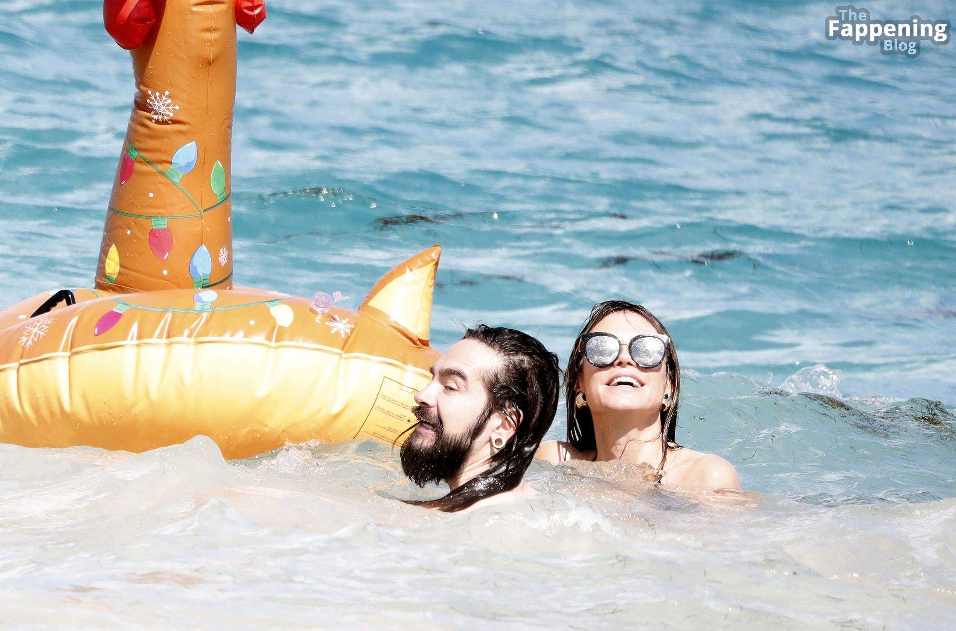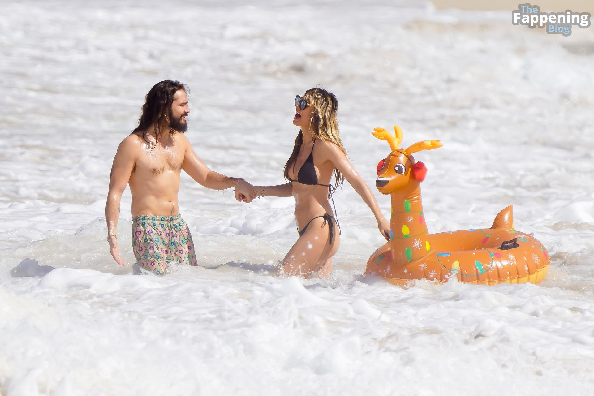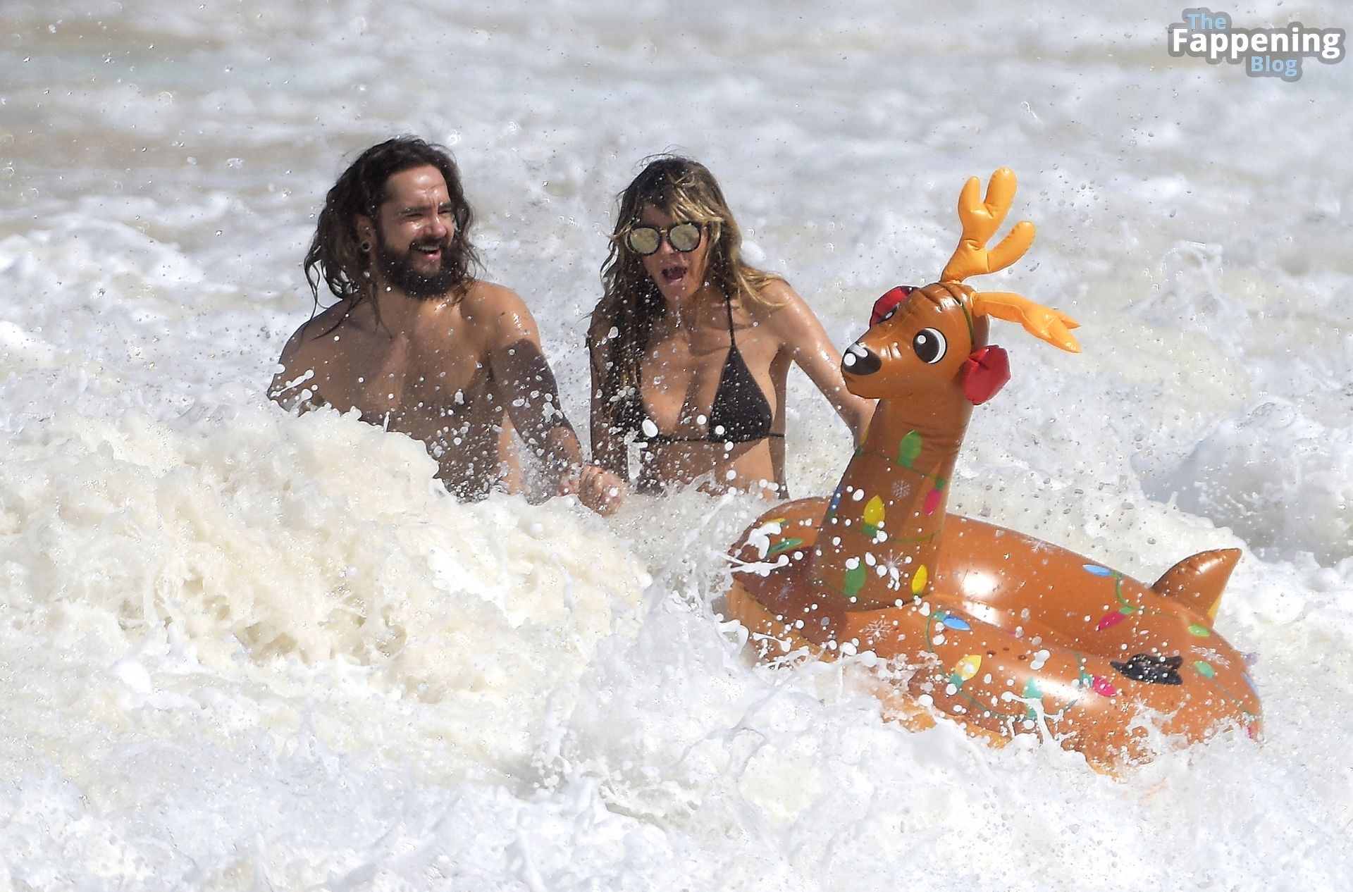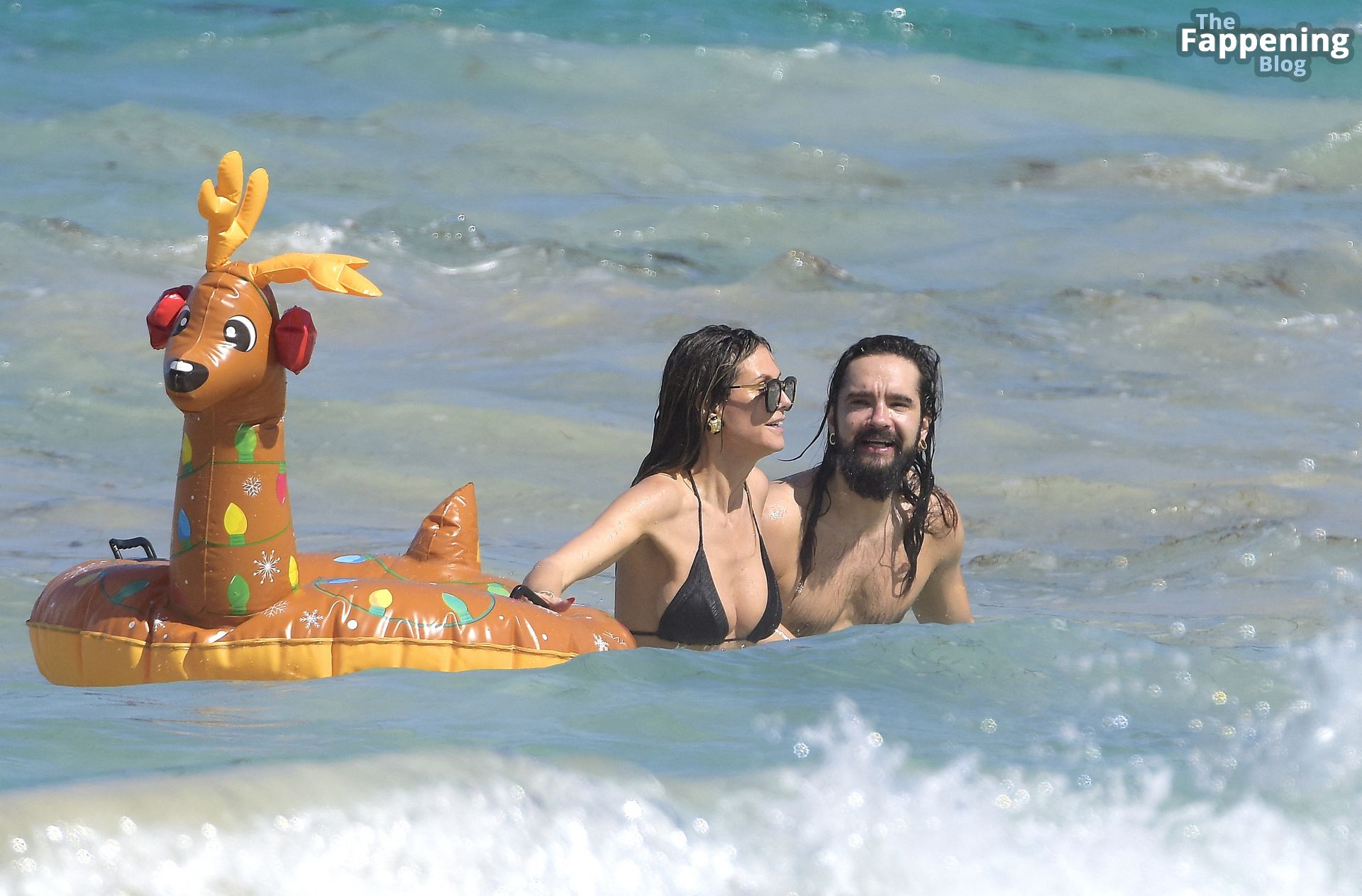 La conduttrice di America’s Got Talent ha fatto sognare con un minuscolo bikini nero mentre lei e il rocker dei Tokio Hotel si scambiavano effusioni, baciandosi e tenendosi per mano, durante la loro pausa invernale a St Bart’s. Madre di quattro figli, Heidi si è divertita a spruzzare acqua sulle onde su una renna gonfiabile mentre l’attento Tom la guardava.
