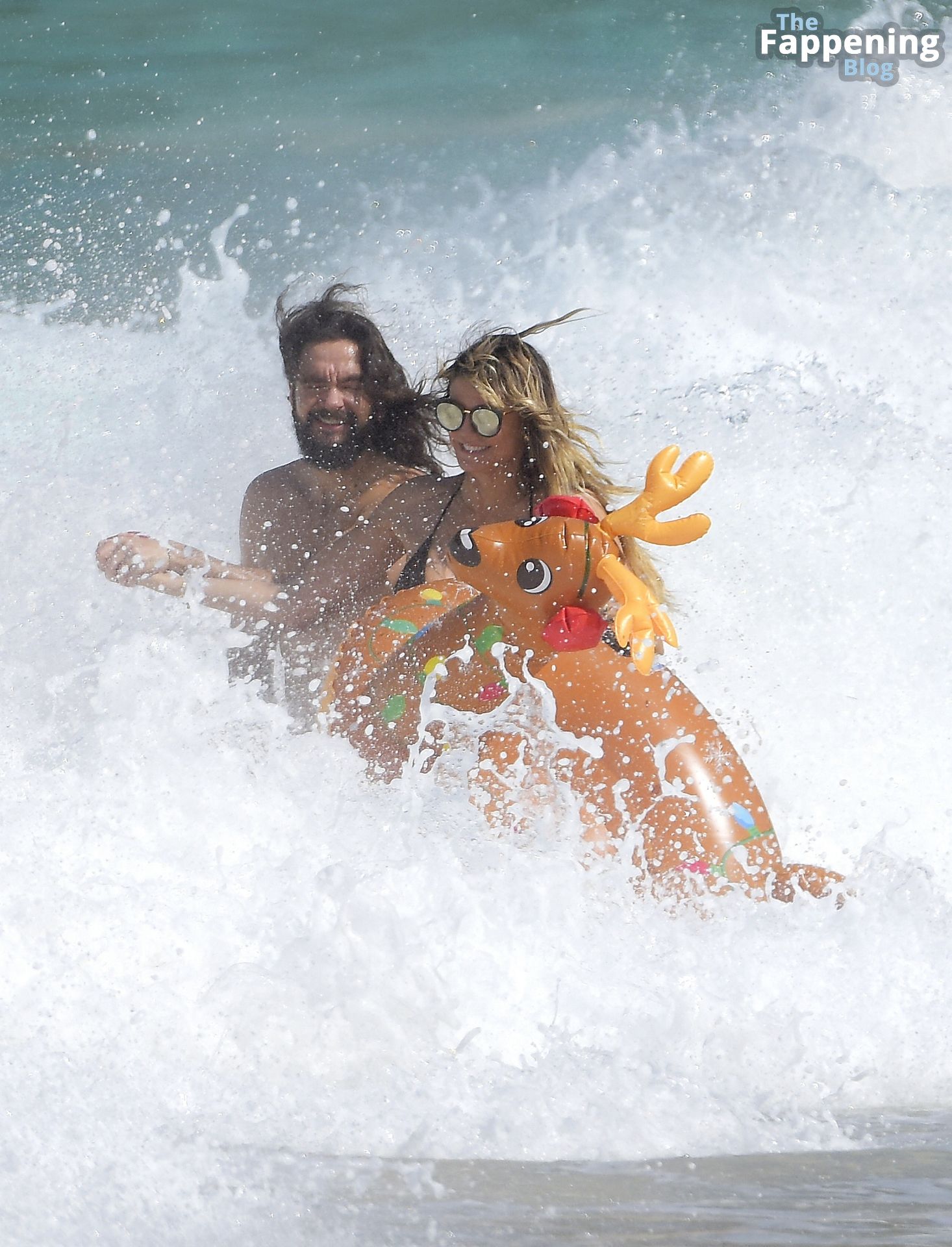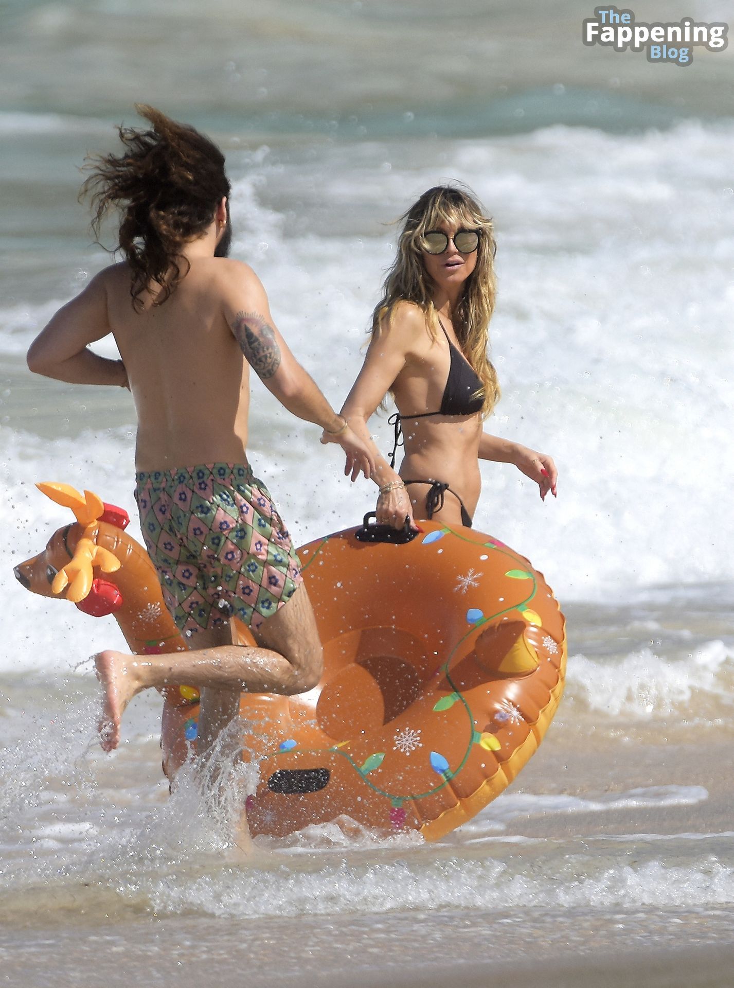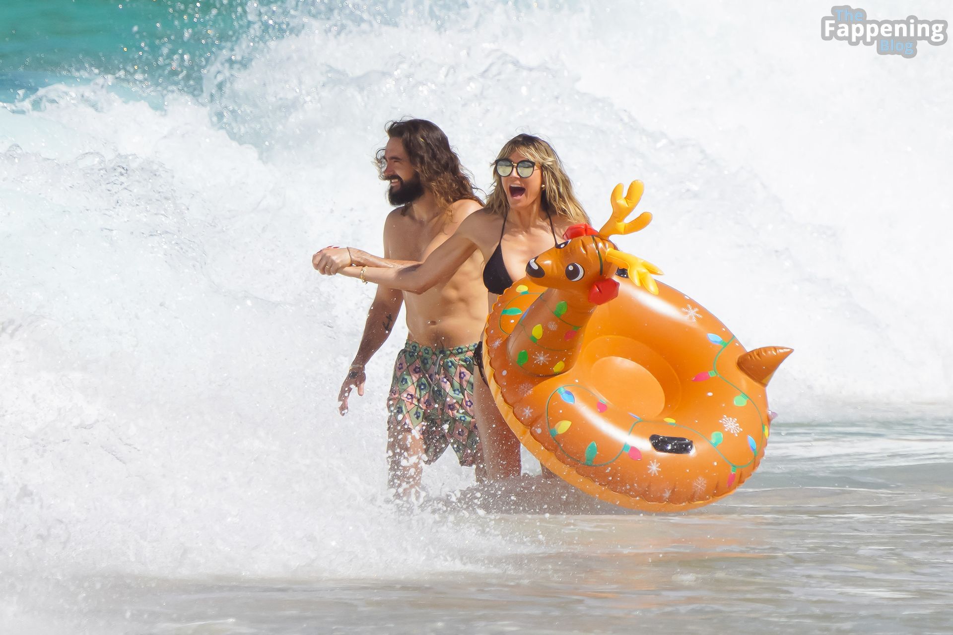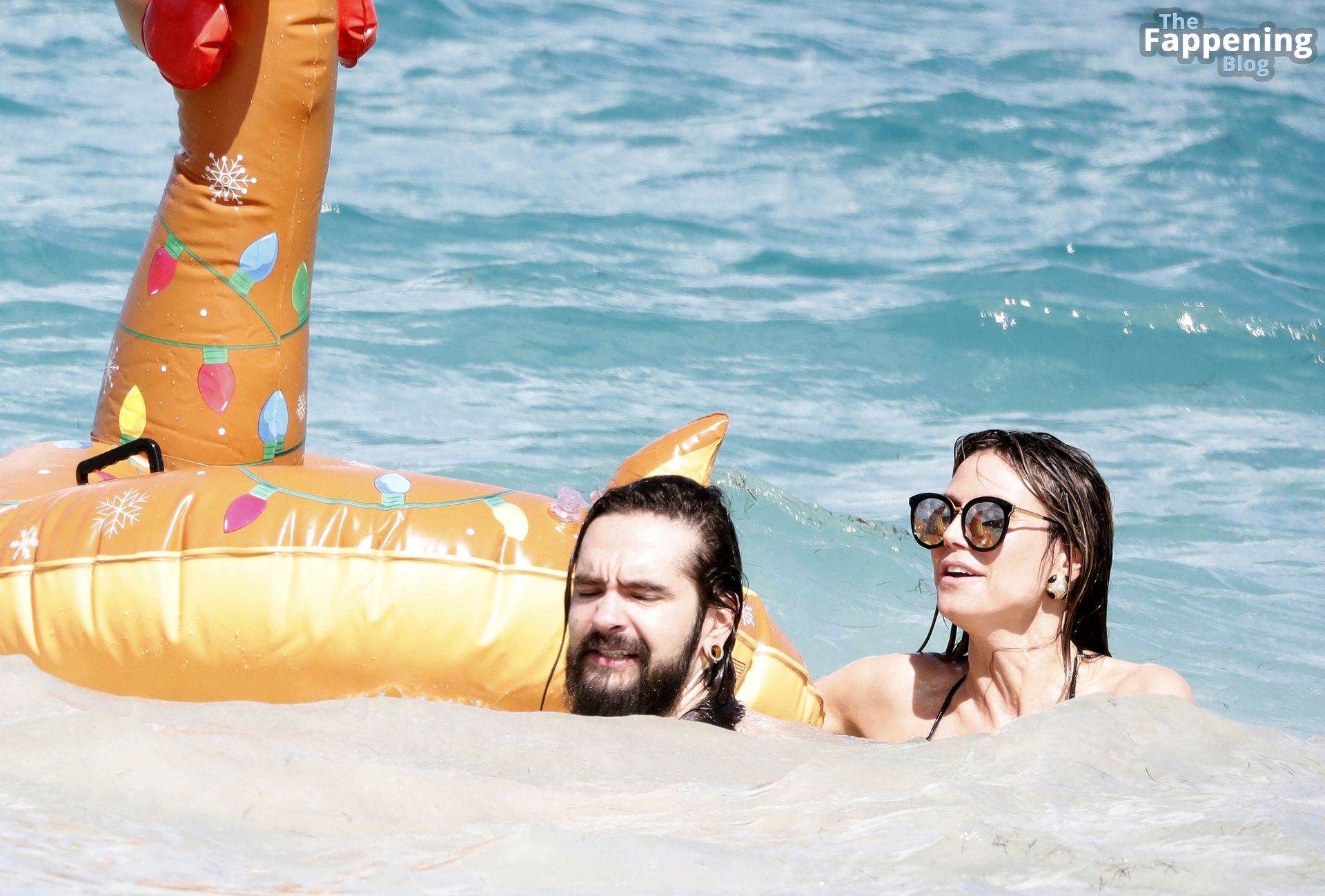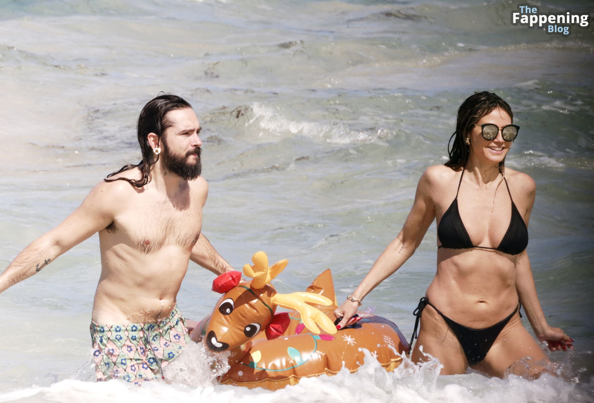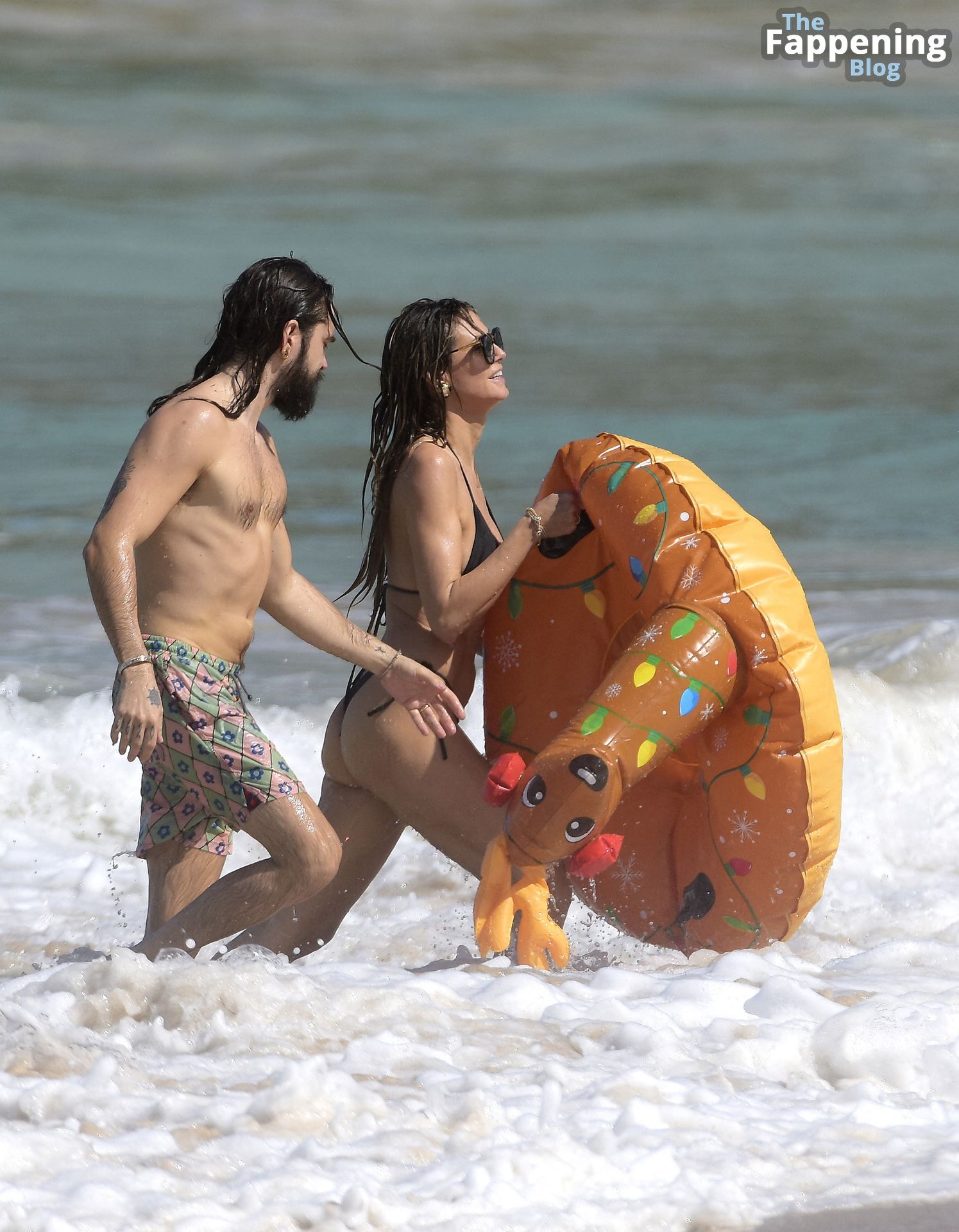 La conduttrice di America’s Got Talent ha fatto sognare con un minuscolo bikini nero mentre lei e il rocker dei Tokio Hotel si scambiavano effusioni, baciandosi e tenendosi per mano, durante la loro pausa invernale a St Bart’s. Madre di quattro figli, Heidi si è divertita a spruzzare acqua sulle onde su una renna gonfiabile mentre l’attento Tom la guardava.