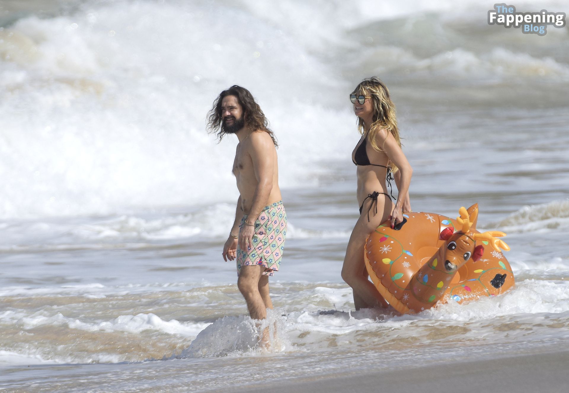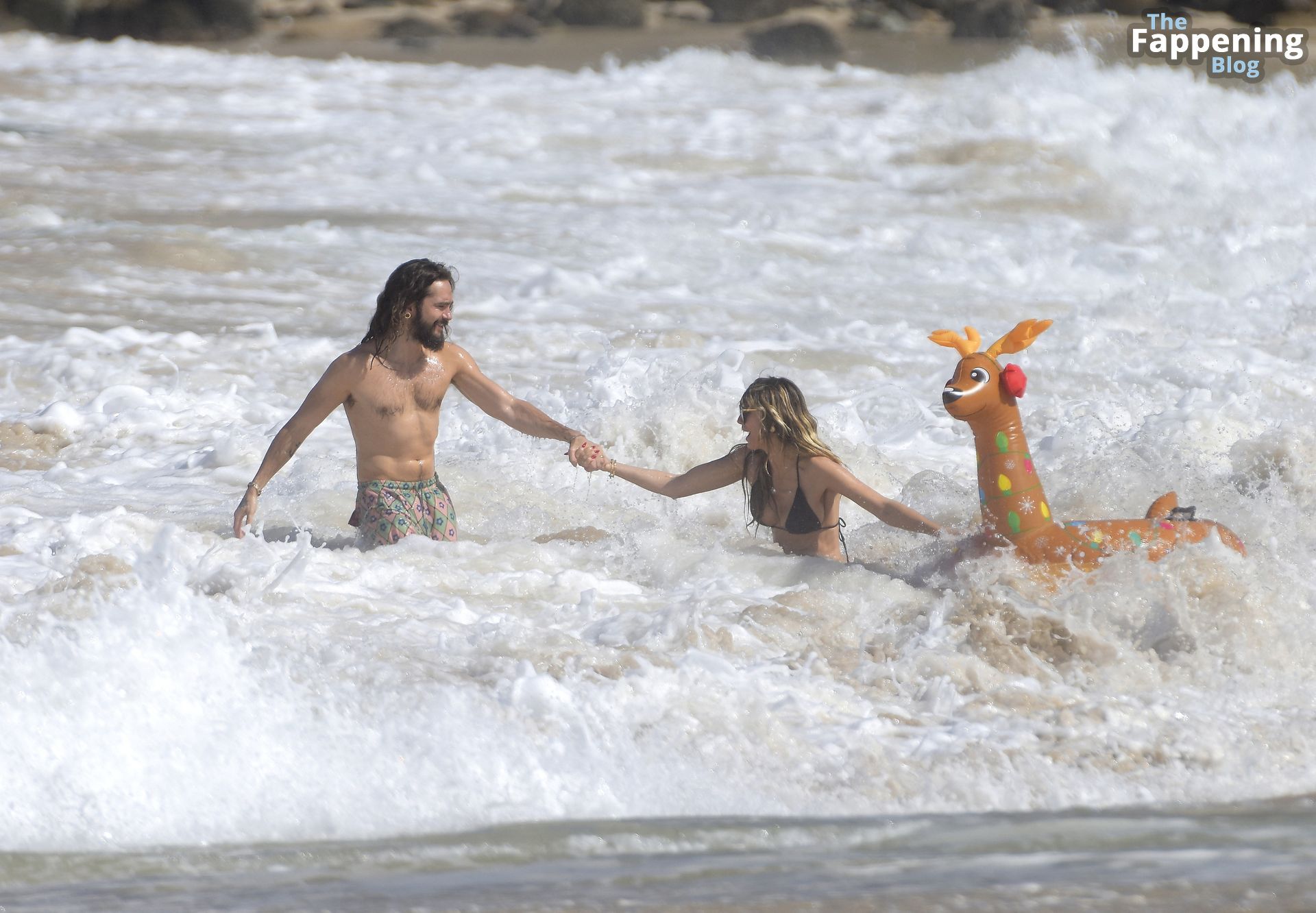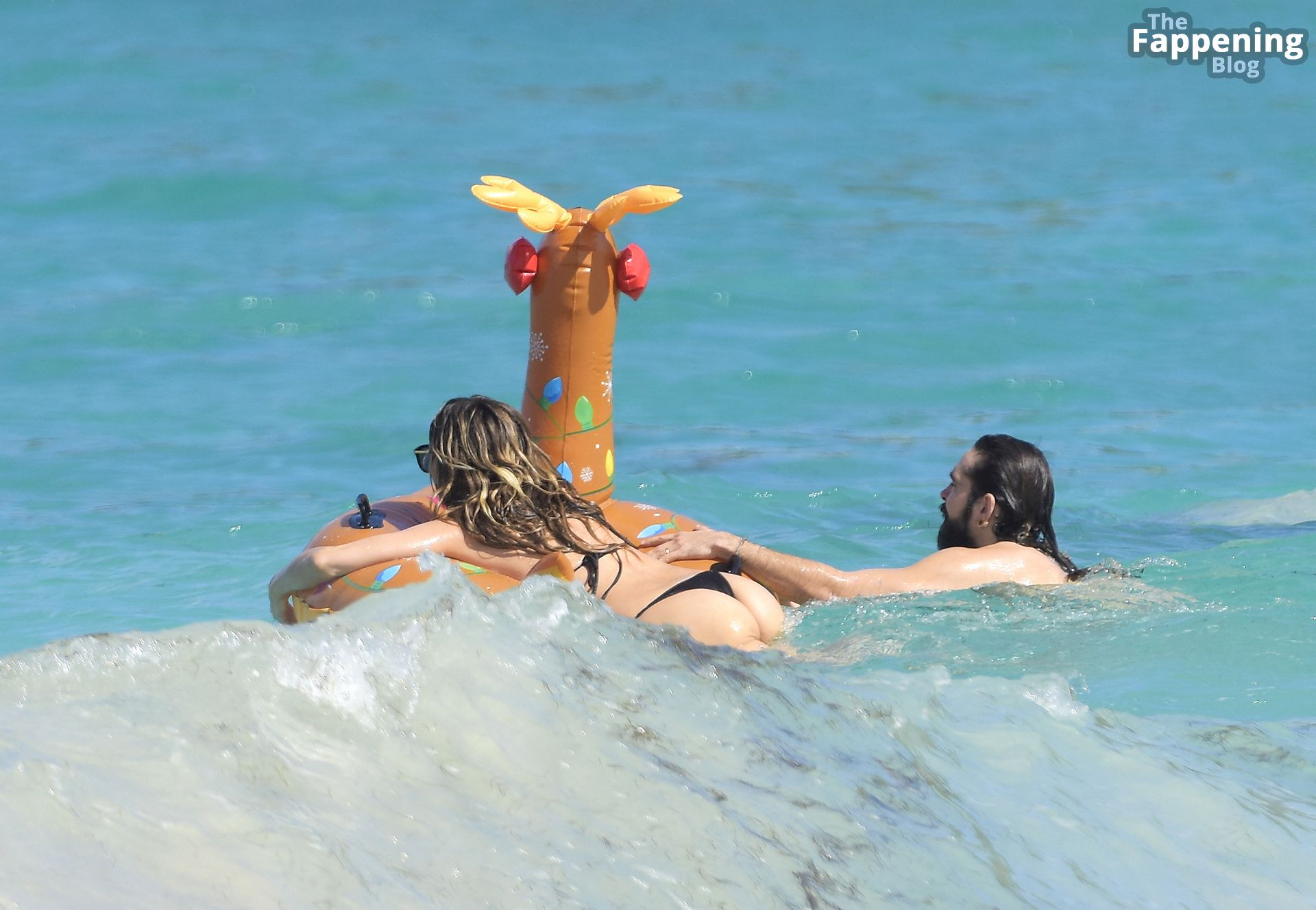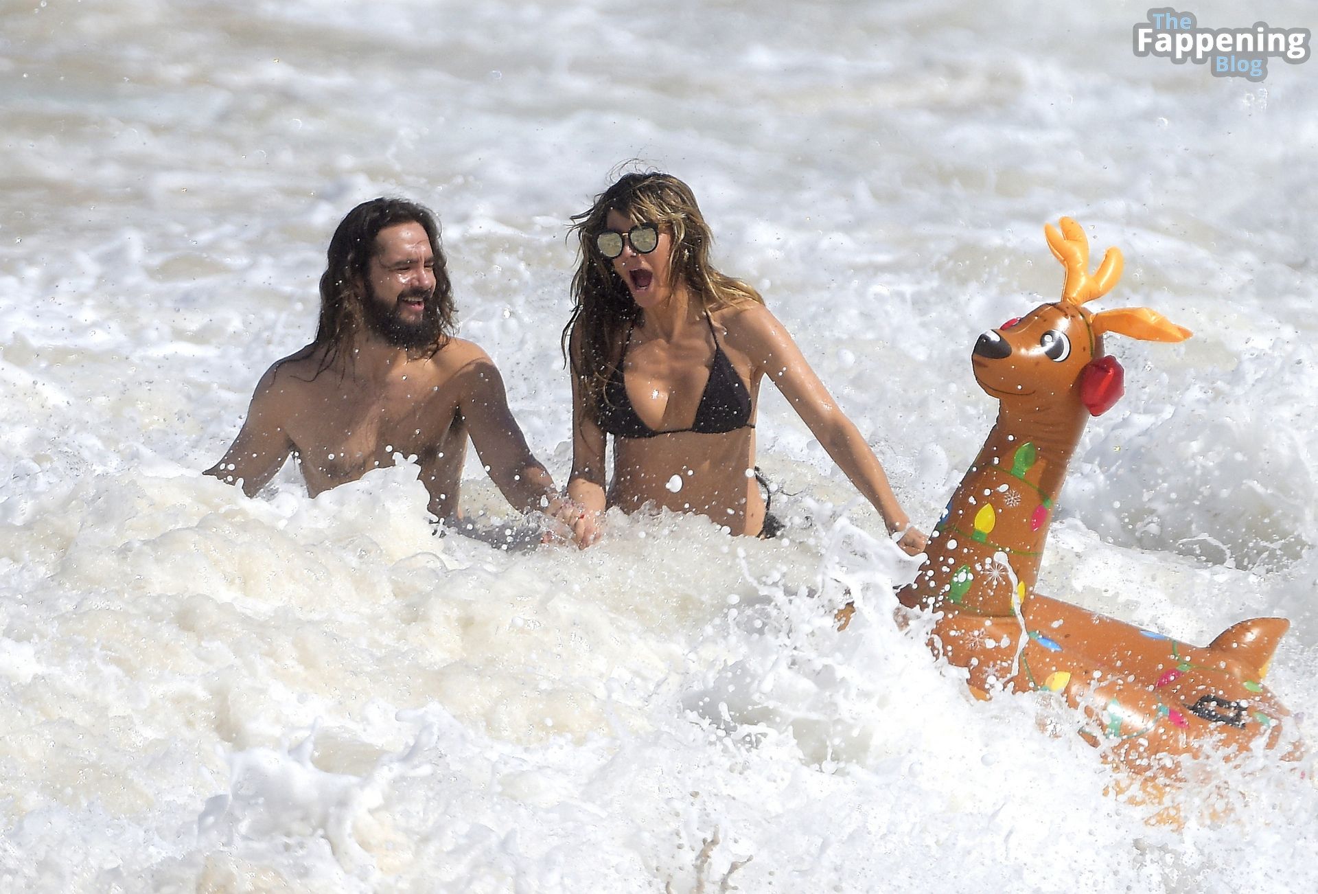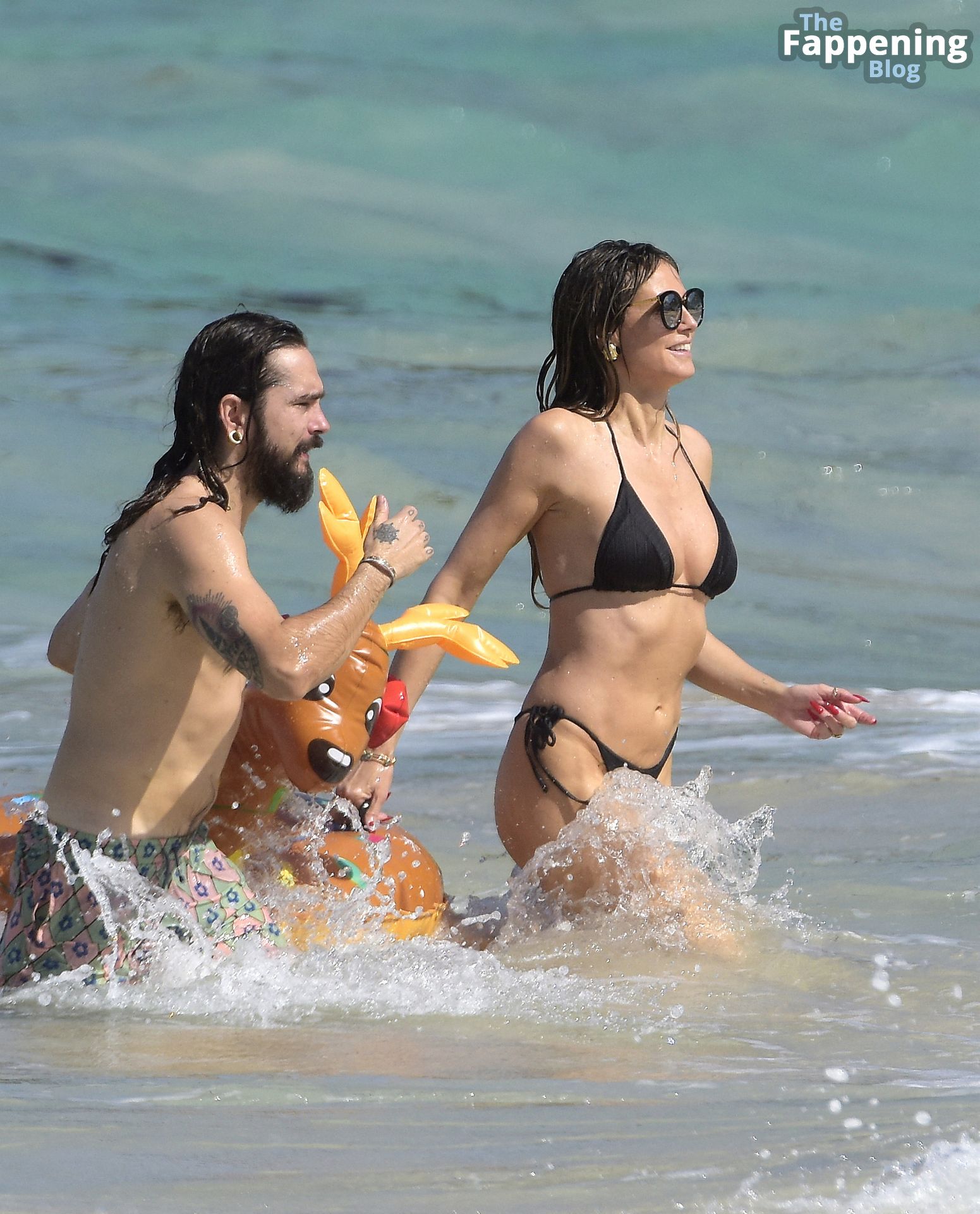 La conduttrice di America’s Got Talent ha fatto sognare con un minuscolo bikini nero mentre lei e il rocker dei Tokio Hotel si scambiavano effusioni, baciandosi e tenendosi per mano, durante la loro pausa invernale a St Bart’s. Madre di quattro figli, Heidi si è divertita a spruzzare acqua sulle onde su una renna gonfiabile mentre l’attento Tom la guardava.