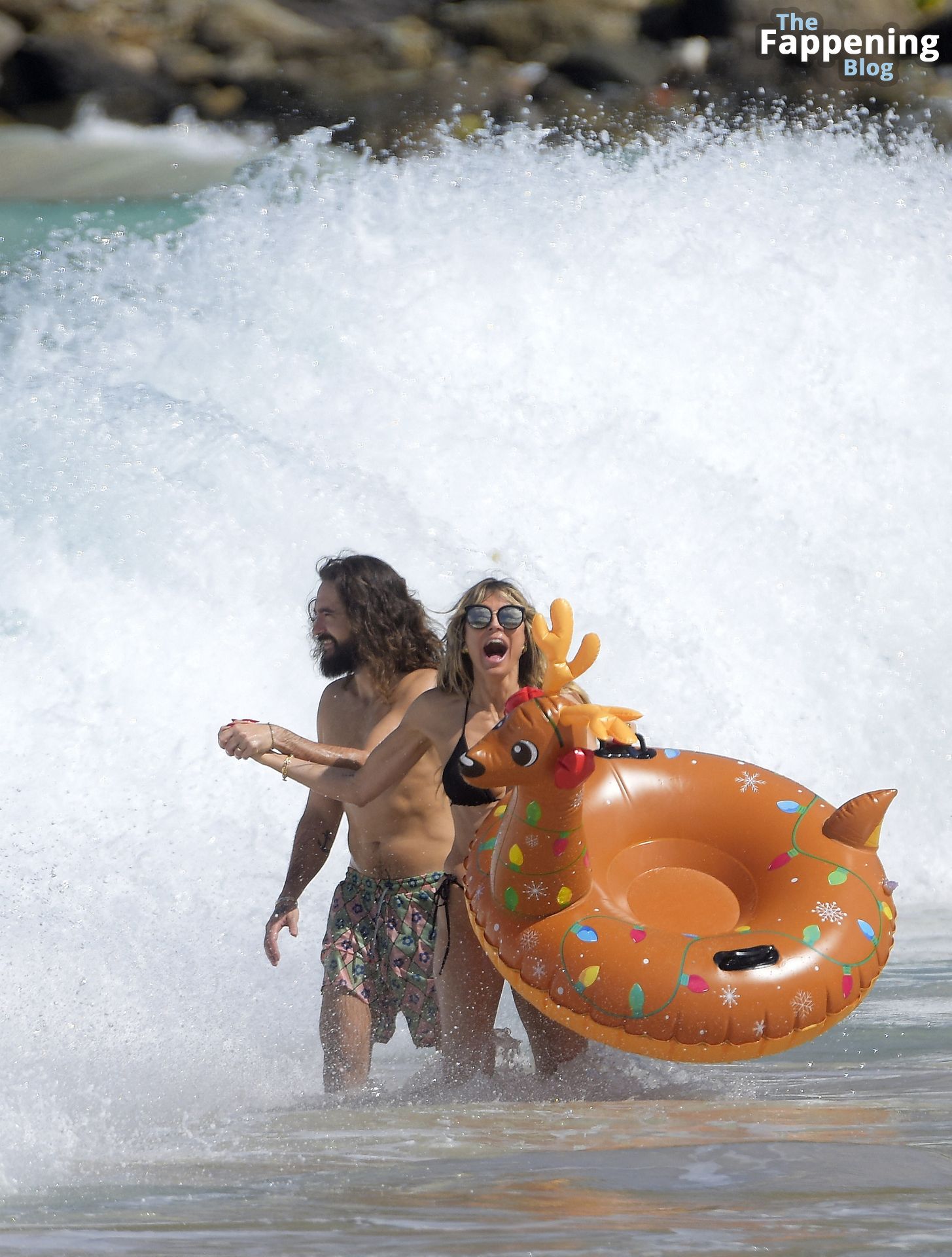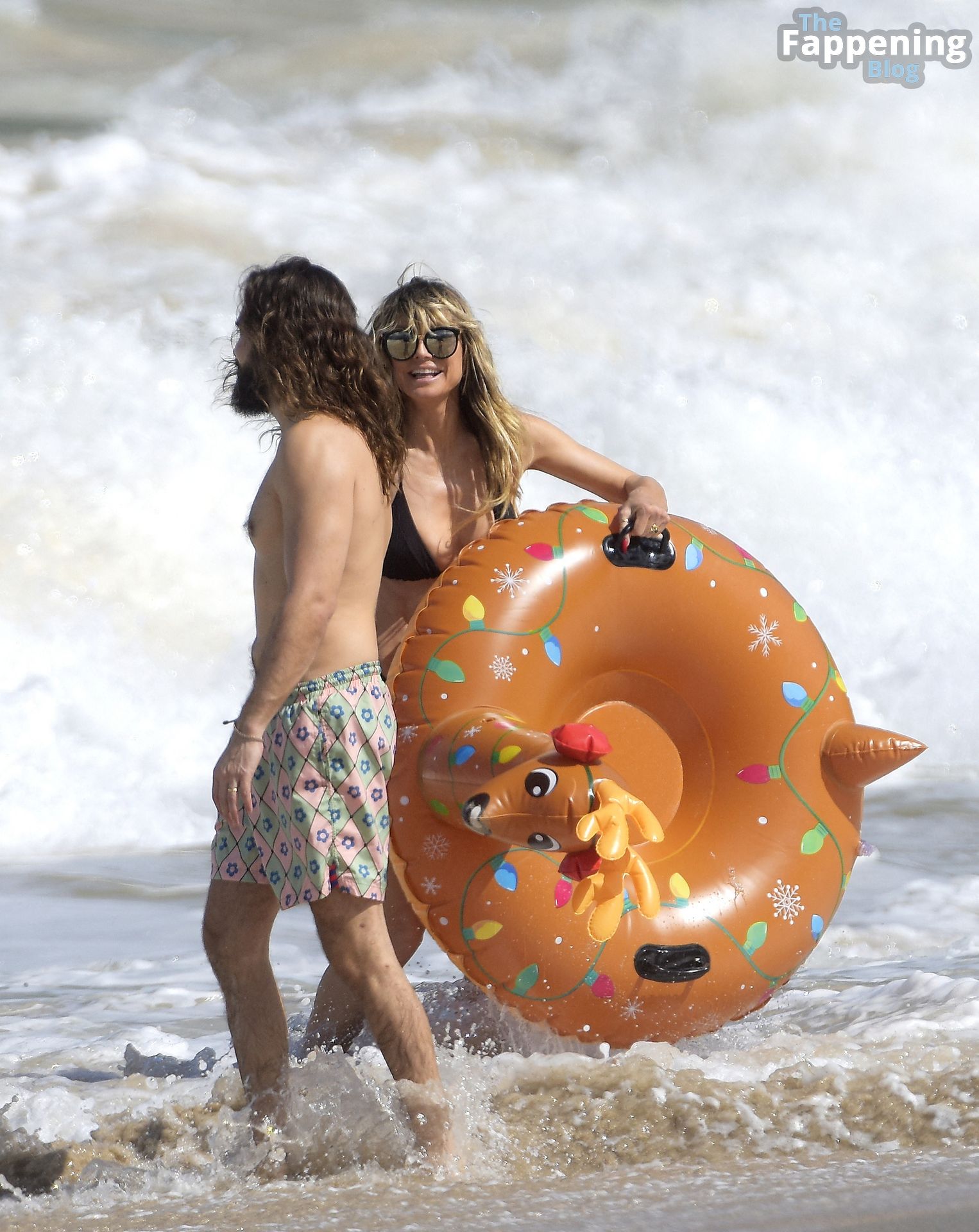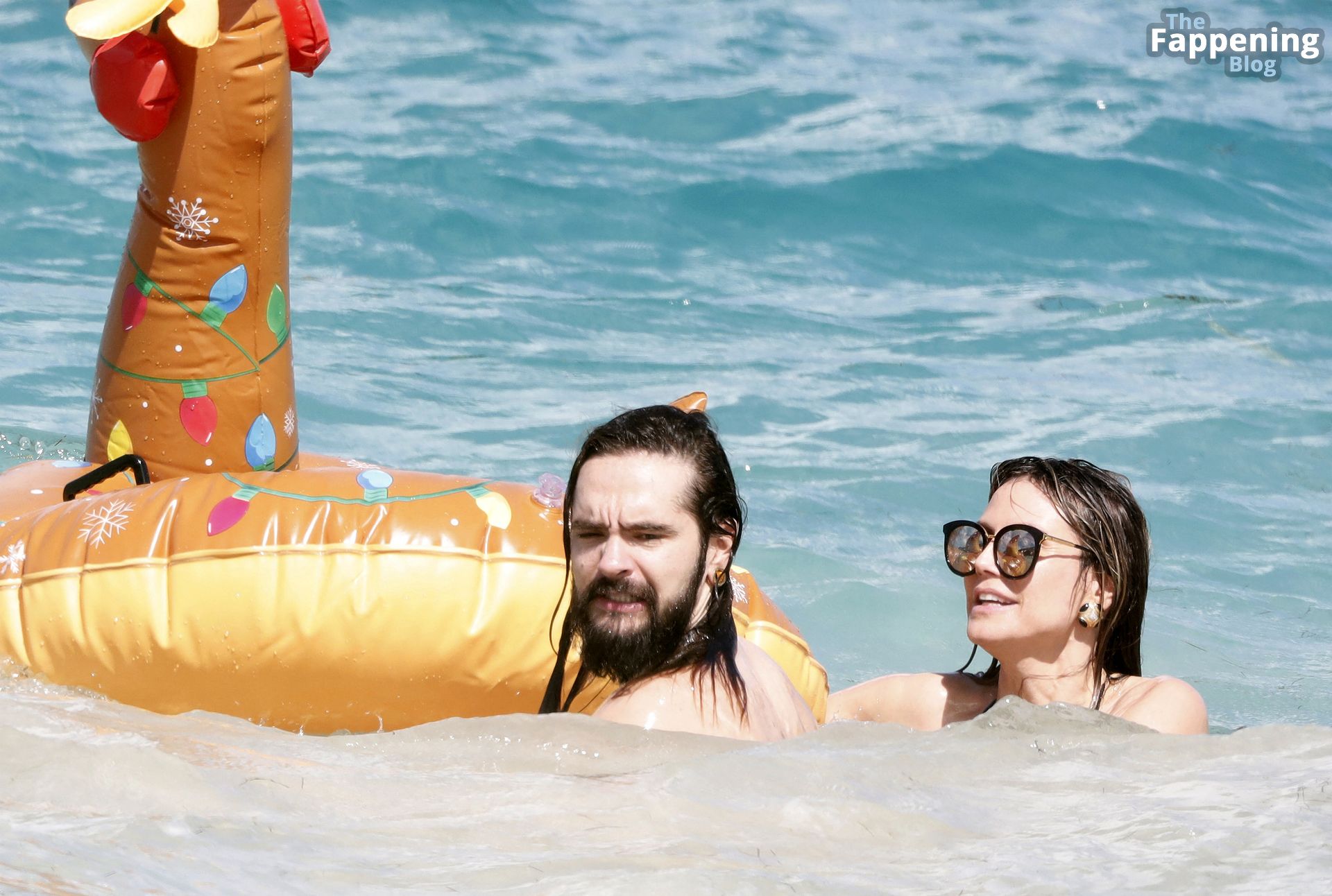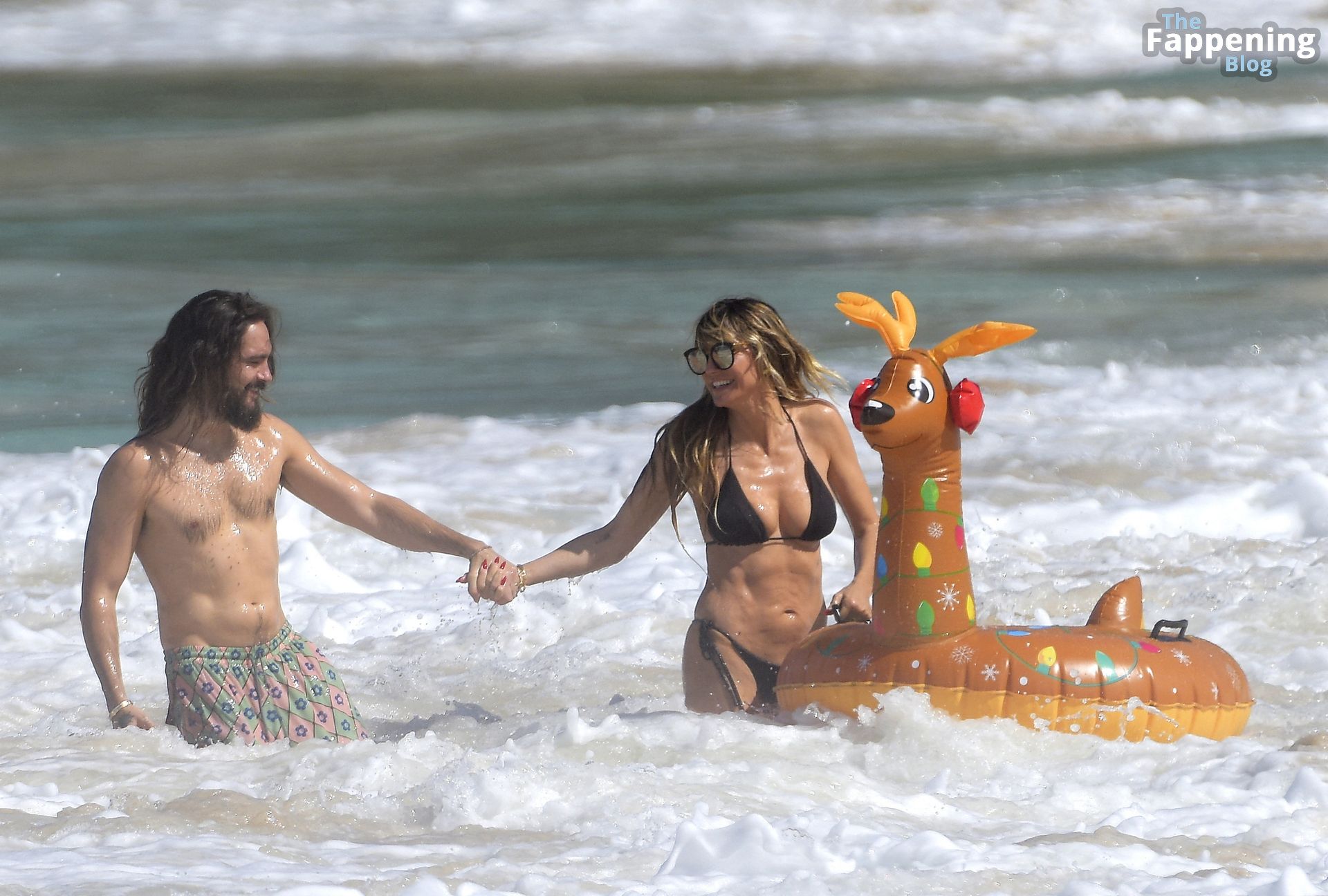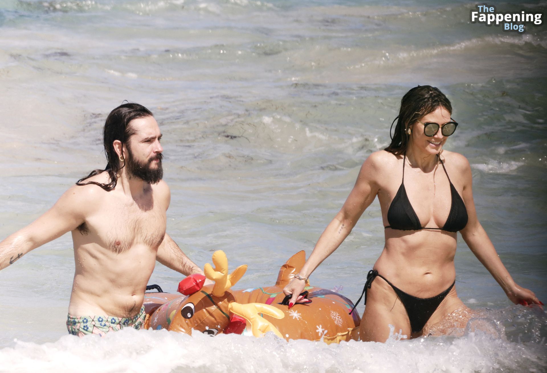 La conduttrice di America’s Got Talent ha fatto sognare con un minuscolo bikini nero mentre lei e il rocker dei Tokio Hotel si scambiavano effusioni, baciandosi e tenendosi per mano, durante la loro pausa invernale a St Bart’s. Madre di quattro figli, Heidi si è divertita a spruzzare acqua sulle onde su una renna gonfiabile mentre l’attento Tom la guardava.