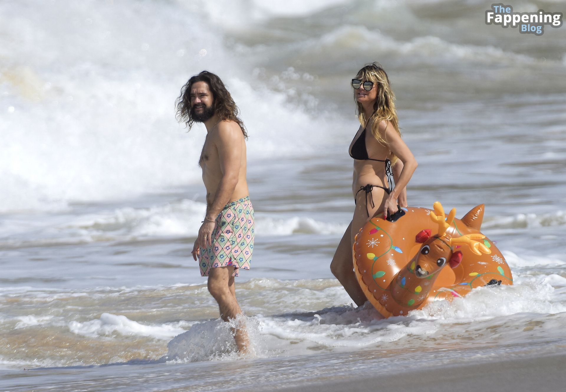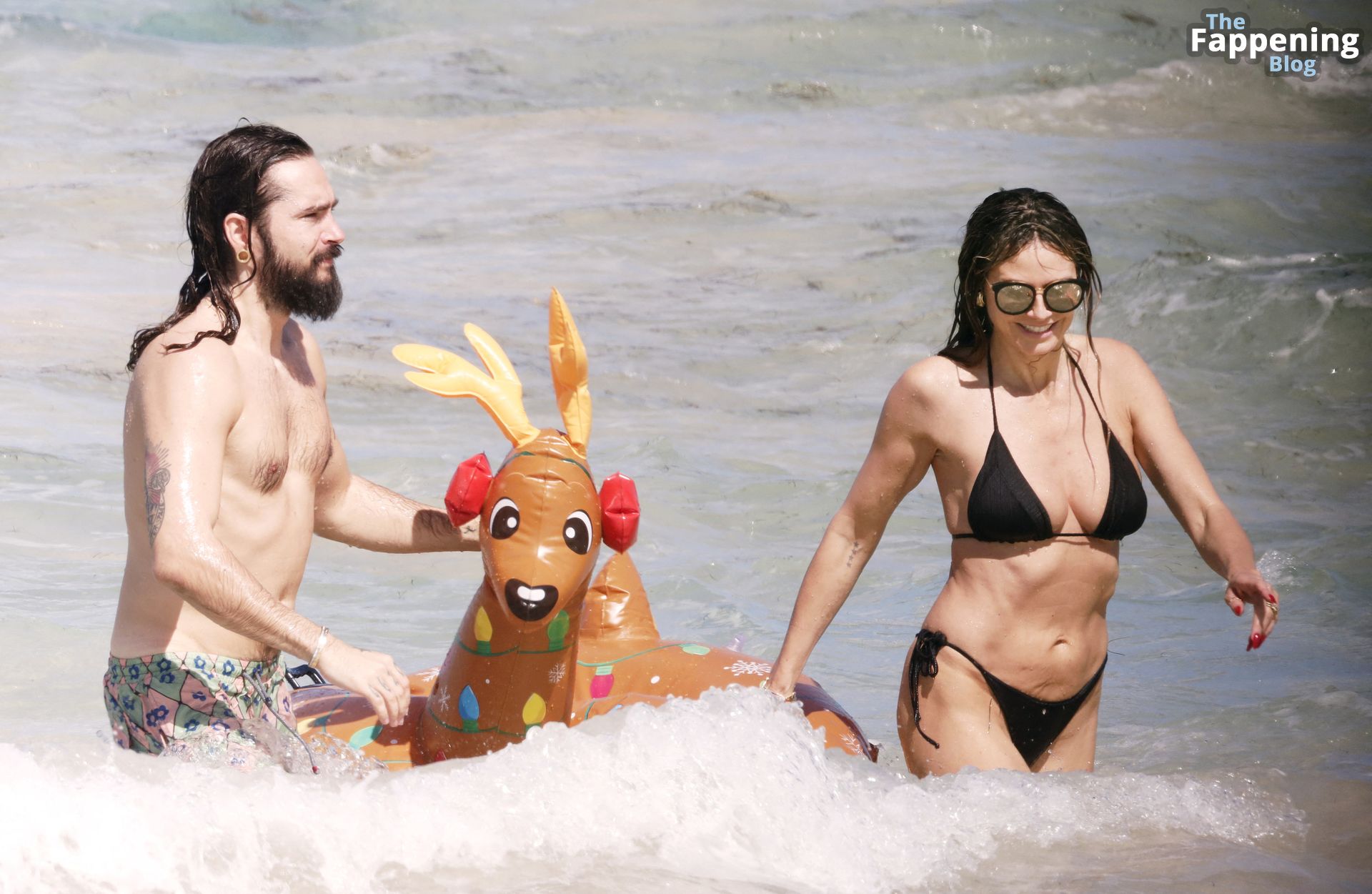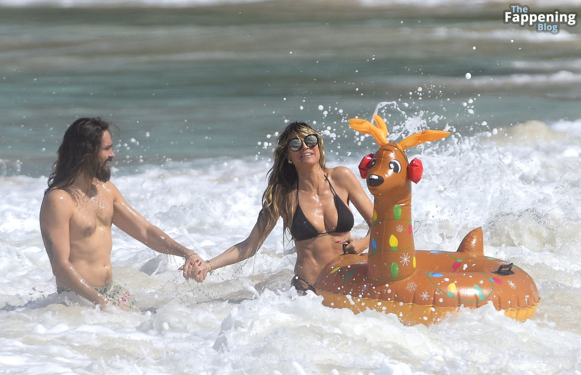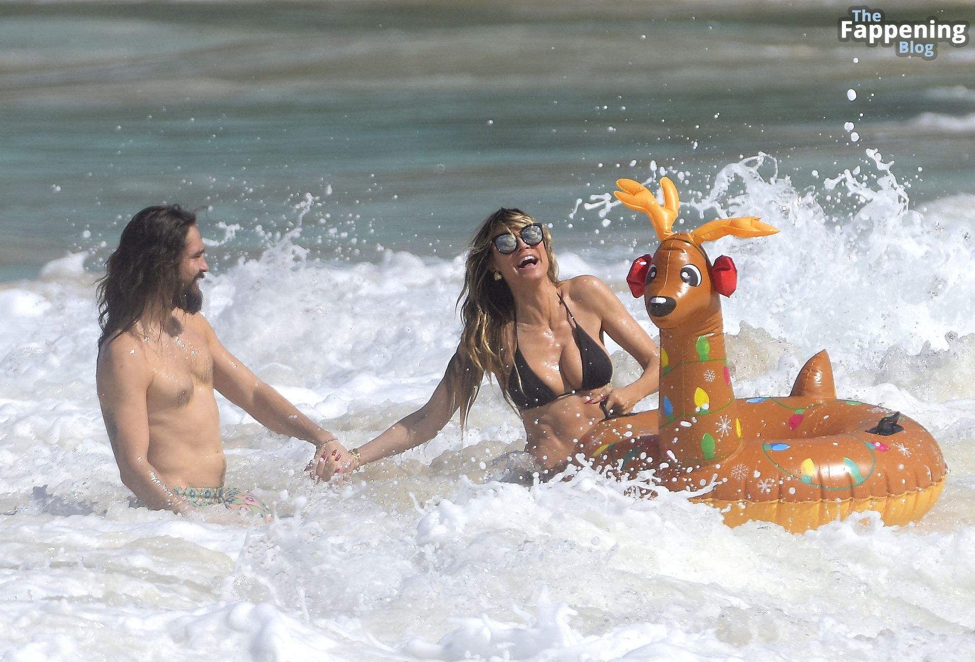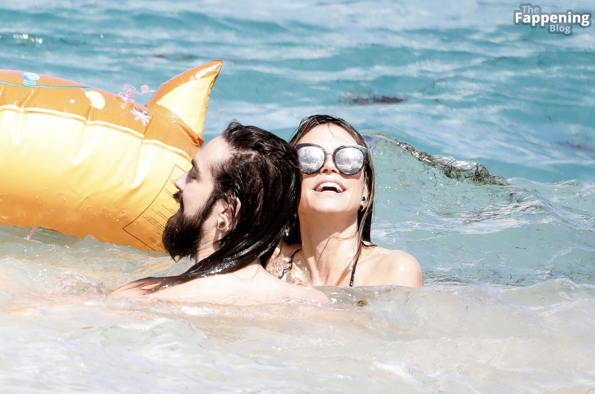 La conduttrice di America’s Got Talent ha fatto sognare con un minuscolo bikini nero mentre lei e il rocker dei Tokio Hotel si scambiavano effusioni, baciandosi e tenendosi per mano, durante la loro pausa invernale a St Bart’s. Madre di quattro figli, Heidi si è divertita a spruzzare acqua sulle onde su una renna gonfiabile mentre l’attento Tom la guardava.