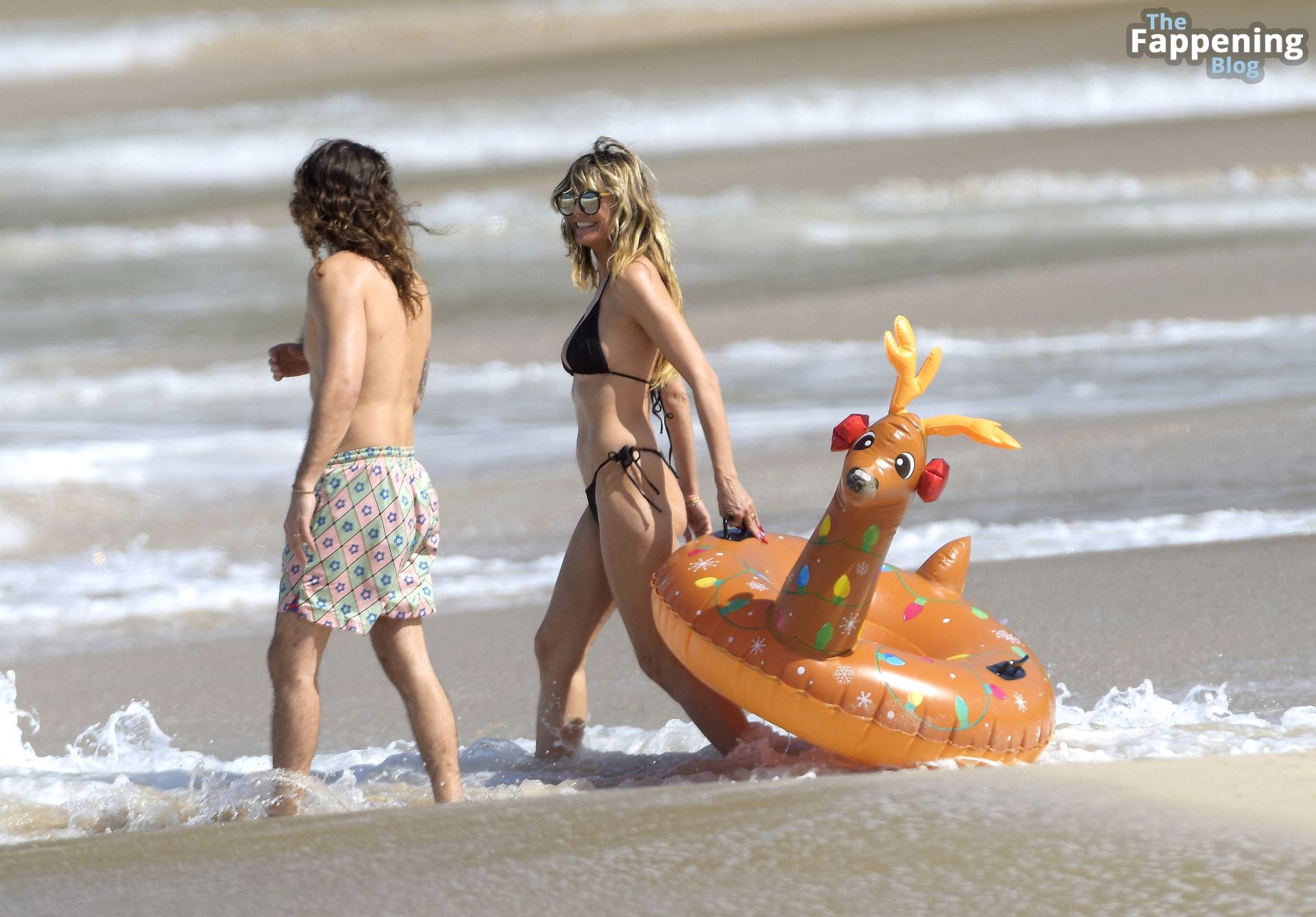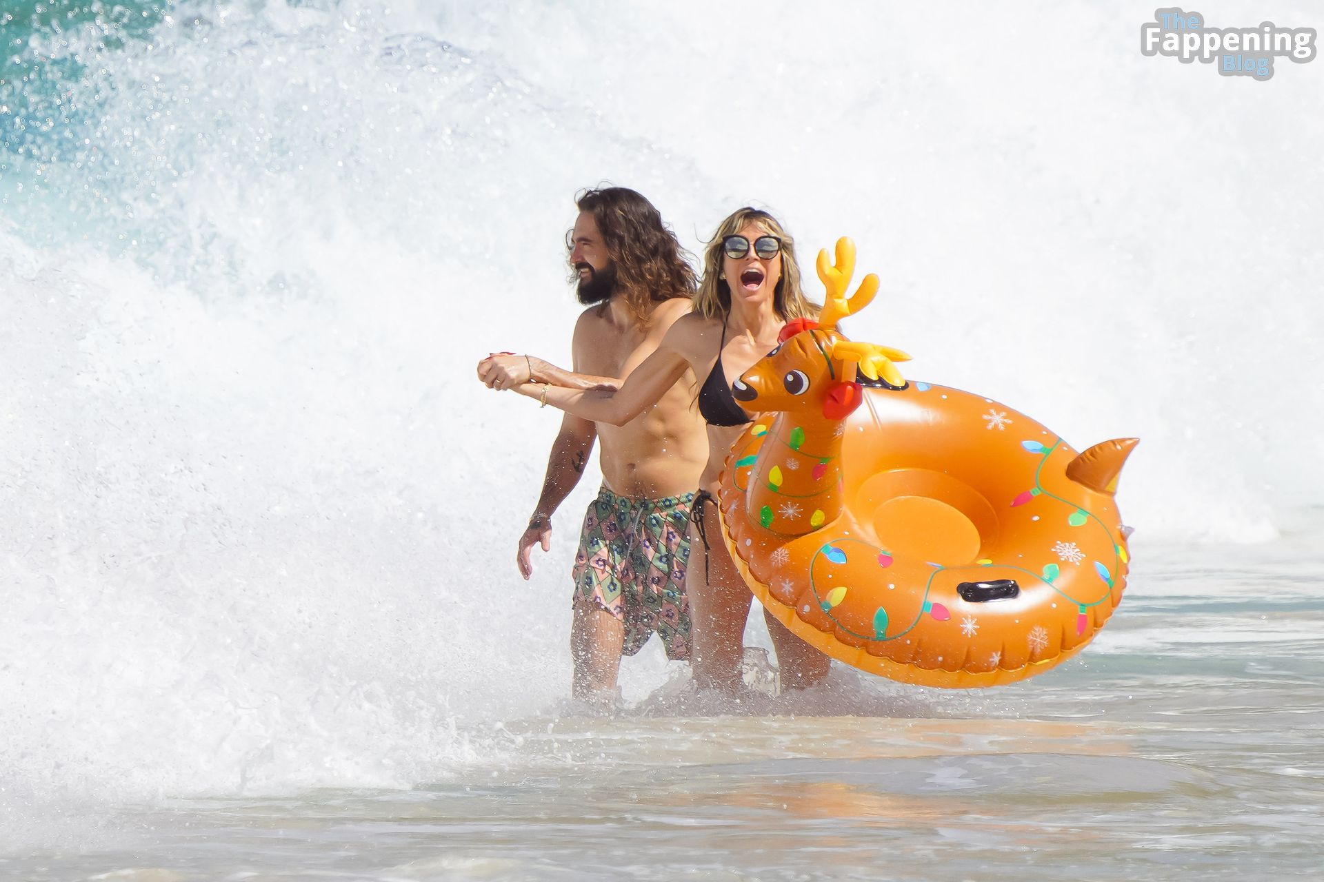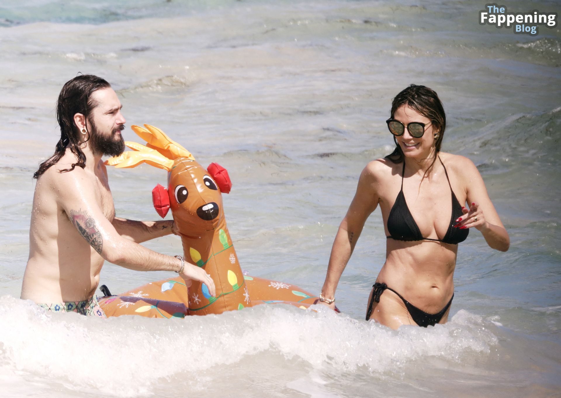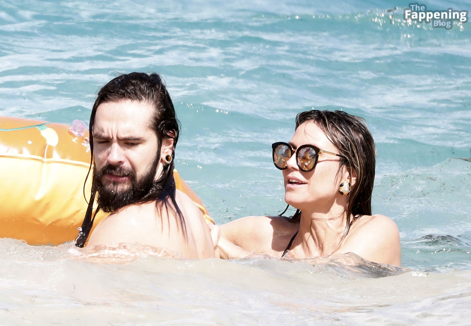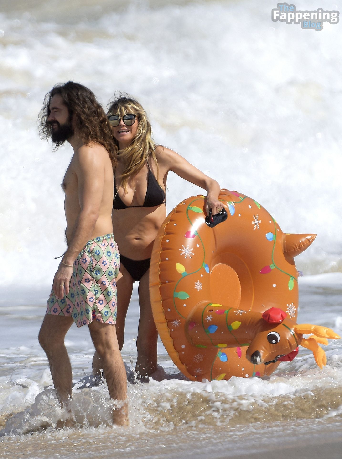La conduttrice di America’s Got Talent ha fatto sognare con un minuscolo bikini nero mentre lei e il rocker dei Tokio Hotel si scambiavano effusioni, baciandosi e tenendosi per mano, durante la loro pausa invernale a St Bart’s. Madre di quattro figli, Heidi si è divertita a spruzzare acqua sulle onde su una renna gonfiabile mentre l’attento Tom la guardava.