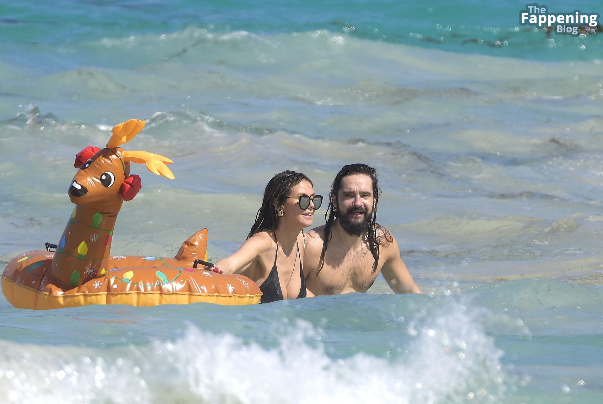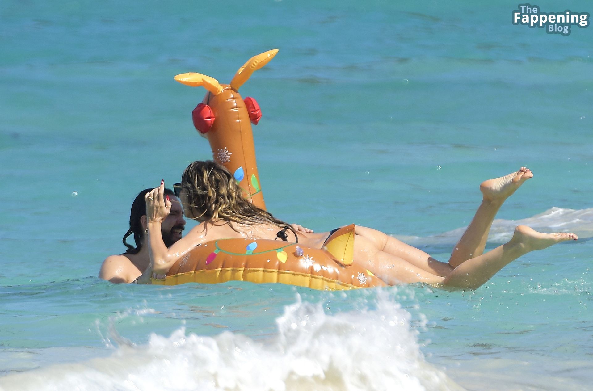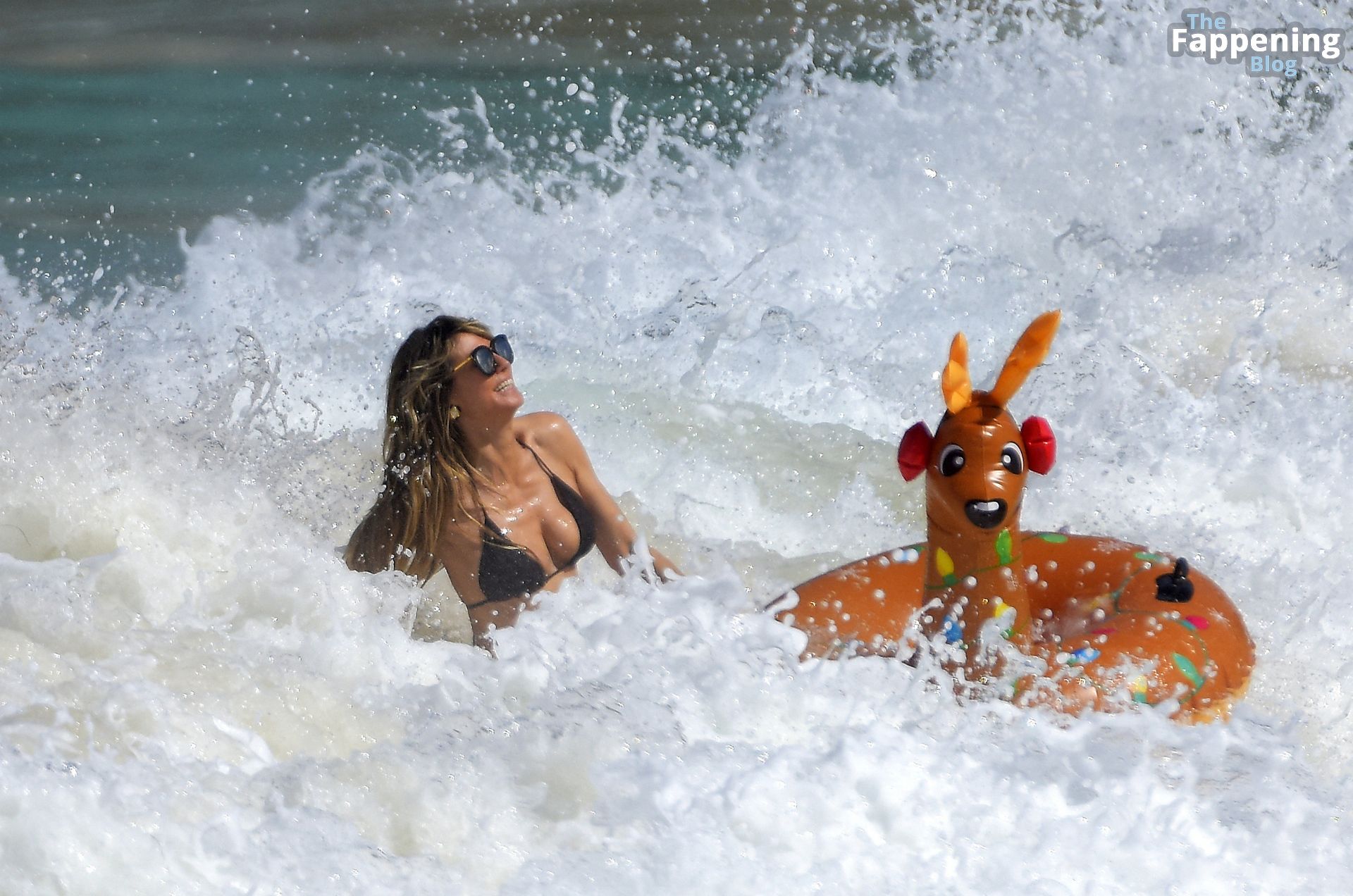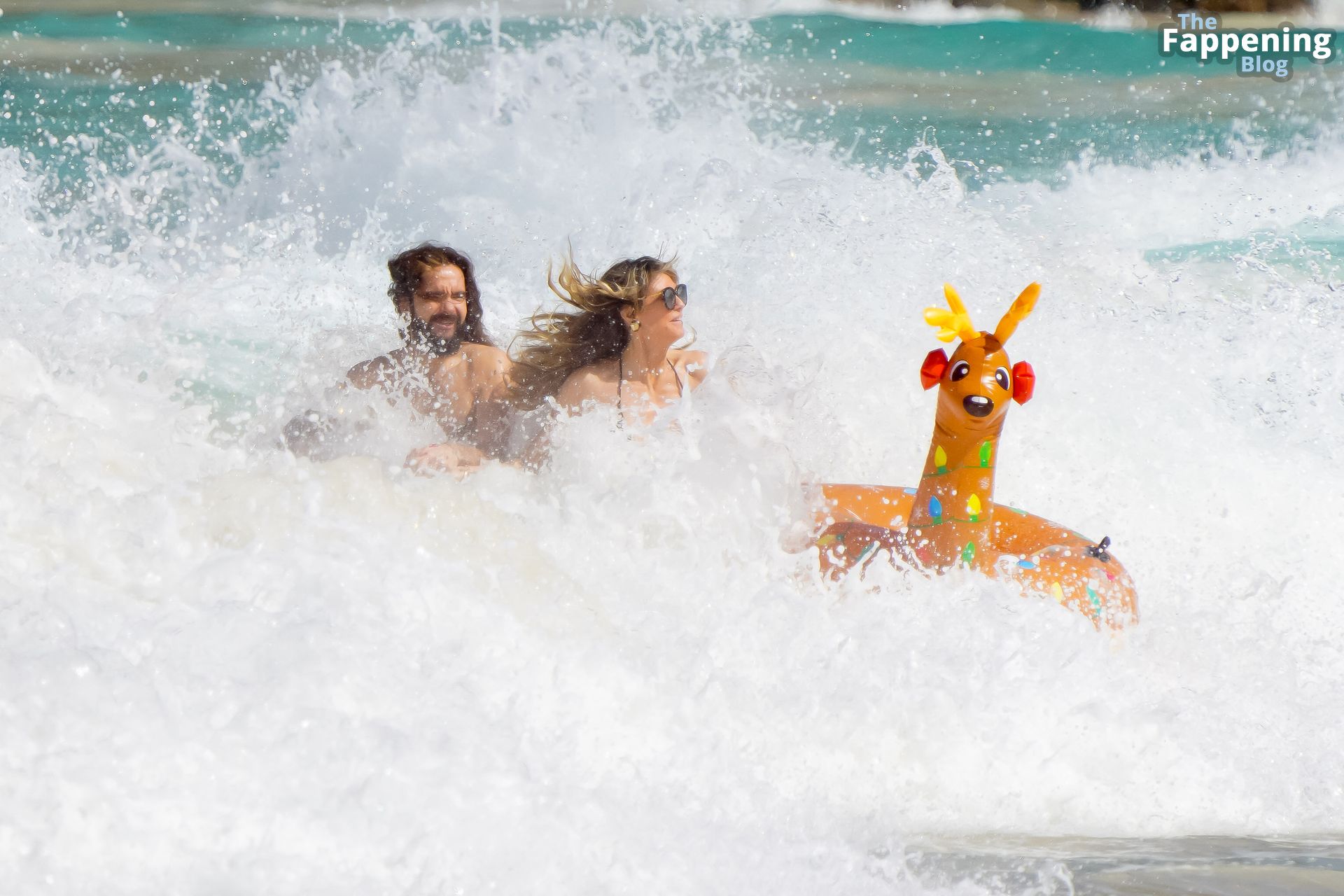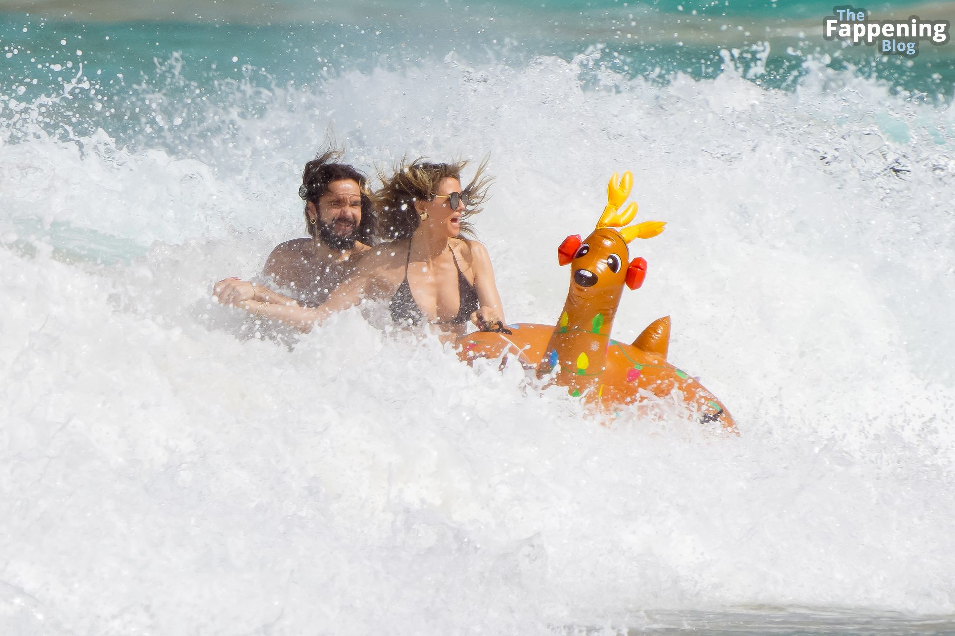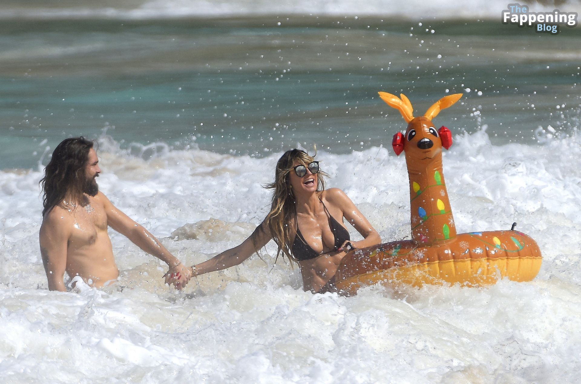 La conduttrice di America’s Got Talent ha fatto sognare con un minuscolo bikini nero mentre lei e il rocker dei Tokio Hotel si scambiavano effusioni, baciandosi e tenendosi per mano, durante la loro pausa invernale a St Bart’s. Madre di quattro figli, Heidi si è divertita a spruzzare acqua sulle onde su una renna gonfiabile mentre l’attento Tom la guardava.