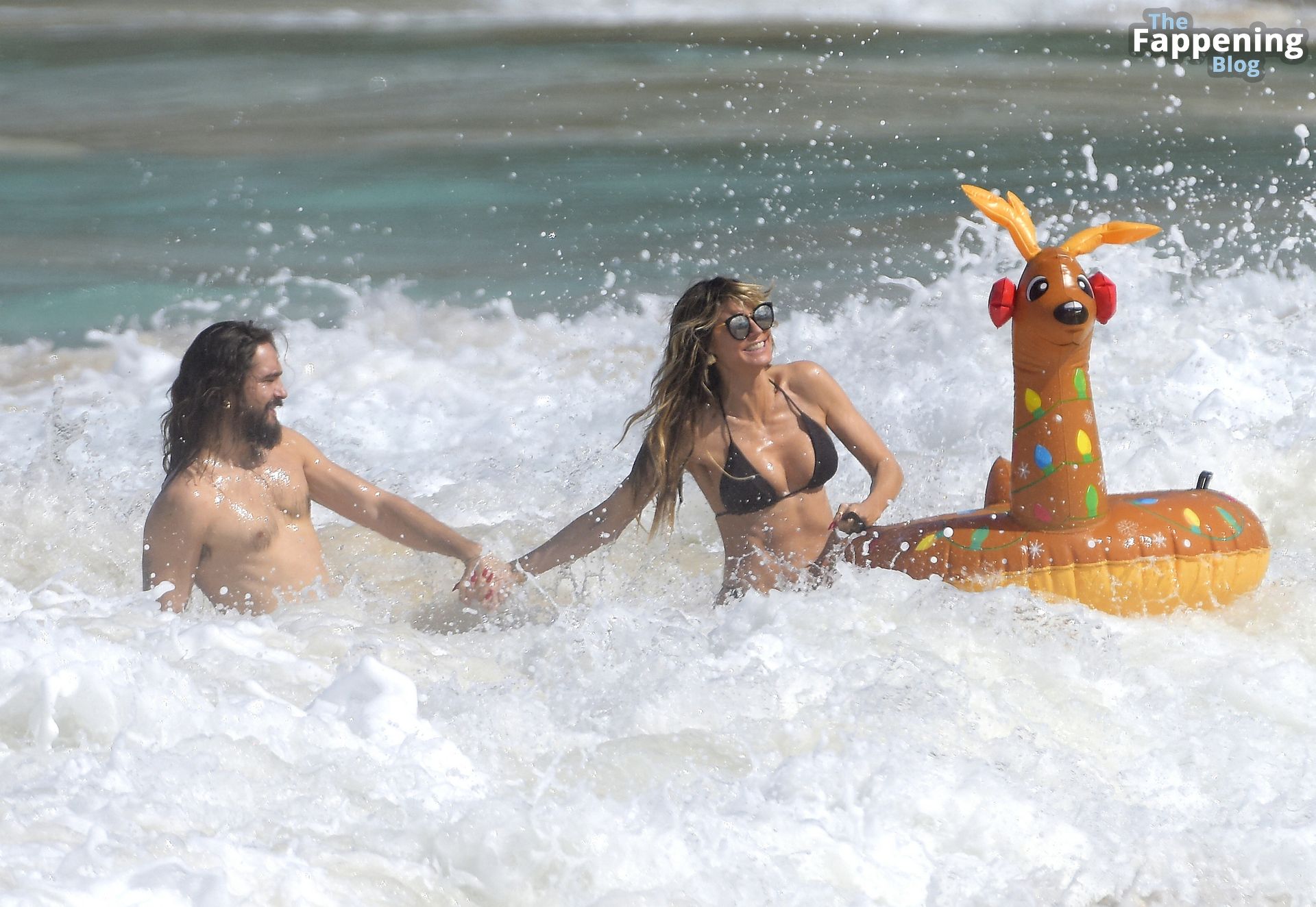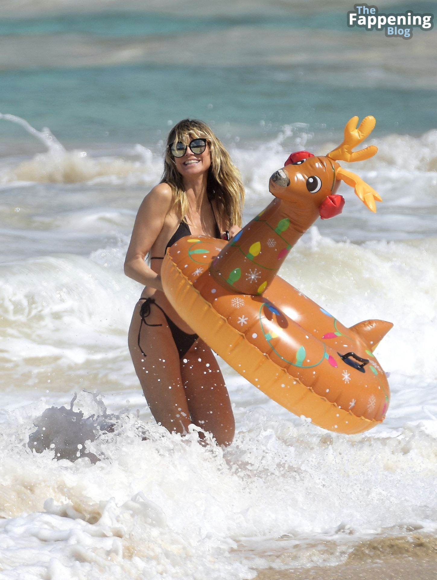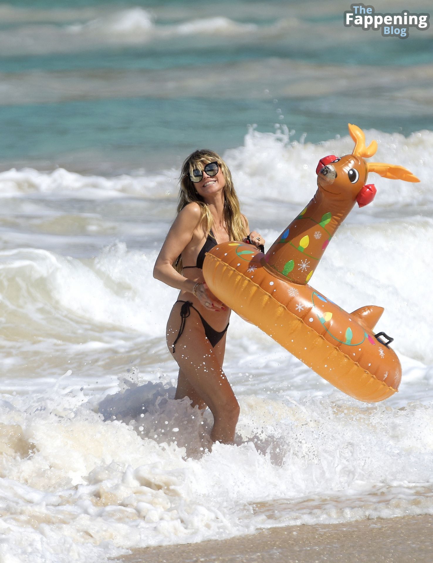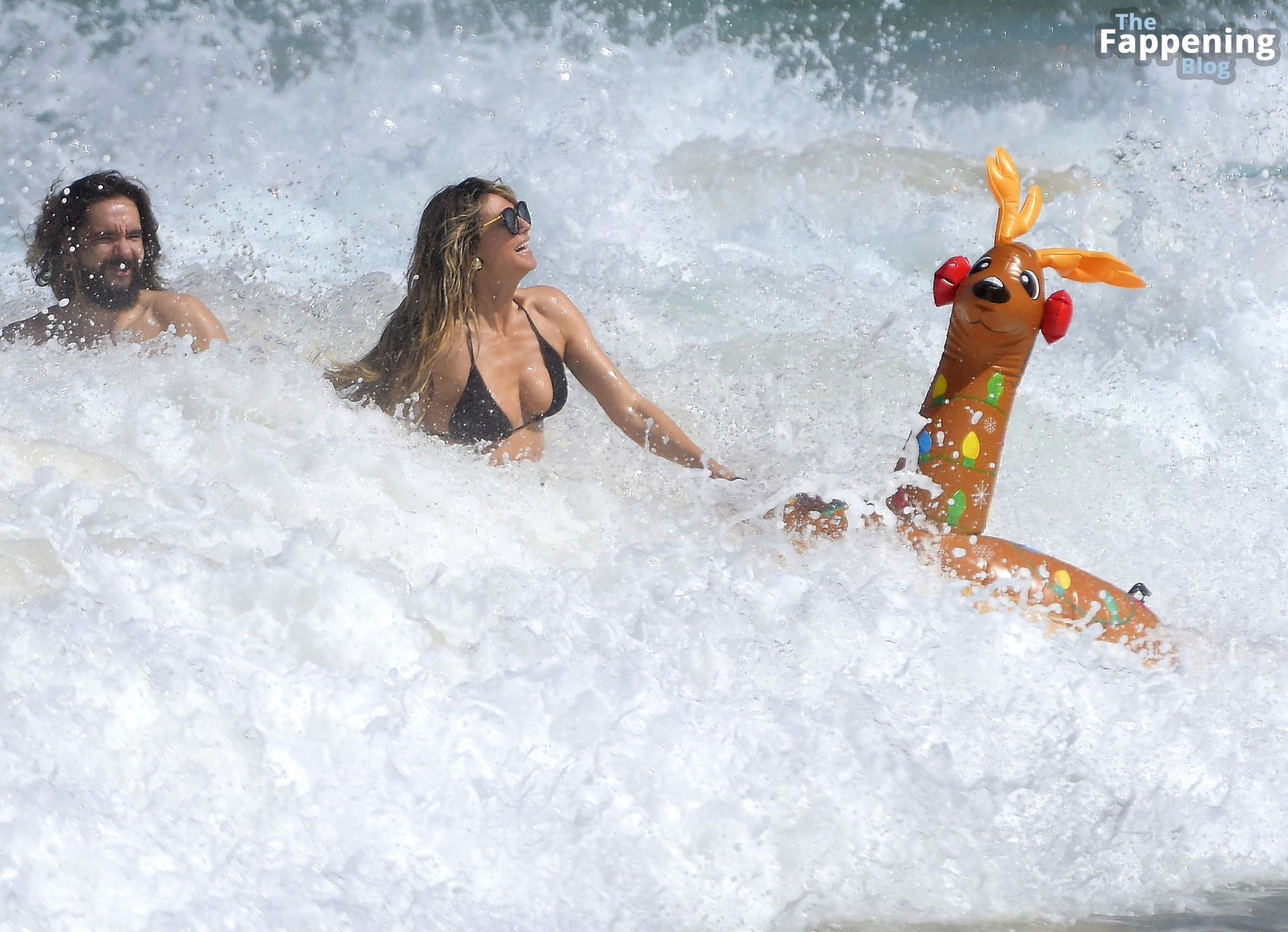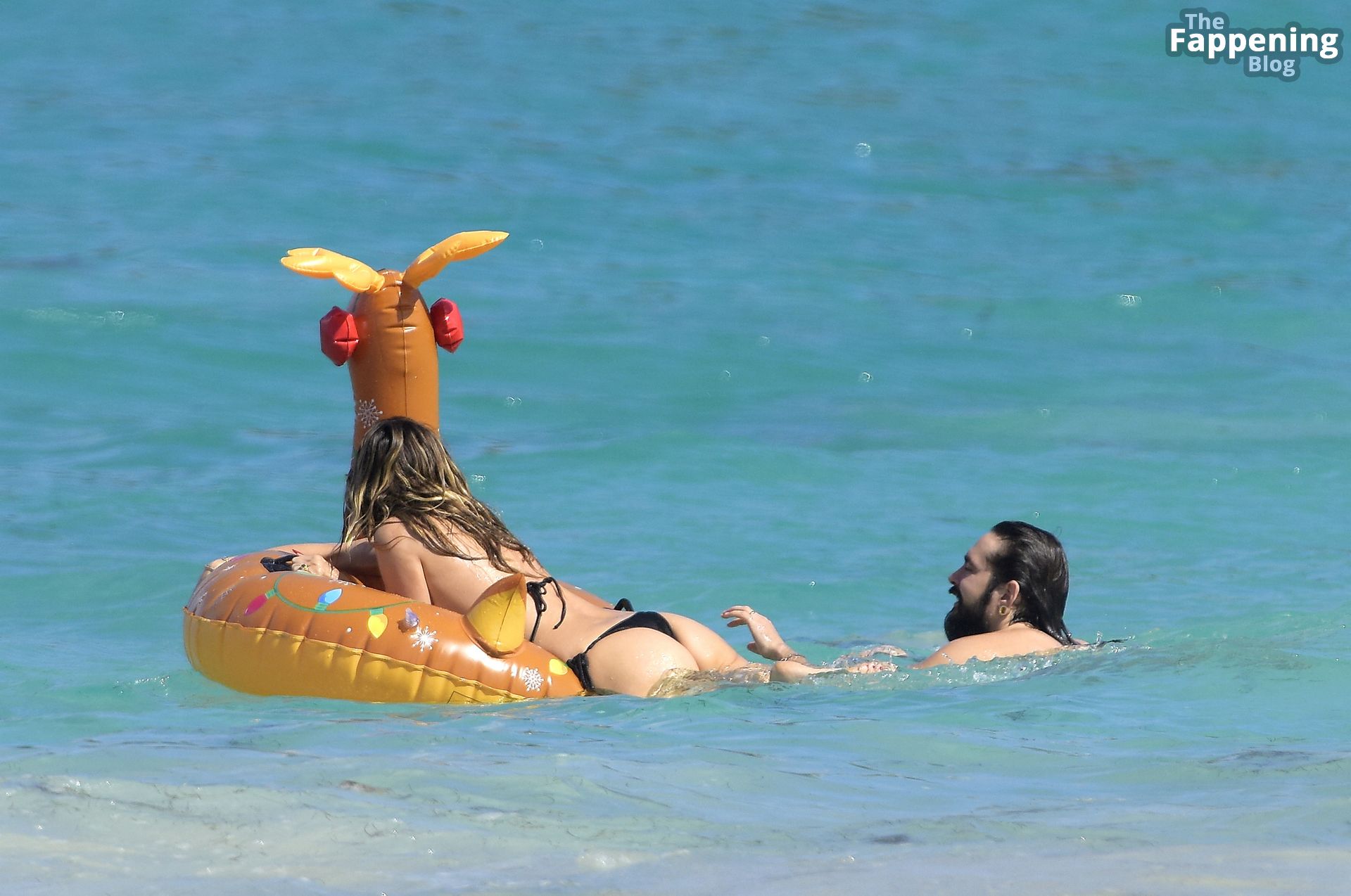 La conduttrice di America’s Got Talent ha fatto sognare con un minuscolo bikini nero mentre lei e il rocker dei Tokio Hotel si scambiavano effusioni, baciandosi e tenendosi per mano, durante la loro pausa invernale a St Bart’s. Madre di quattro figli, Heidi si è divertita a spruzzare acqua sulle onde su una renna gonfiabile mentre l’attento Tom la guardava.