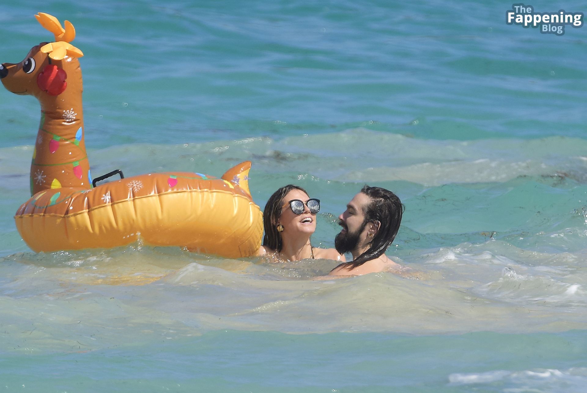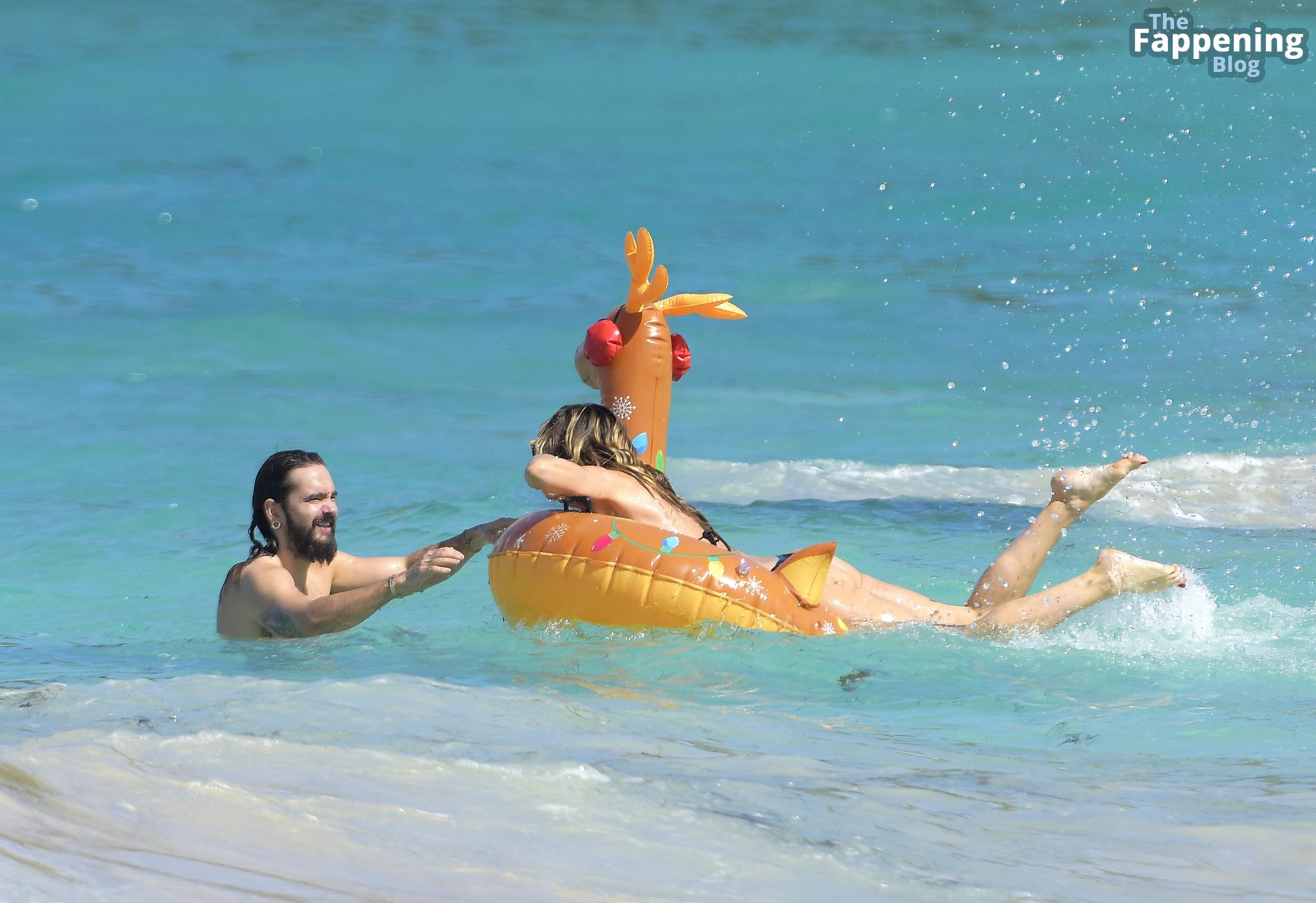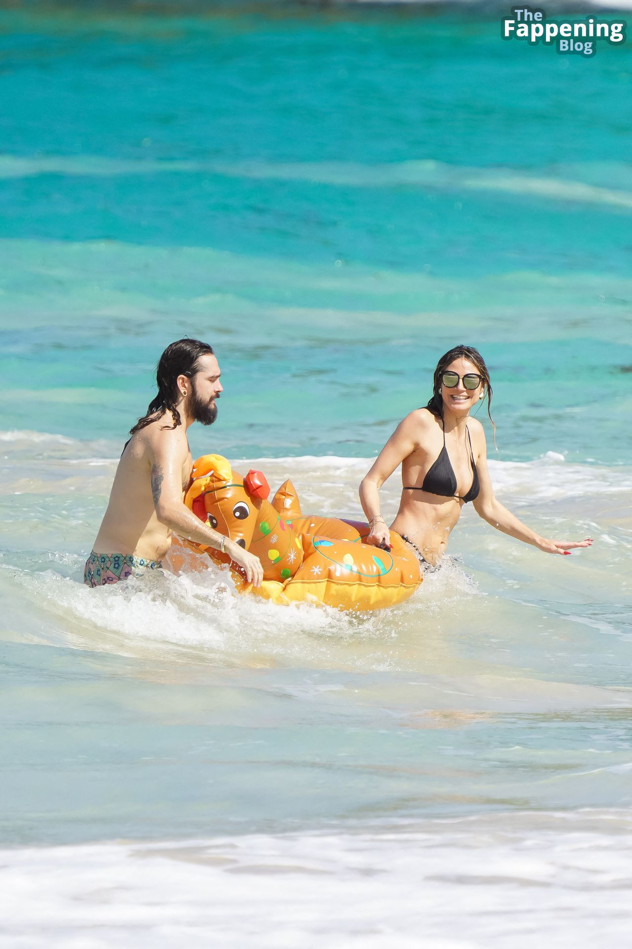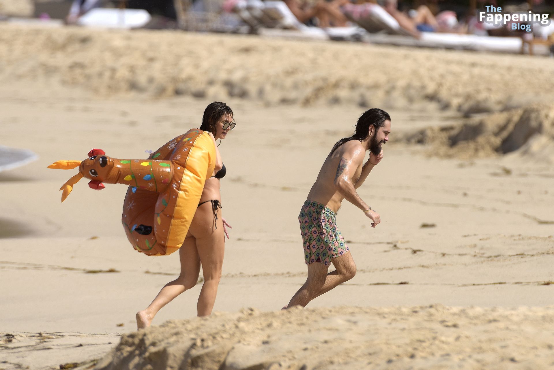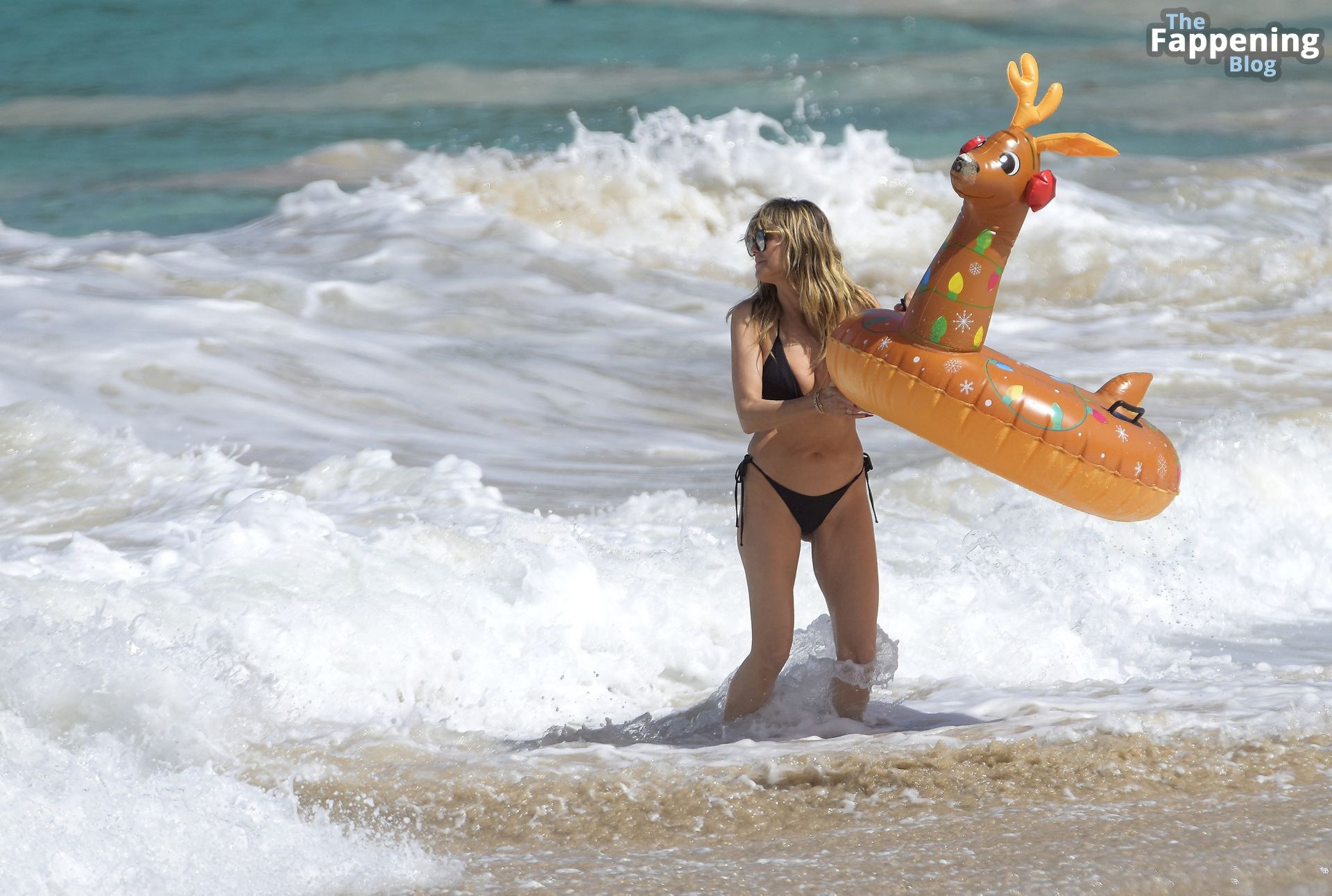 La conduttrice di America’s Got Talent ha fatto sognare con un minuscolo bikini nero mentre lei e il rocker dei Tokio Hotel si scambiavano effusioni, baciandosi e tenendosi per mano, durante la loro pausa invernale a St Bart’s. Madre di quattro figli, Heidi si è divertita a spruzzare acqua sulle onde su una renna gonfiabile mentre l’attento Tom la guardava.