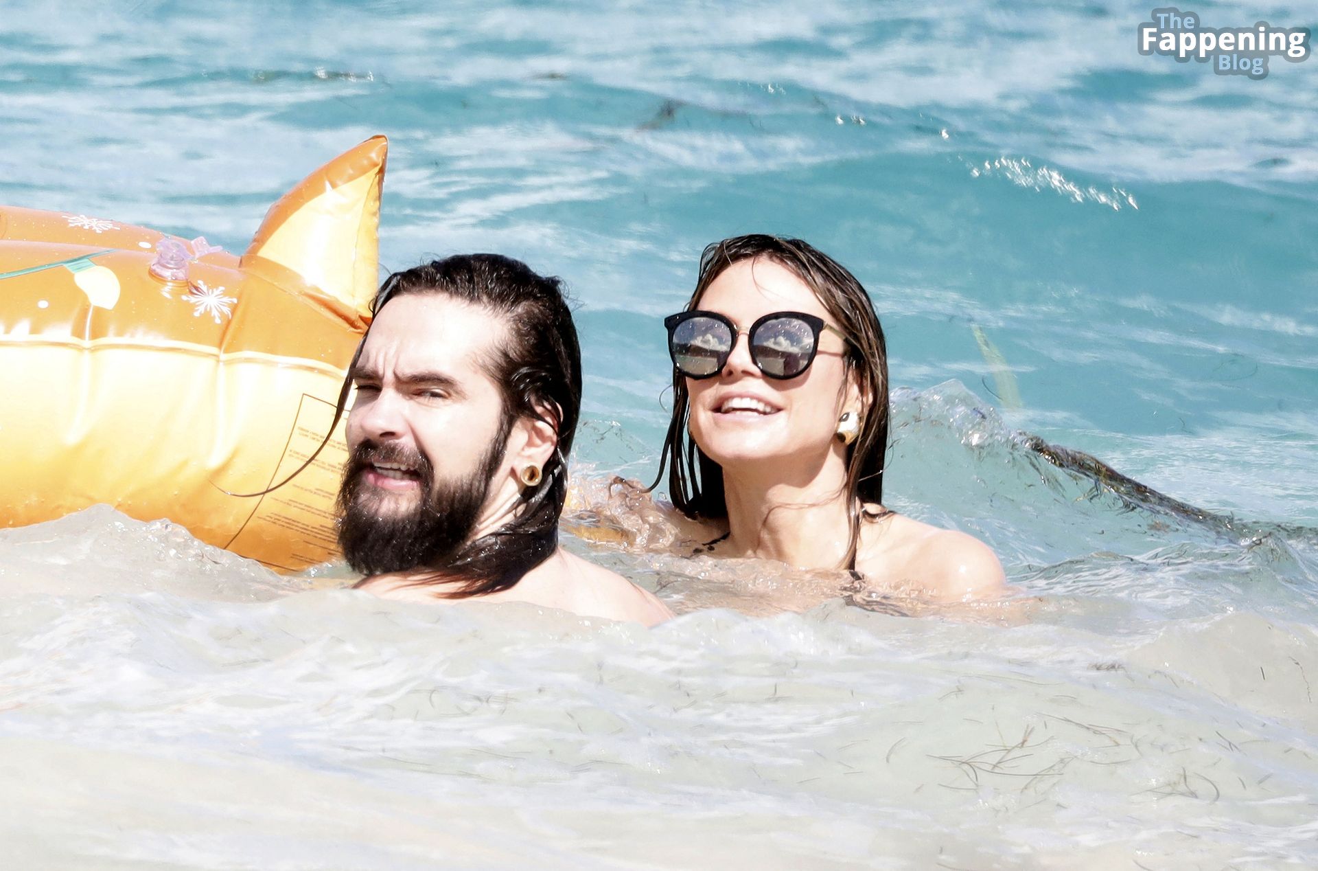 Heidi Klum mostra il suo incredibile corpo in bikini mentre la supermodella 50enne si diverte tra le onde caraibiche con il marito Tom Kaulitz, 34 anni.
