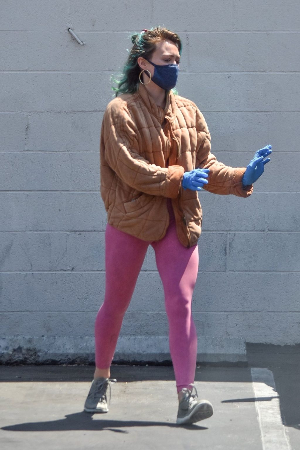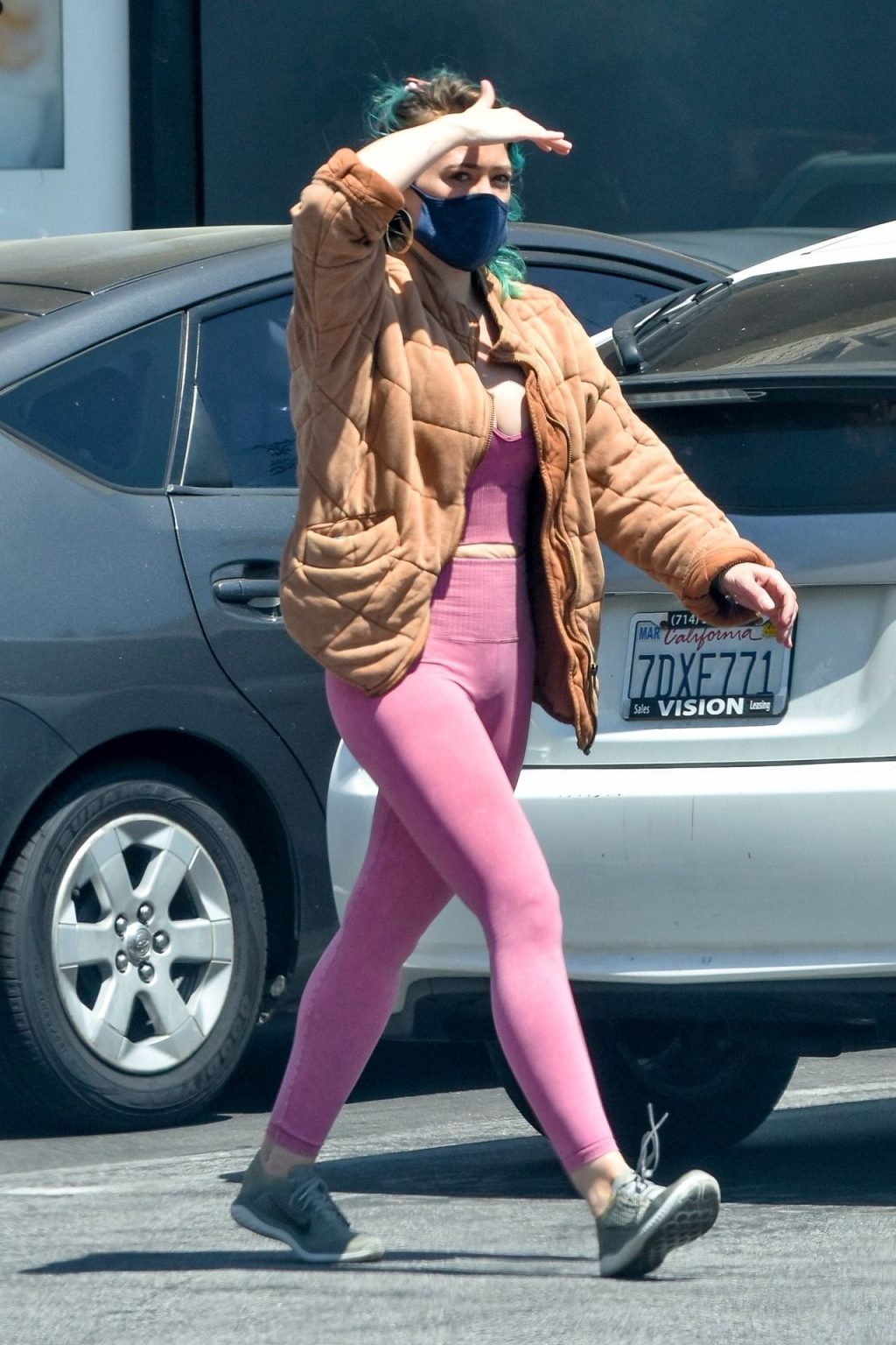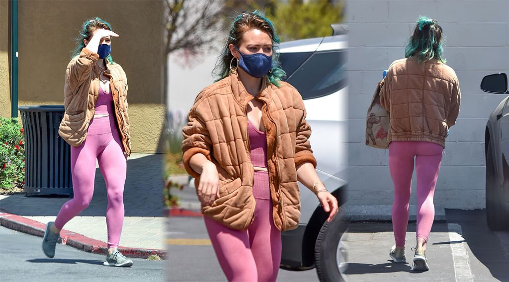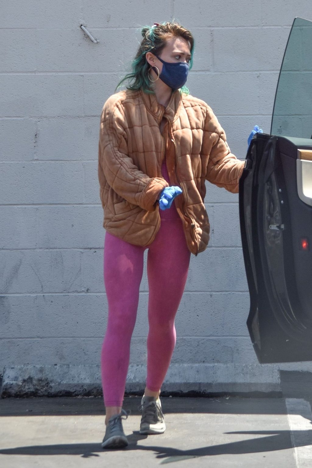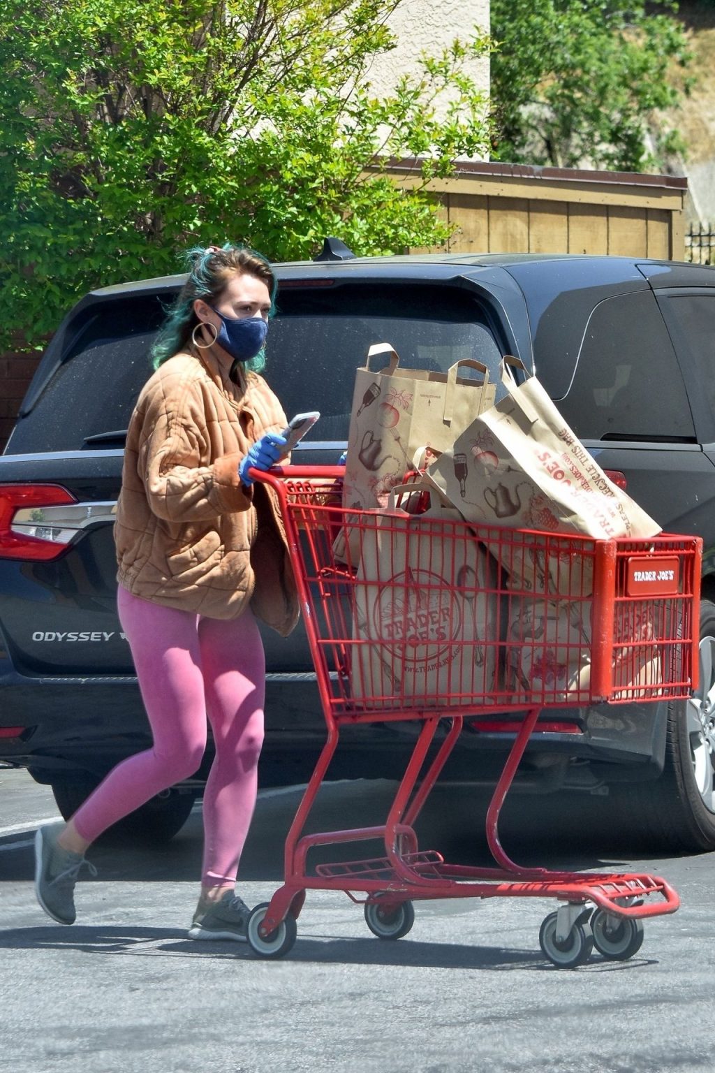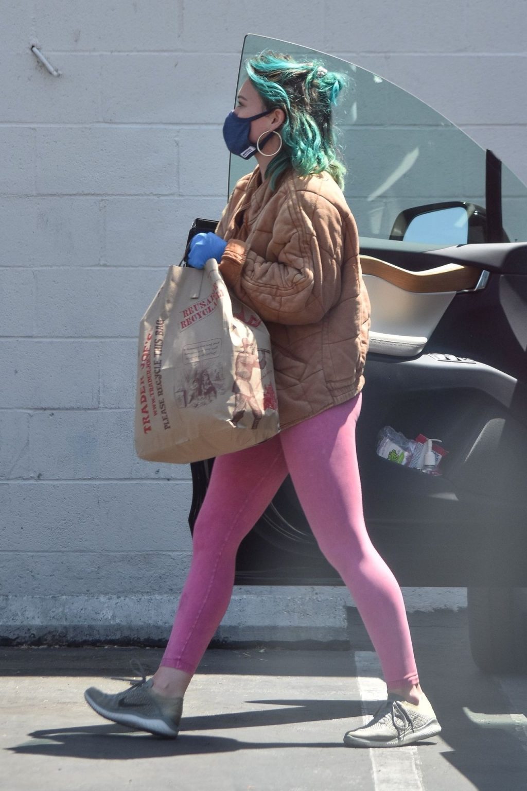 ‘Lizzie McGuire’ alumna Hilary Duff sfoggiava un’acconciatura blu e verde mentre faceva la spesa da Trader Joe’s a Studio City, 30/04/2020.