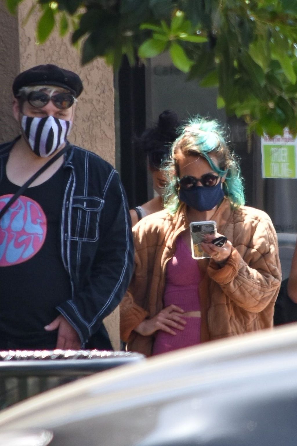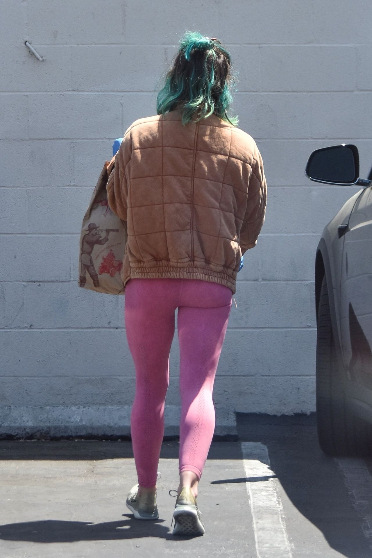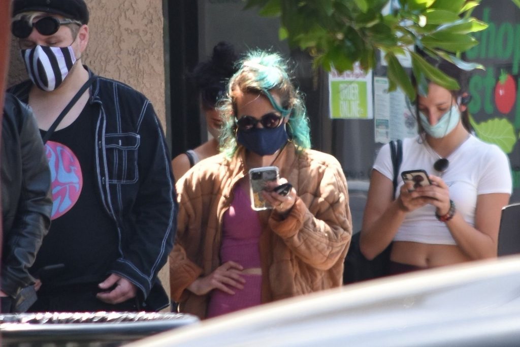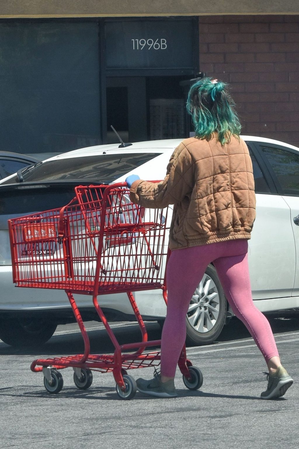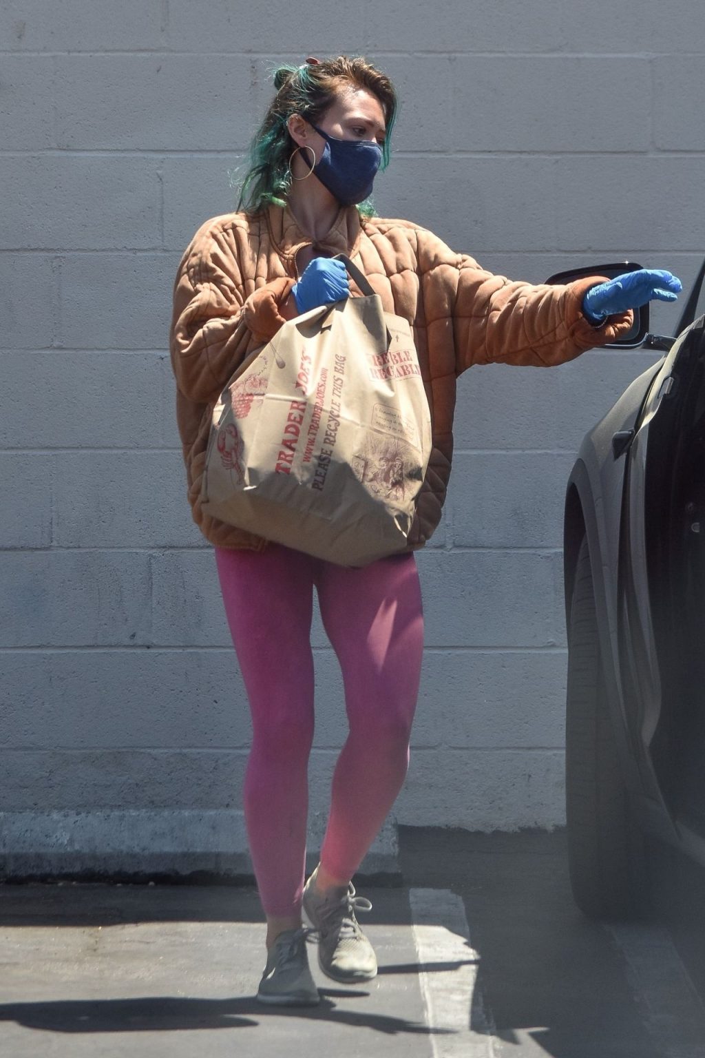 ‘Lizzie McGuire’ alumna Hilary Duff sfoggiava un’acconciatura blu e verde mentre faceva la spesa da Trader Joe’s a Studio City, 30/04/2020.