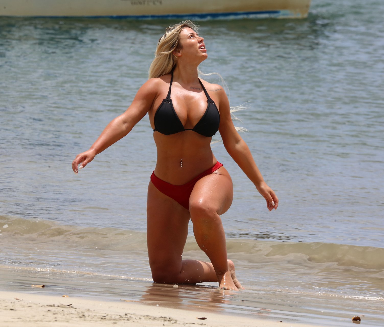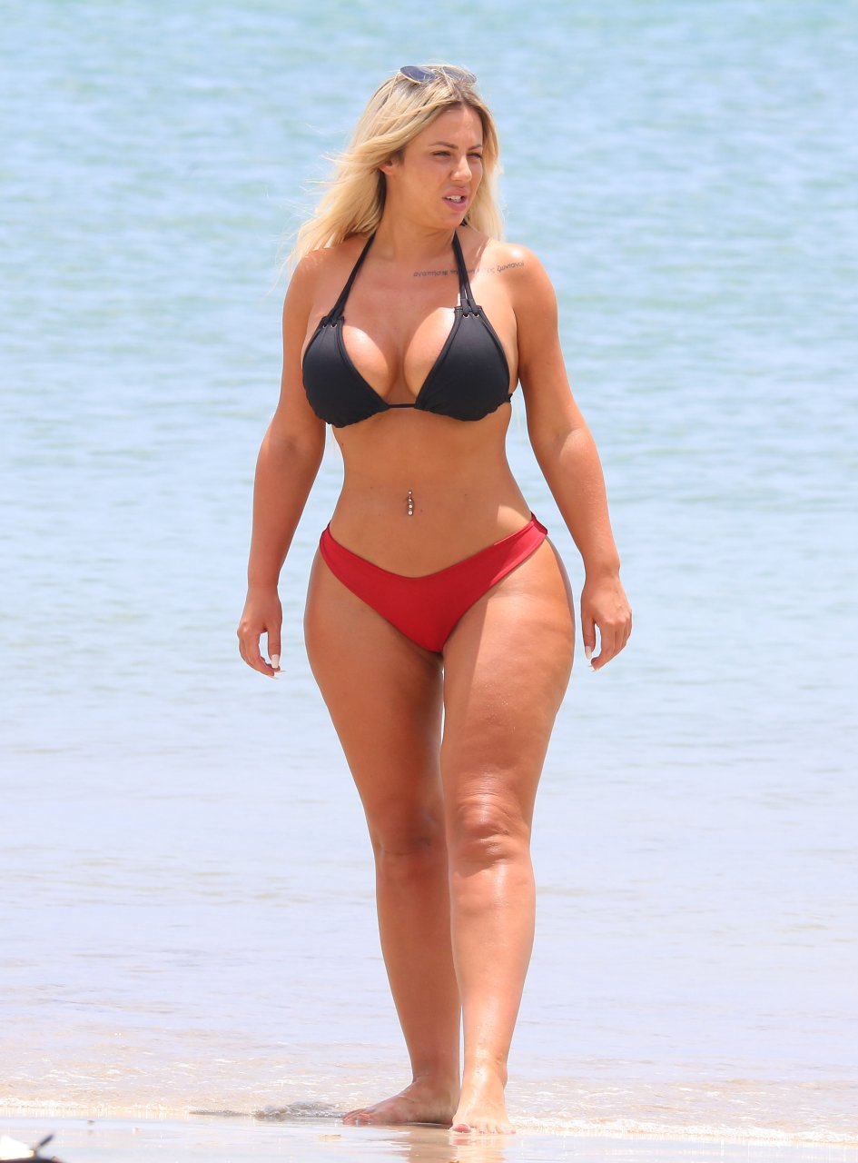 La star di MTV Geordie Shore Holly Hagan è stata vista in spiaggia durante una vacanza a St Lucia. La bionda formosa ha mostrato i suoi grandi seni e il sedere con cellulite ai paparazzi. Holly Hagan è una star della TV reality e modella inglese di 25 anni.