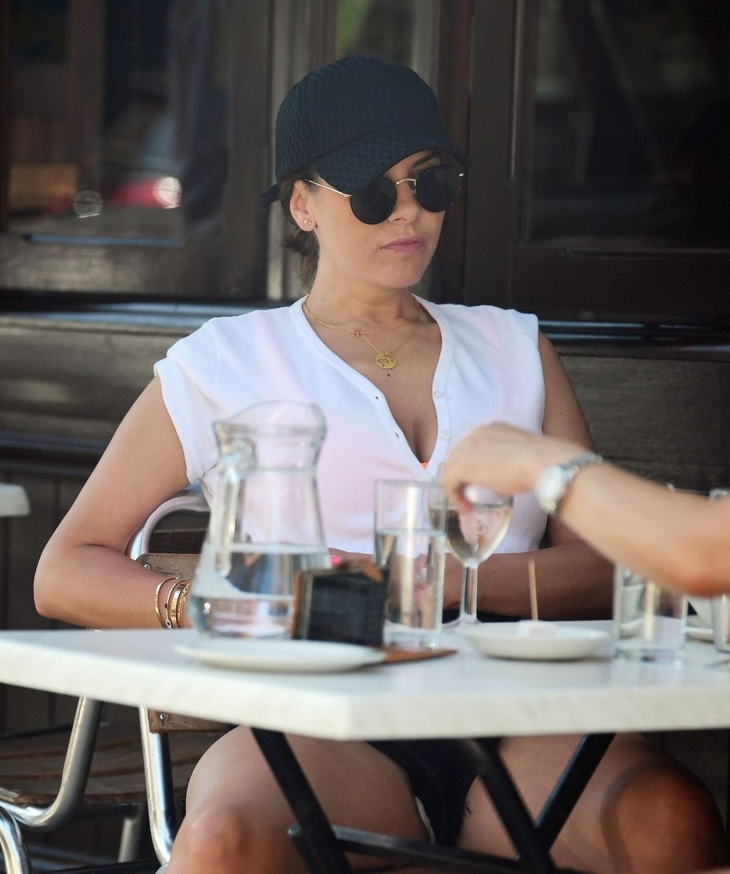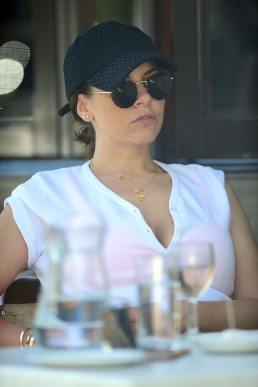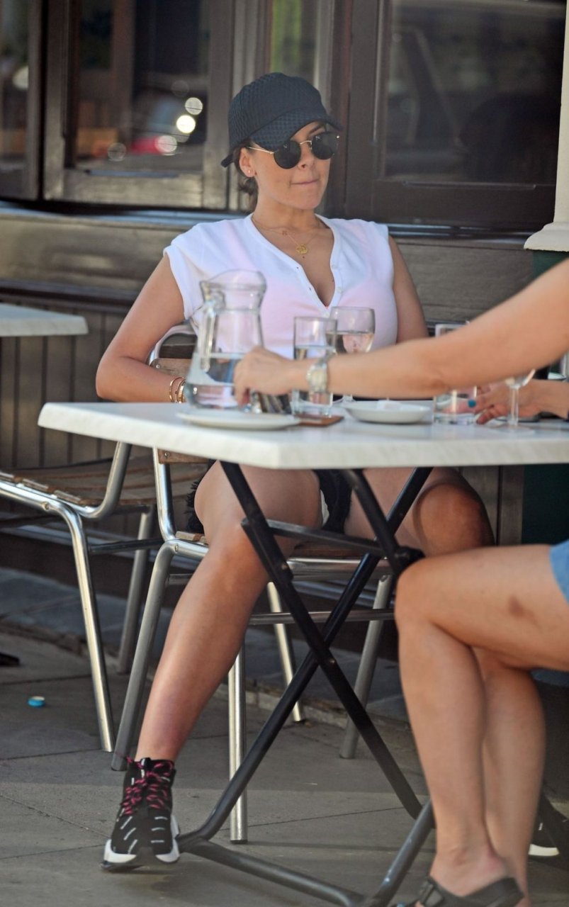 Ex star di “Big Brother”, la sexy e affascinante Imogen Thomas che mostra pose sexy e seducenti e stuzzica con un po’ di scollatura a Primrose Hill mentre mangia un gelato e beve vino, 07/04/2019.