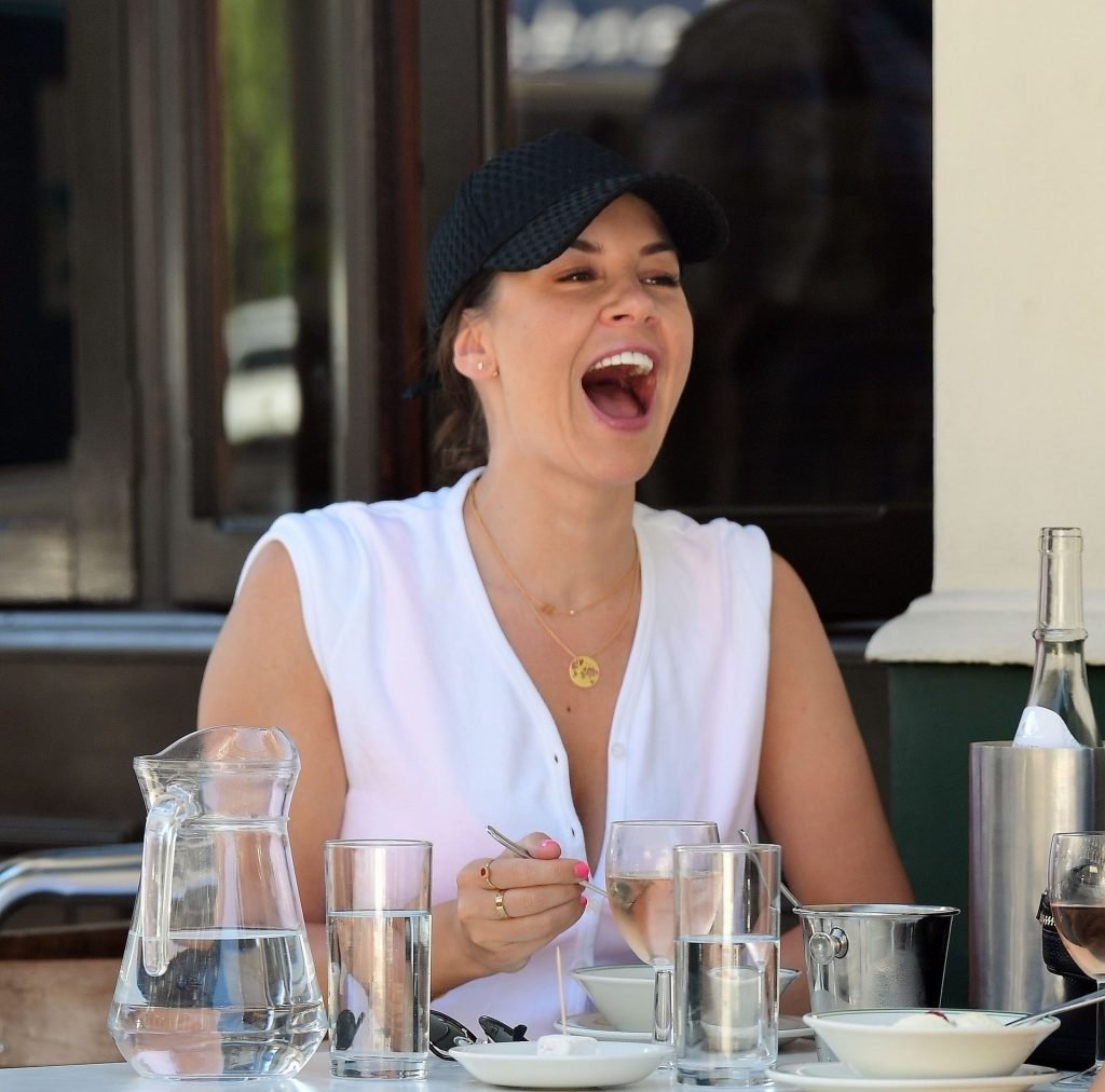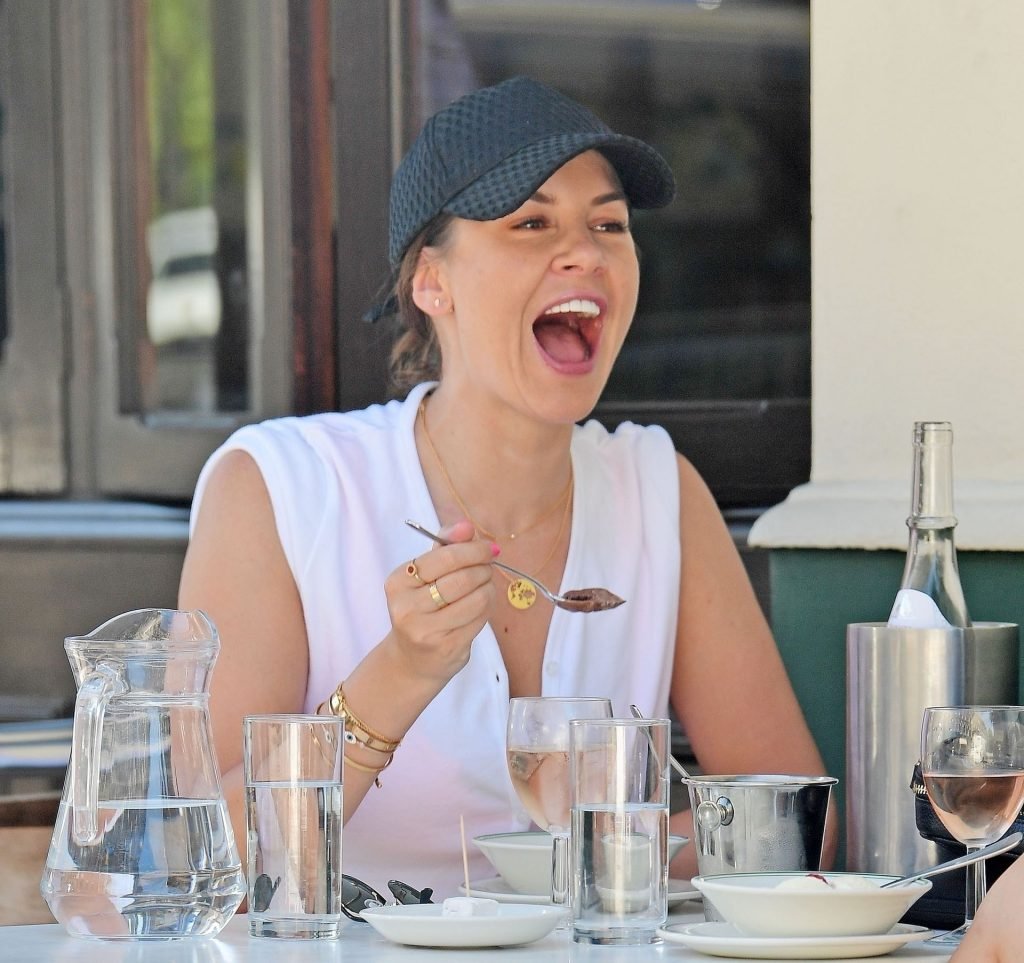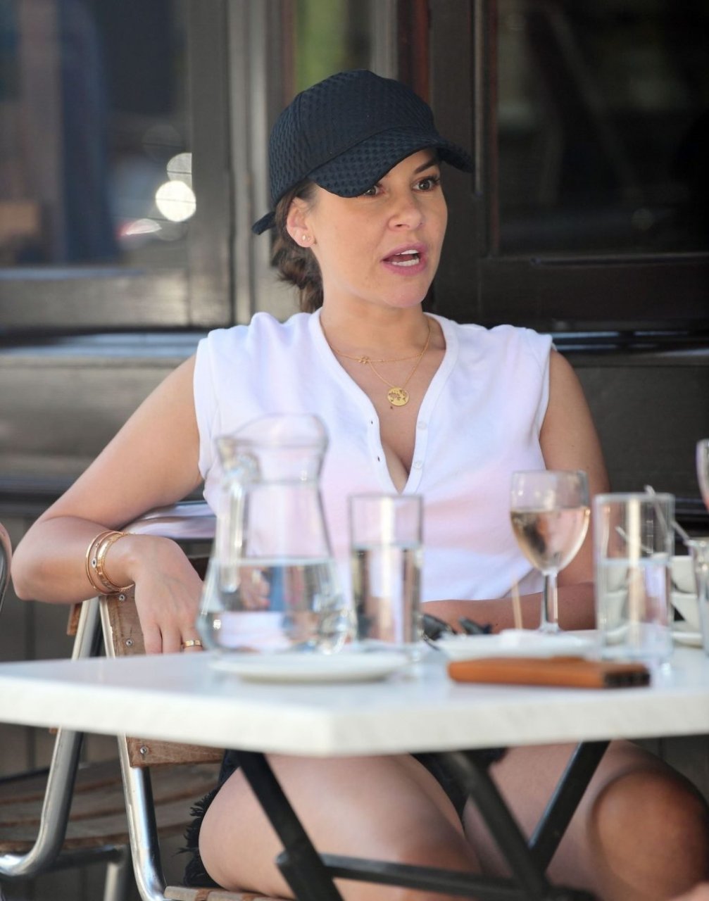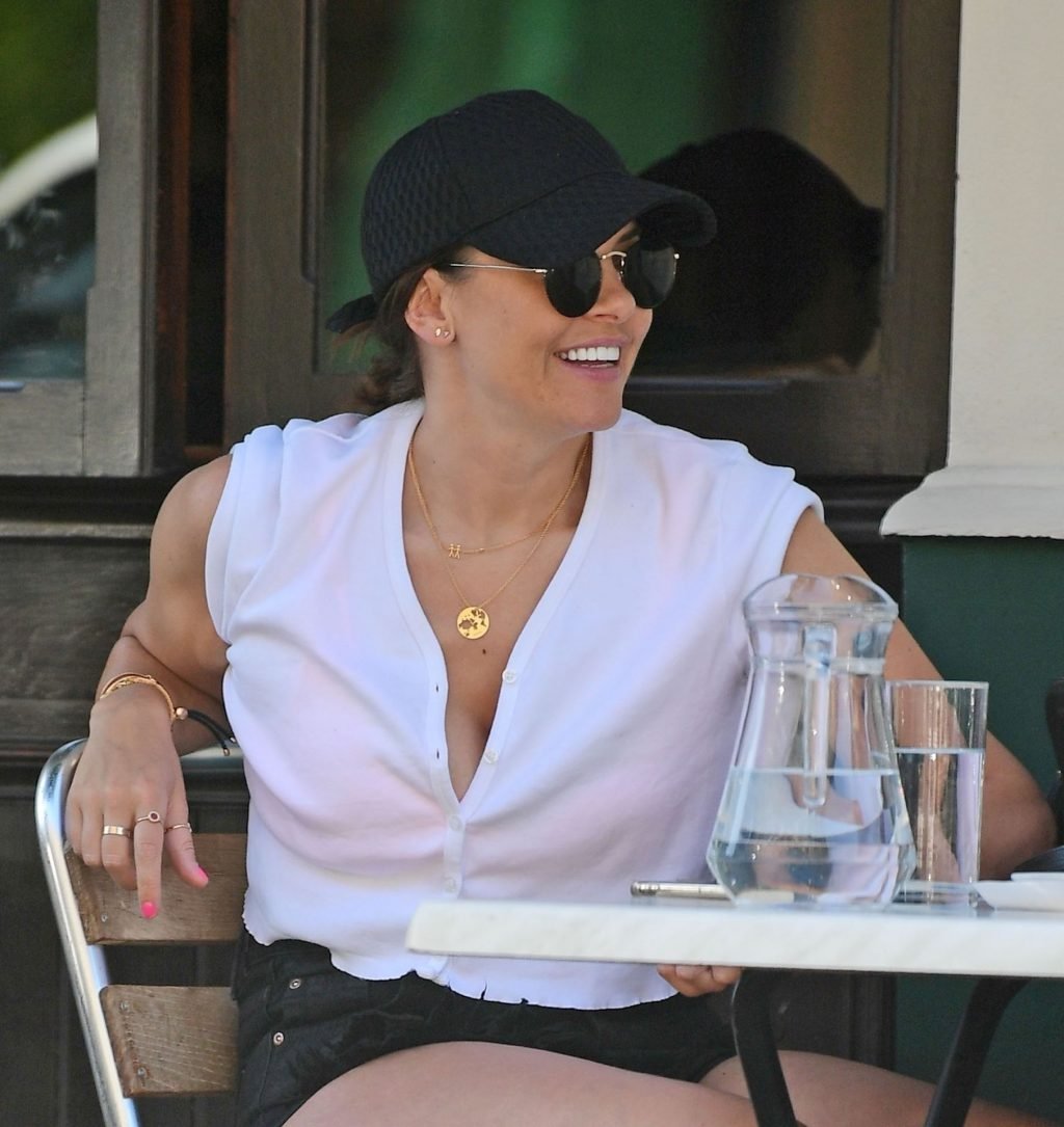 Ex star di “Big Brother”, la sexy e affascinante Imogen Thomas che mostra pose sexy e seducenti e stuzzica con un po’ di scollatura a Primrose Hill mentre mangia un gelato e beve vino, 07/04/2019.
