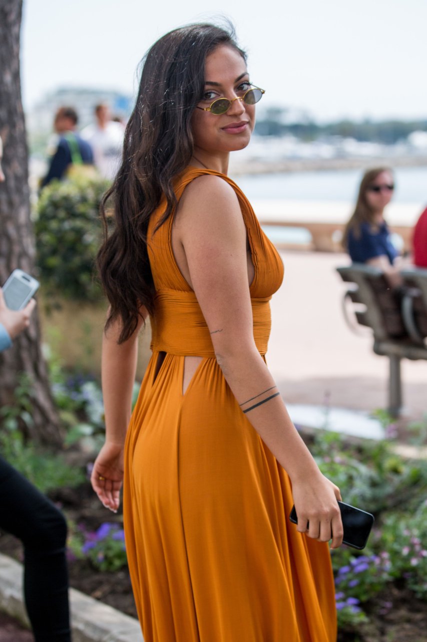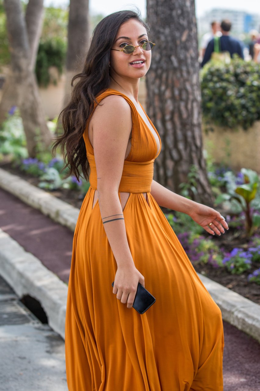 Inanna Sarkis è vista con un vestito arancione alla Croisette a Cannes, Francia, 10/05/2018. L’attrice prosperosa, blogger e star dei social media ha mostrato il suo profondo décolleté e ha mandato un bacio ai paparazzi.