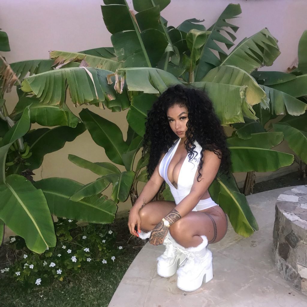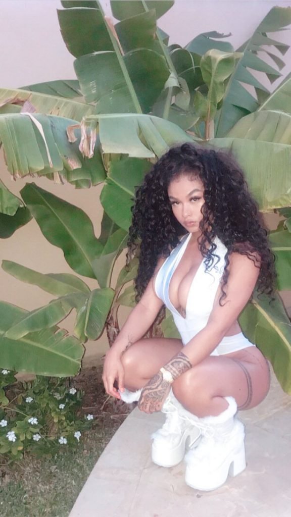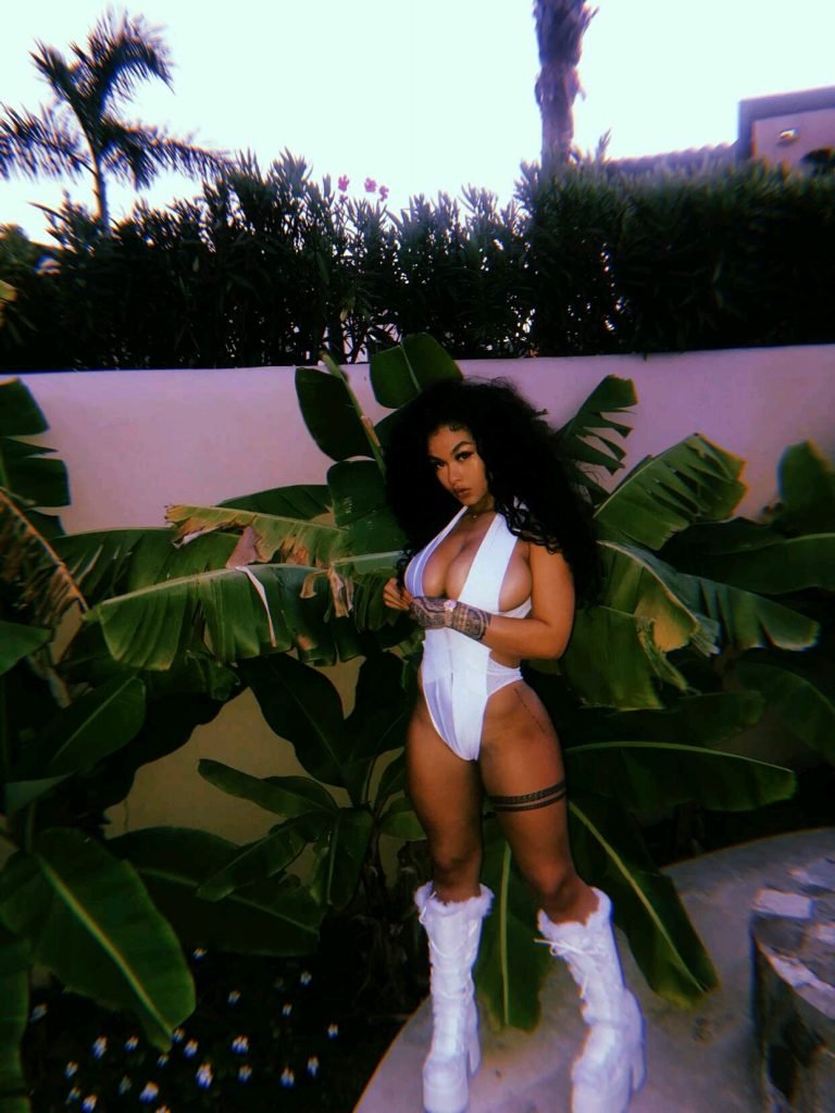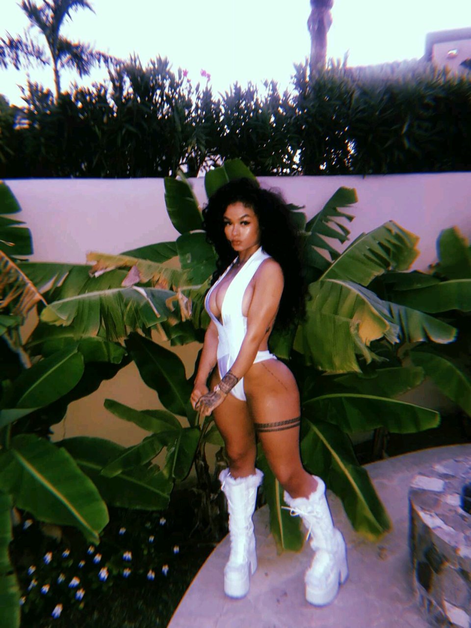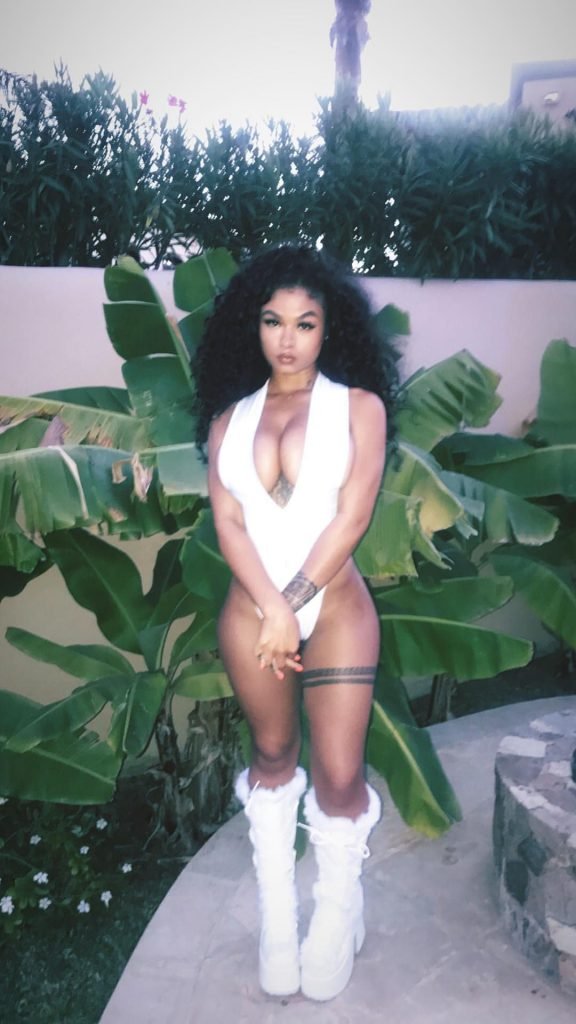 India Westbrooks posa con un costume da bagno bianco spontaneo a Los Cabos, Mèxico – Instagram, Snapchat, 14/04/2018. India Love Westbrooks è una modella americana, star della televisione reality (The Westbrooks), personalità dei social media (3,5 milioni di follower) e blogger. Età – 22.