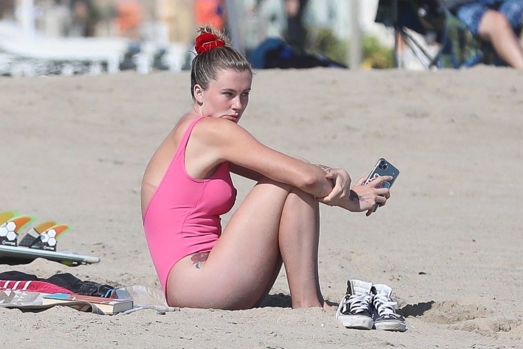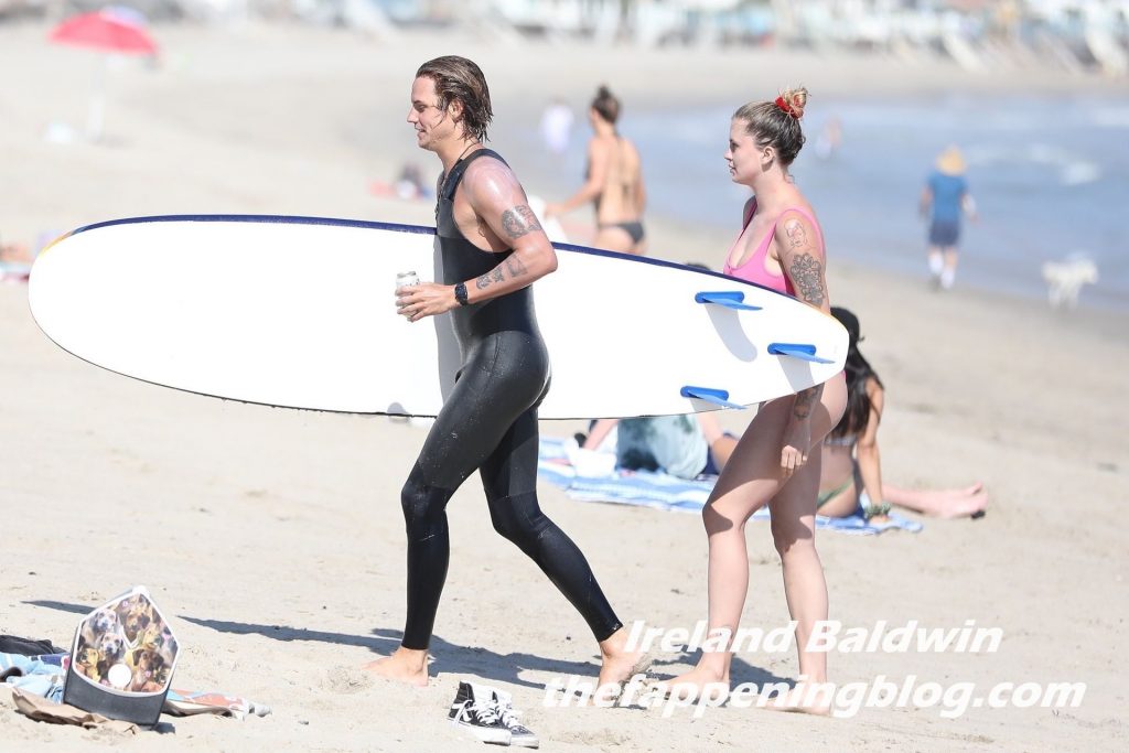 Socialite, modella e figlia di Alec Baldwin, Ireland Baldwin è stata vista mentre guardava il suo fidanzato Corey Harper fare surf a Malibu, 30/08/2020.