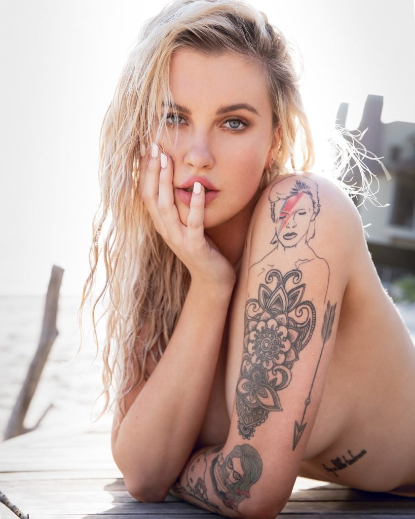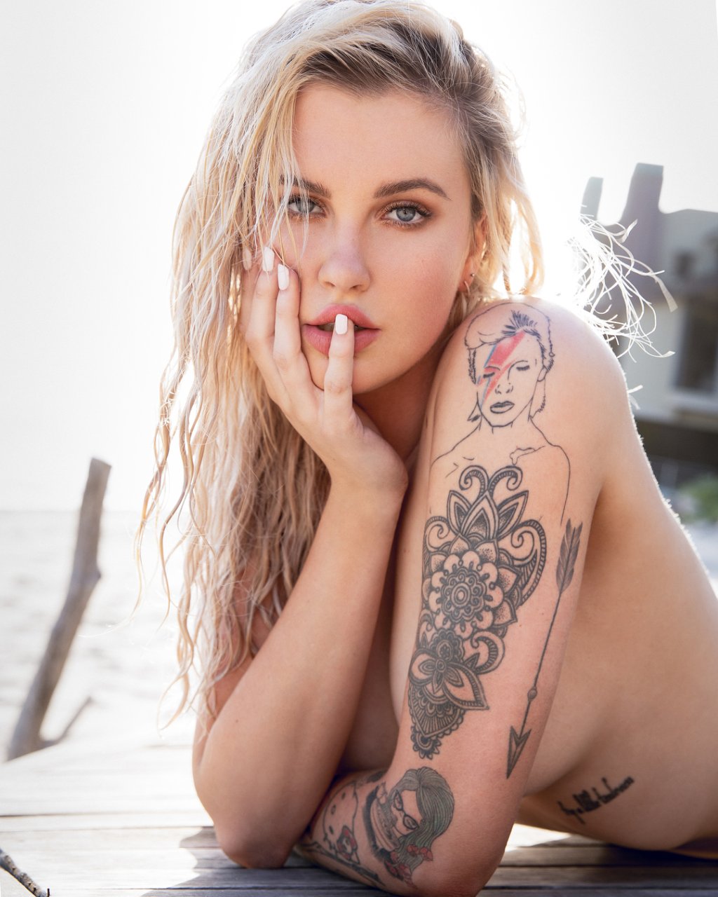 La modella di 22 anni ha posato con una maglietta bagnata sulla spiaggia, e si è completamente spogliata, coprendo il petto solo con pochi tratti per la censura.