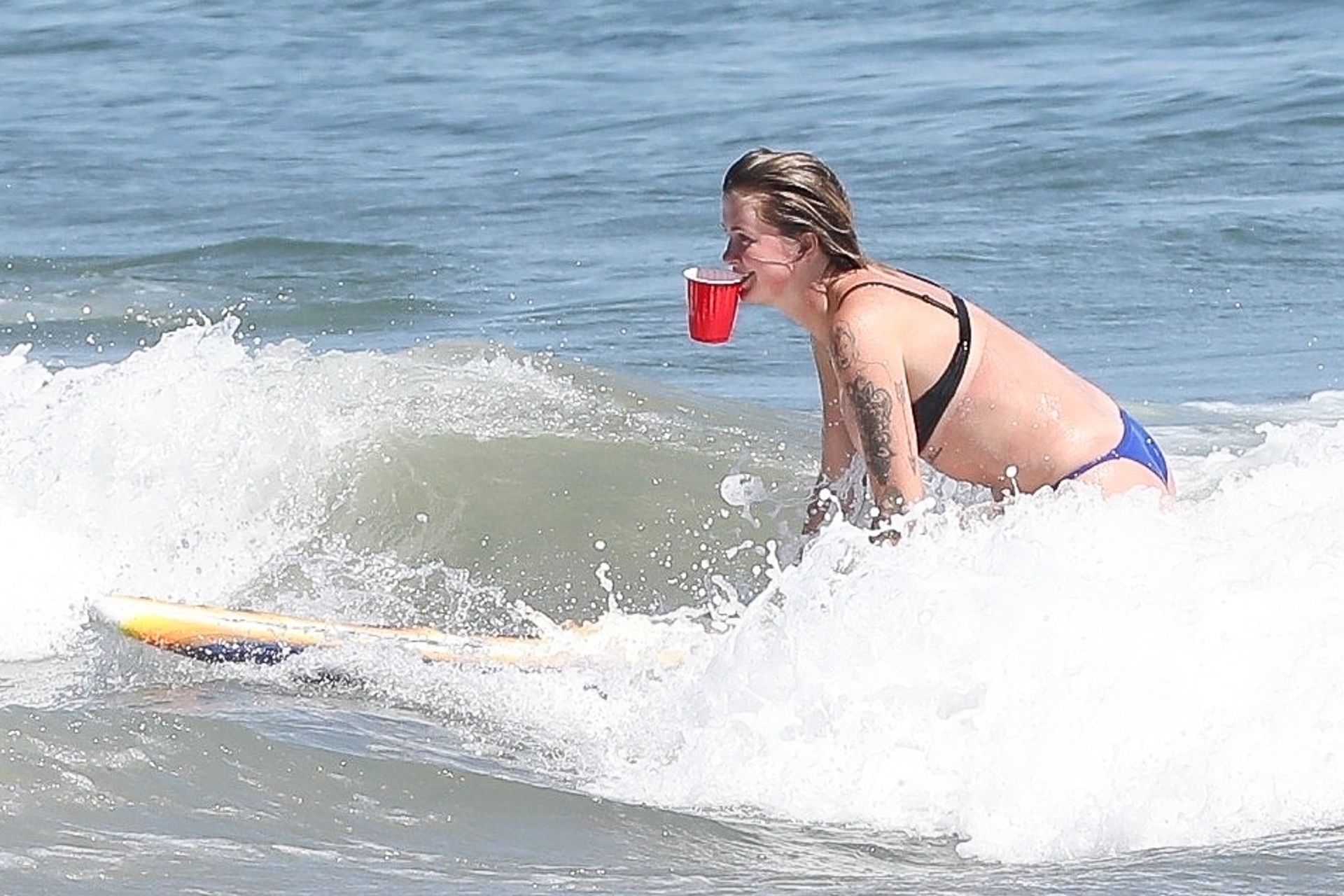Ireland Baldwin mostra le sue curve mentre si diverte in spiaggia con i suoi amici bevendo, giocando a pallavolo e facendo surf – Malibu, 19/07/2020. La modella non ha preso rischi mentre spruzzava con cura la crema solare sul seno prima di andare a divertirsi.
